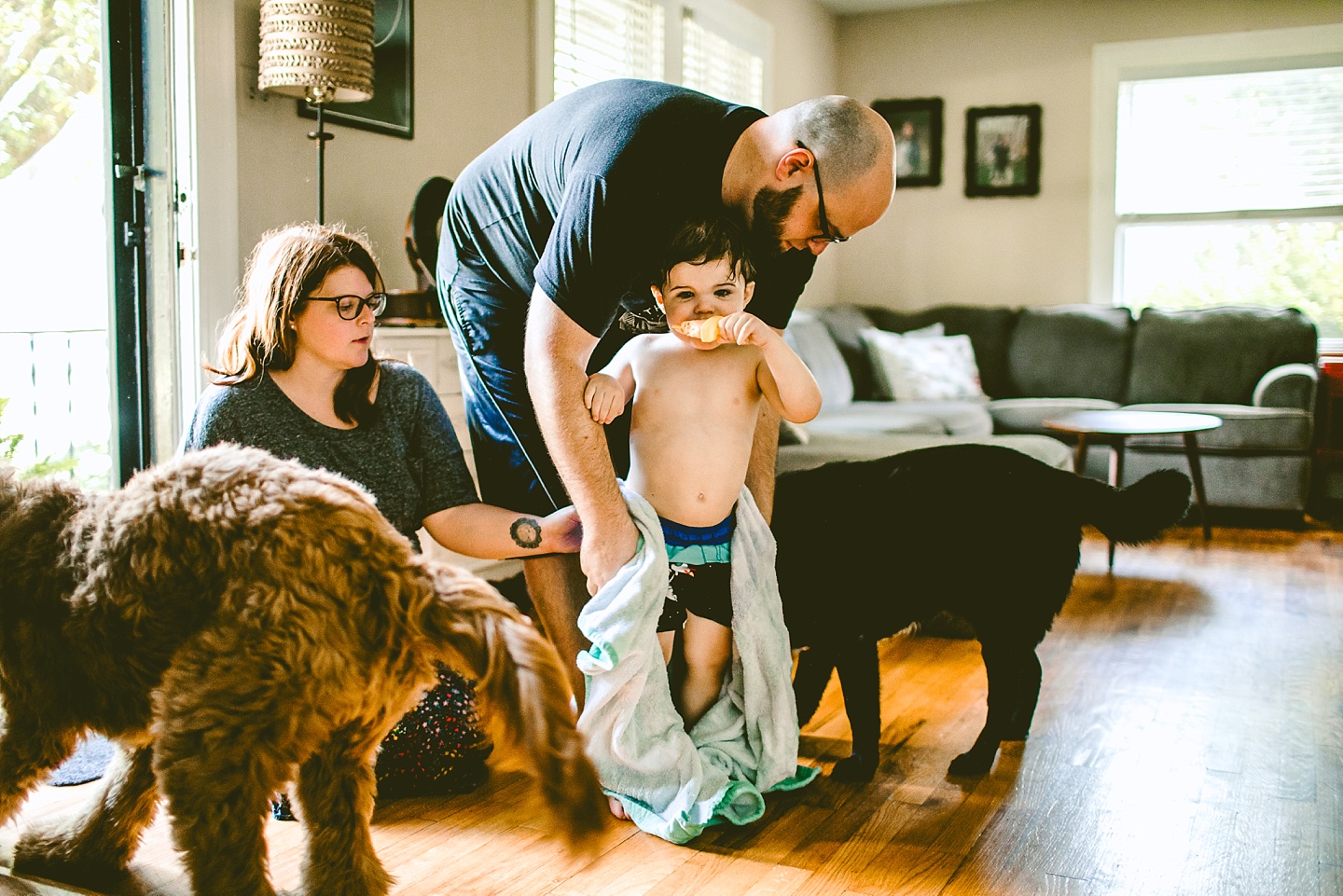 So basically, Finn is one of my all-time favorite children. I also love his parents, Heather and Garrett, whose maternity session we photographed back in 2016 while Finn was still in utero. They have a beautiful house that’s adorably decorated because Heather is an incredible designer and also because they, too, love Invader Zim. They have two flufferistic doggos, Mabel and Castle, who like to follow Finn around and look for food he’s currently dropping, and do zoomies around the house. When we left, Finn pressed his entire face up against the glass like I’ve really only ever seen in television shows because he’s the most amazing kid ever. He also blew me kisses immediately upon my arrival and departure. He did not blow kisses to Geoff, but rather stood super close to him while doing the Wheels on the Bus hand motions and staring directly into his eyes. Not sure what this meant but it was also great. YOU CAN DANCE IF YOU WANT TO.