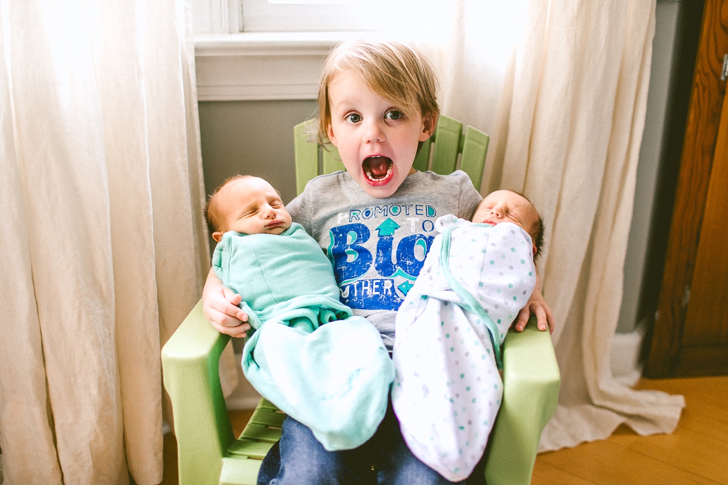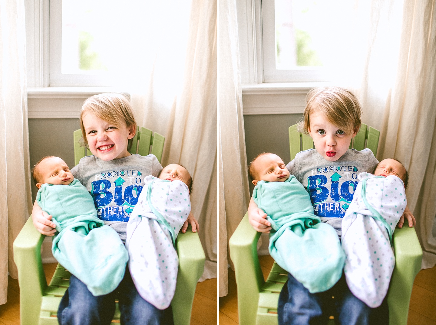 We’ve worked over the years with a number of sets of identical twins for some reason (I think this may be our 5th or 6th set), but this is our first newborn set… ones that aren’t old enough to have a wedding yet, let alone walk or talk. It was a bit intimidating, but thankfully they slept like the little baby angels that they are. Max, for the most part, is on the right hand side of the frame. Abby and Aaron claim he looks like Benjamin Button, and I can currently see the resemblance. Lucas, for the most part, is on the left hand side of the frame. And the excited looking sandy-haired toddler you see is Logan, now almost three, who has been happily upgraded to Big Brother status. And that’s me, over here in the corner, trying not to cry at the big beautiful family that I’m now kinda a small part of because I’ve invited myself over a lot and used to babysit their dog Casey. We love and adore each and every member of this family.
