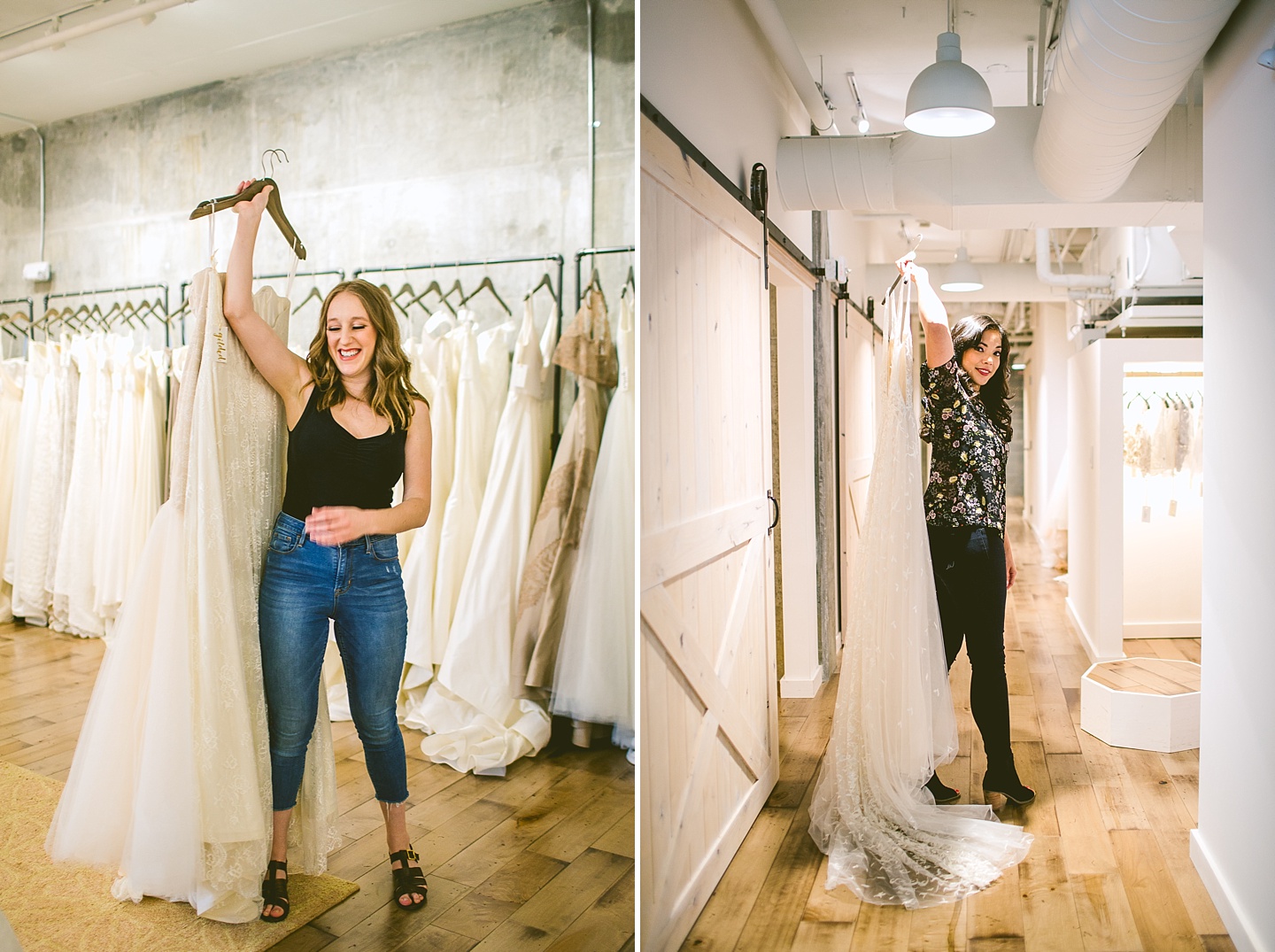 Susan cares deeply about her brides and also her awesome staff, so for Gilded’s Staff Appreciation Day, I came in to take headshots of the gorgeous Gilded girls as well as brides going through the process of picking out a gown and accessories. Then they all went to get manicures. It was a good day.
