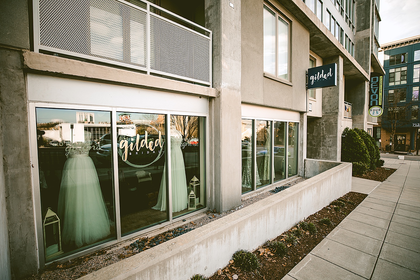 I am so, so, so thrilled to have done our third promo shoot for the fabulous Gilded Bridal! For those who missed parts one and two, Gilded Bridal is a boutique bridal shop in downtown Raleigh run by our very own former engagement and wedding client Susan Langford! She offers dresses from independent designers, and they’re badass. And I’m not just saying that because I love her. If her shop was around when I was married, my dress would’ve been a whole different ballgame.