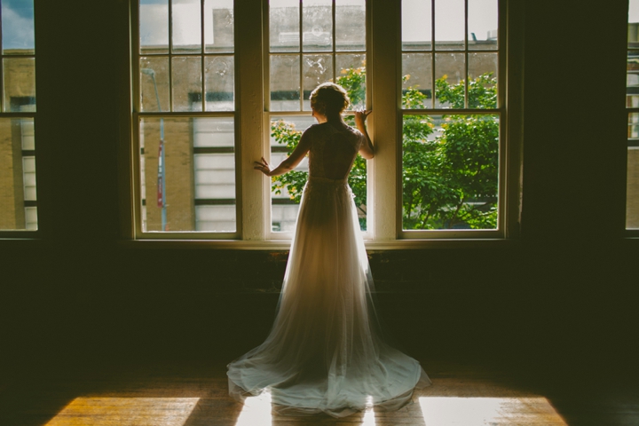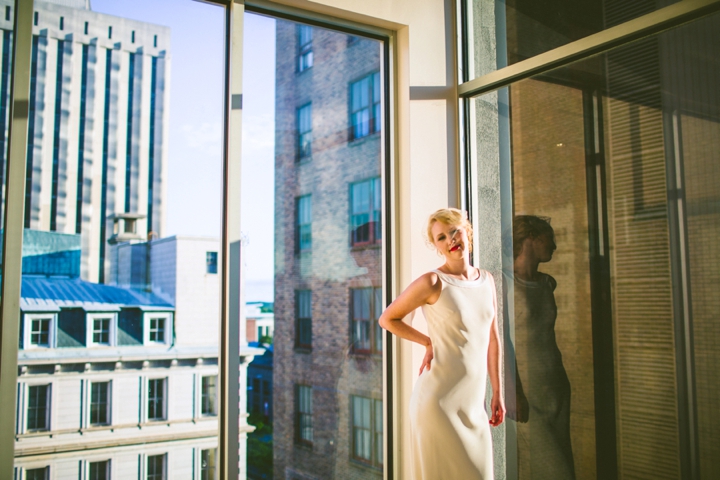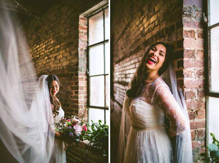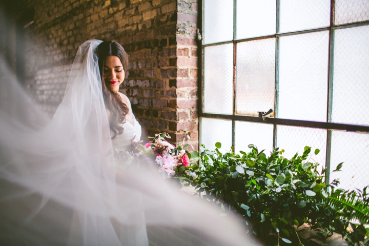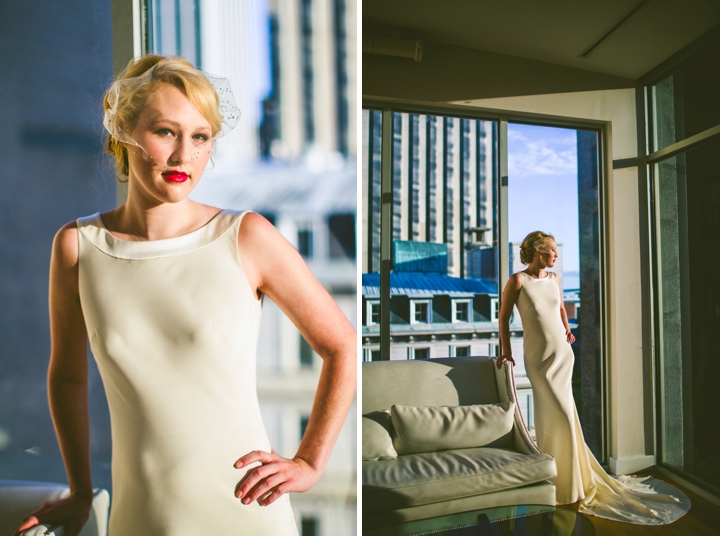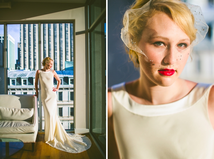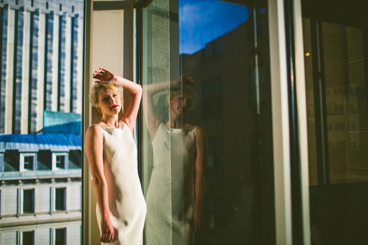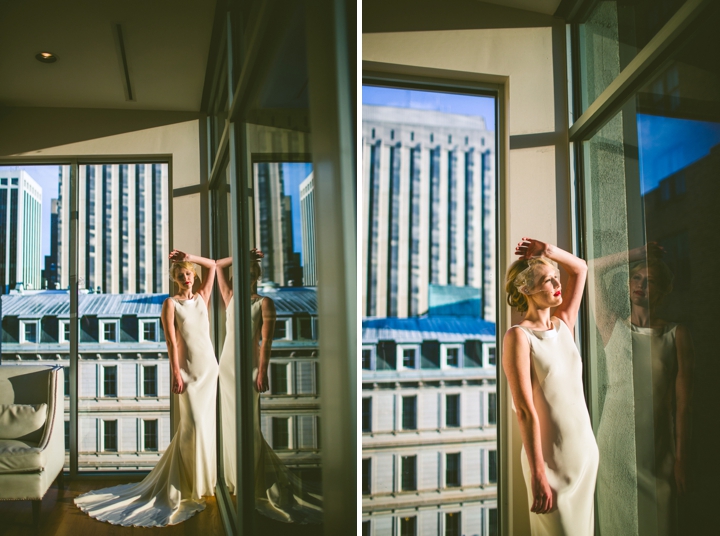 8th Series (Annaleigh in slim dress downtown) // Dress by Sarah Janks. Veil by Twigs & Honey.