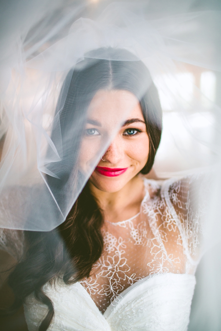 4th Series (Rayn with veil and bold lip color) // Veil by Veil Trends. Dress by Ivy & Aster.
