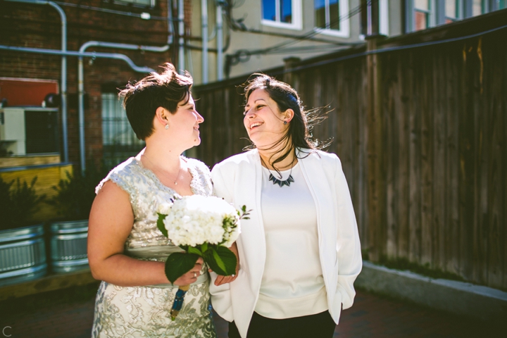 • How You Met: On the internet! OKCupid. Abby messaged Rachel first because she liked her taste in books, but it quickly turned into a conversation about our shared love of Buffy the Vampire Slayer.  We then met for a dinner date at Geer Street Garden, went to the Pinhook after, and the rest is history!