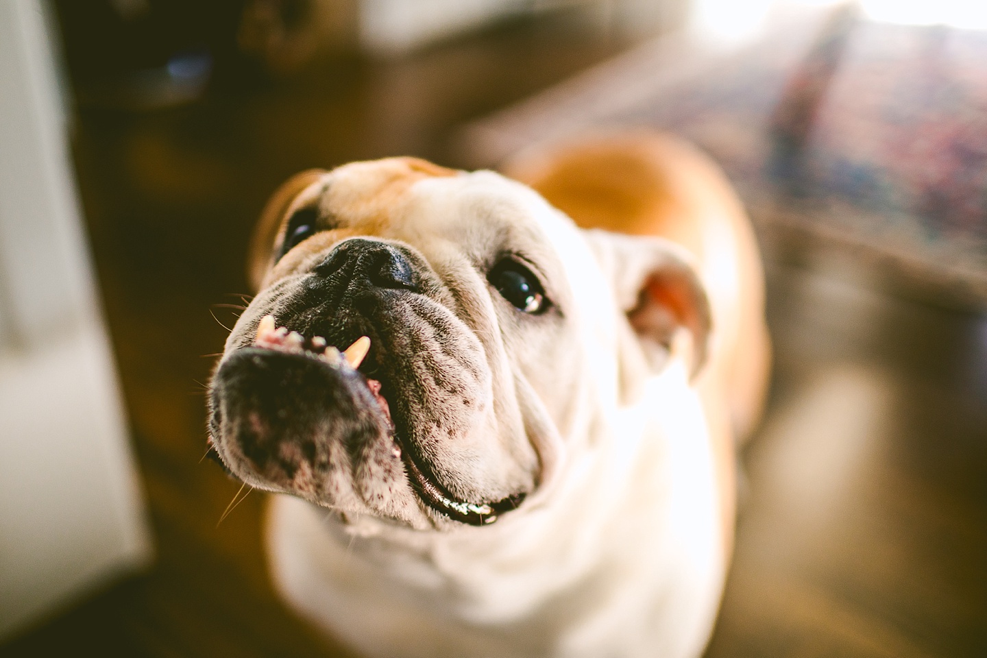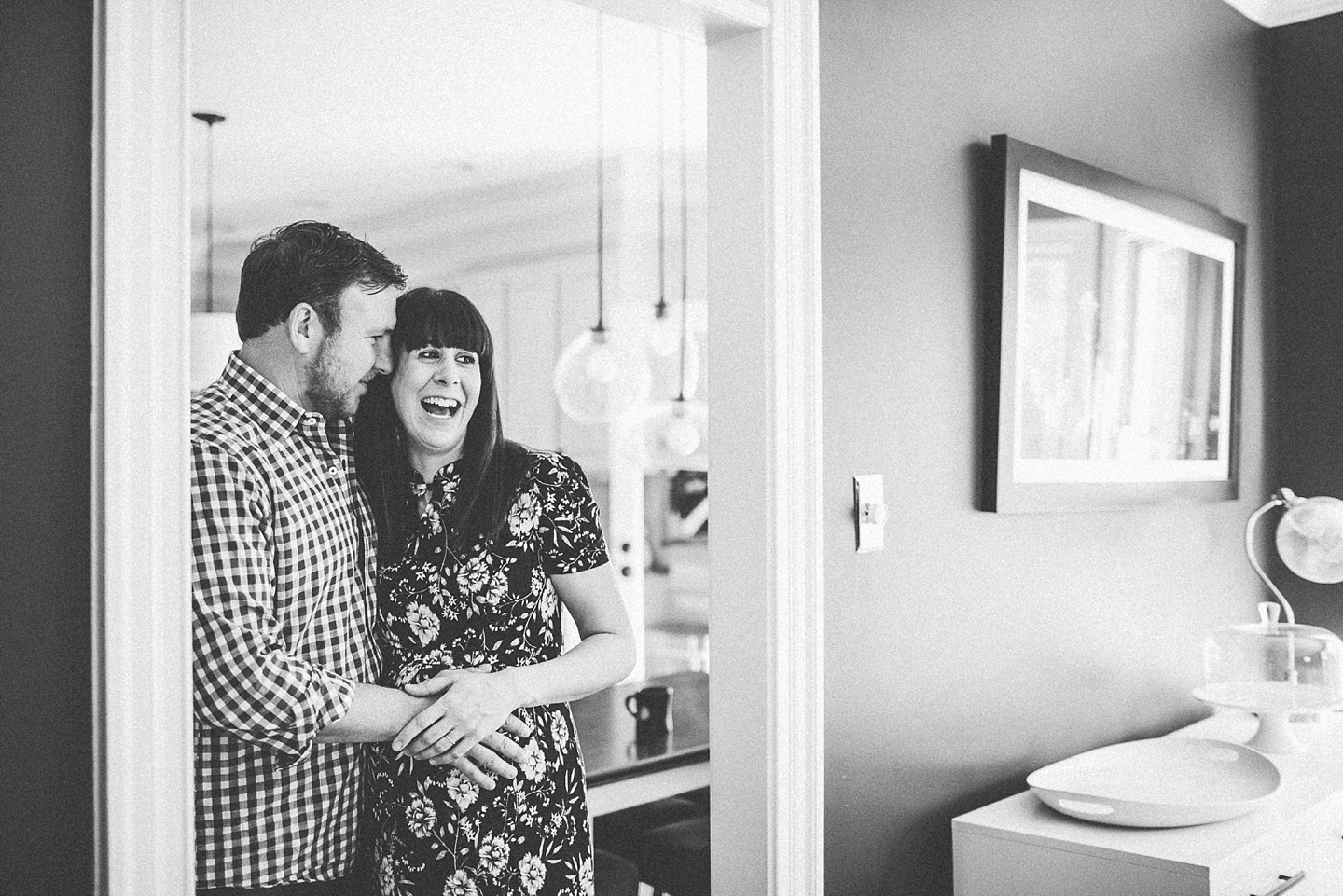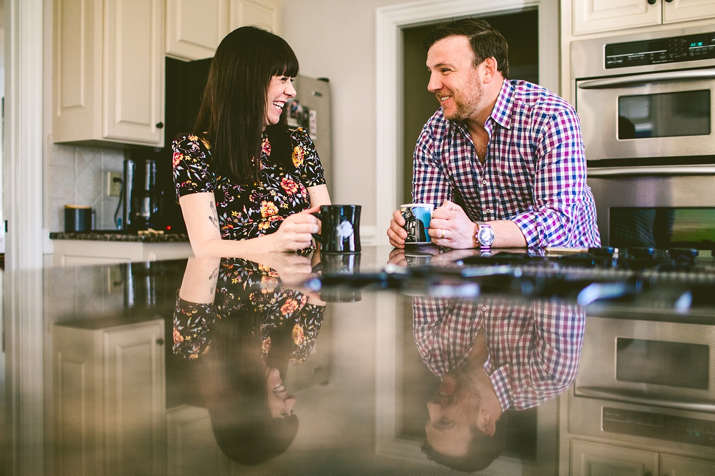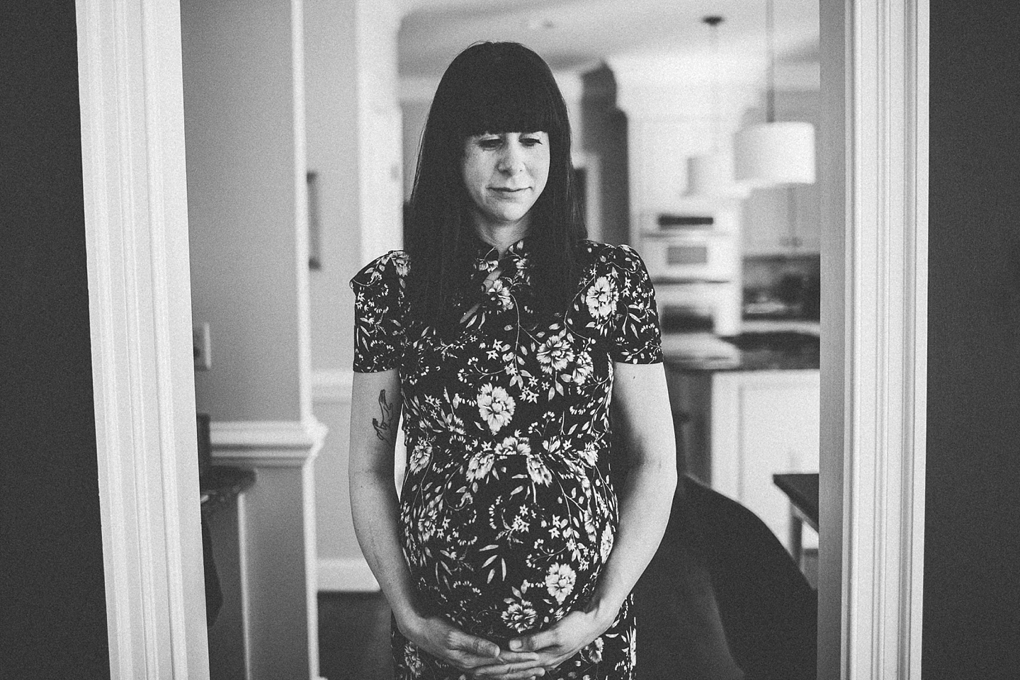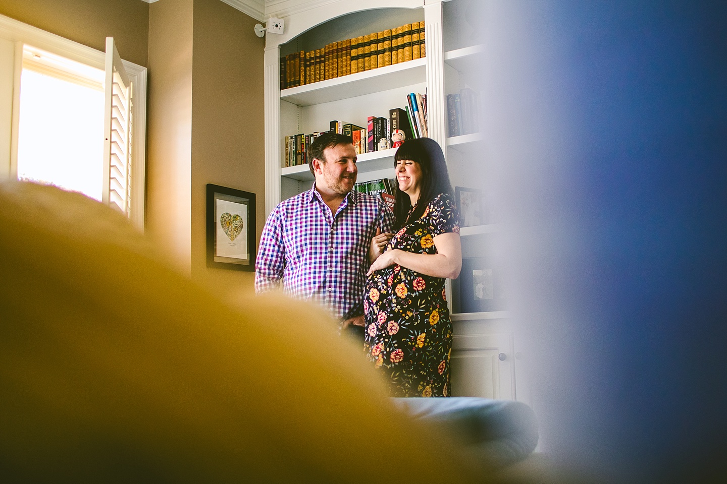 This maternity session had all the things we want out of any session: a Laura Palmer meanwhile hands tattoo, a David Lynch shrine, two English bulldogs, and a listening of “Bodhisattva” by Steely Dan. Also, Sarah’s haircut and X-Files discussions. We like them both a whole bunch, even if they didn’t have the world’s two most adorable English bulldogs who have the quintessential protruding jaws that any self-respecting bulldog would have. They also stick their legs out completely straight and have a bunch of face-rolls (the dogs… not Sarah and Chris) and their names are Seamus and Sasquatch. The point of this session was to document Sarah’s pregnancy and her and Chris’s life together with the pups before the arrival of baby boy in February, and we happily did just that in their wonderful home. Seamus is also getting up there in bulldog years so it was important to photograph his squishy face (he is the lighter, tanner bulldog). Sasquatch is his newer brother who was a gift to Chris on their wedding day (cutest squishiest gift ever).