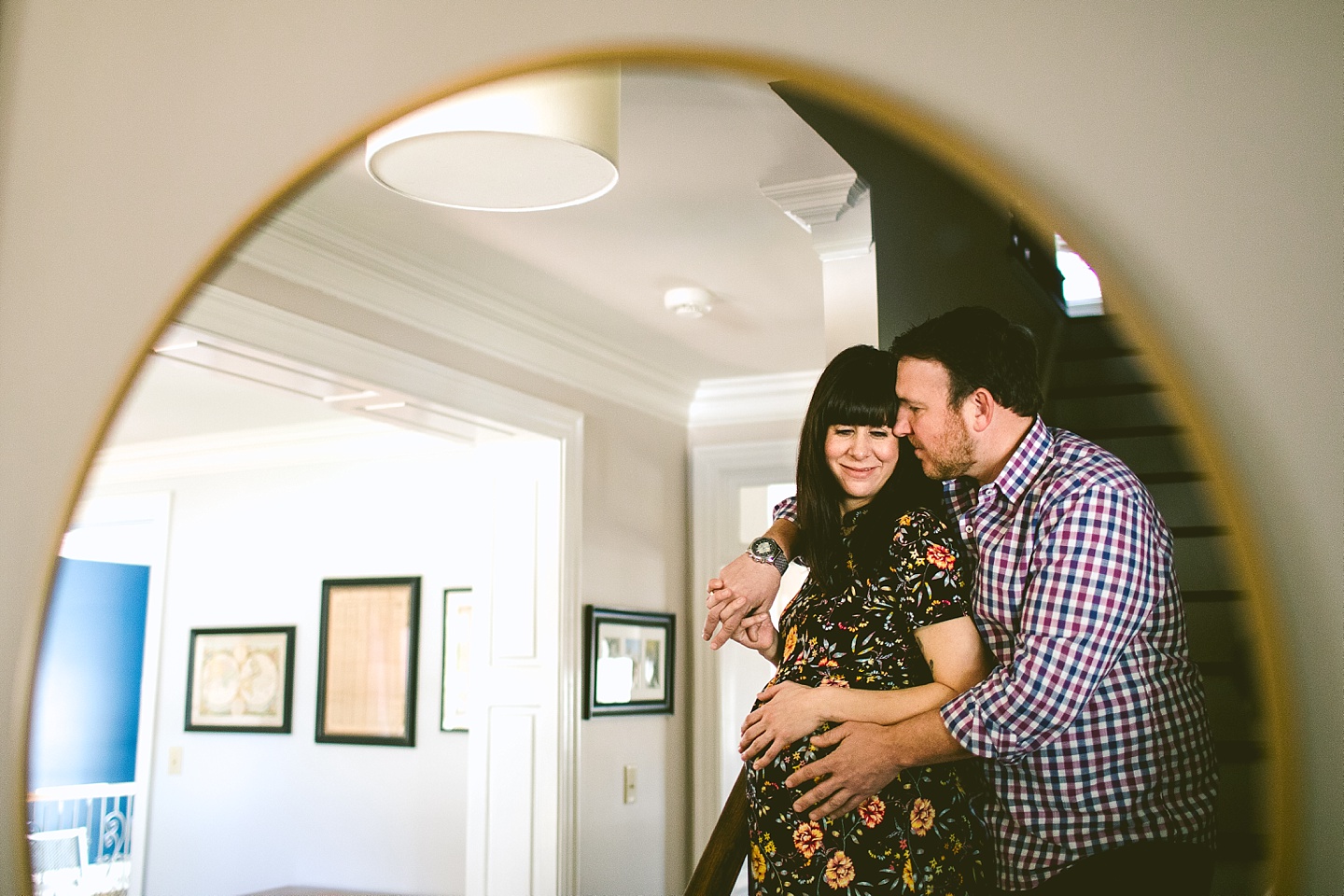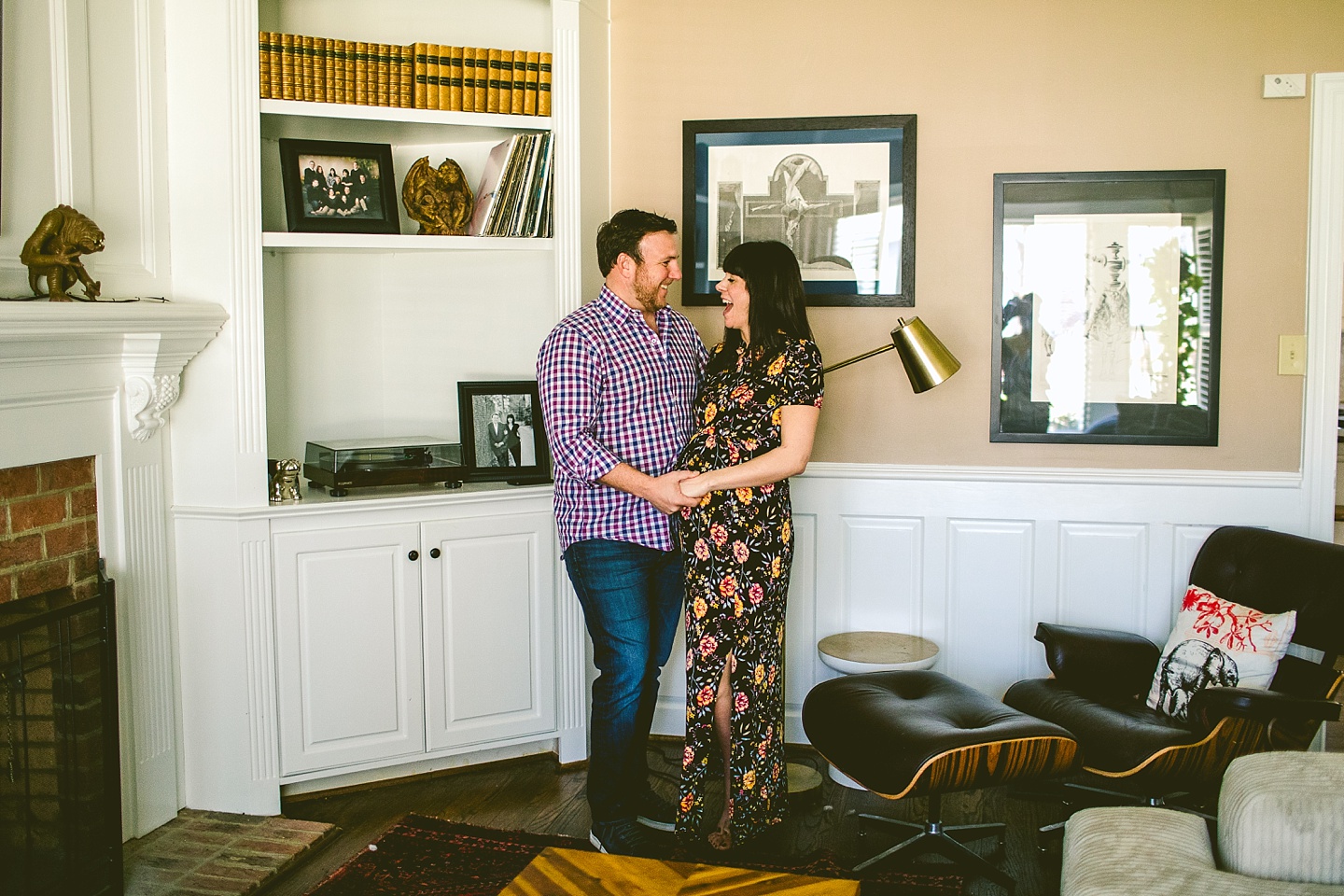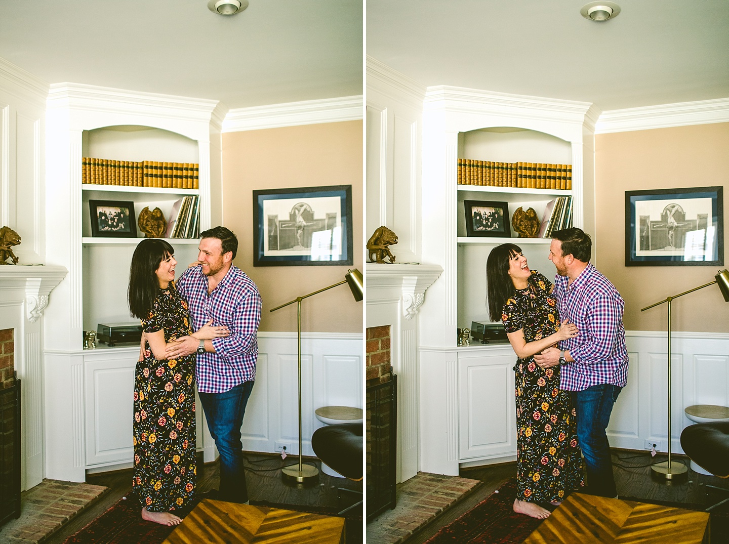 Sarah and Chris met in St. Louis. Chris wore this exactly plaid shirt on their first date, as well as during their engagement pictures, and now during their maternity pictures. I officially declare that the most thoughtful and charming clothing choice from any guy we’ve photographed. He also has a pretty killer vintage Star Wars mug that has continuity clothing issues (which makes it even more awesome) and he’s seen Phish over 50 times. Sarah is very much into all things David Lynch and I firmly believe that she should be crowned Miss Twin Peaks and be presented with some sort of “Save the Pine Weasel” pin. Both Chris and Sarah are concerned their kid will like pop music in the future, but we agree that yacht rock type pop of the late 70s is 100% acceptable and even encouraged. We are excited to bring you more of these people (and pups) next month when we meet their baby who we’re sure will be totally badass straight out of the womb.
