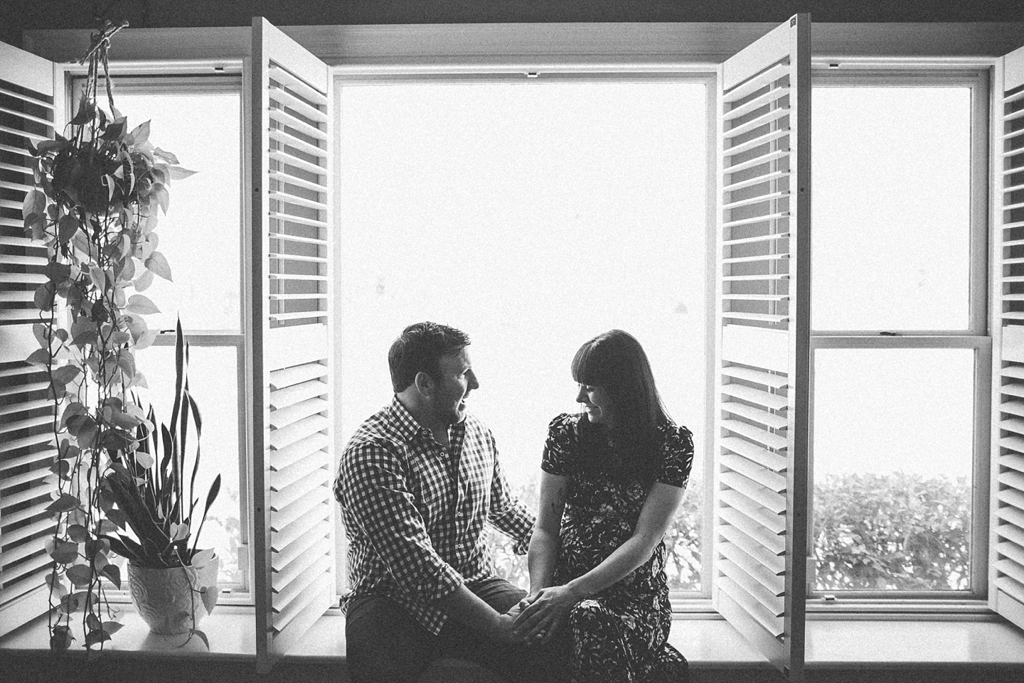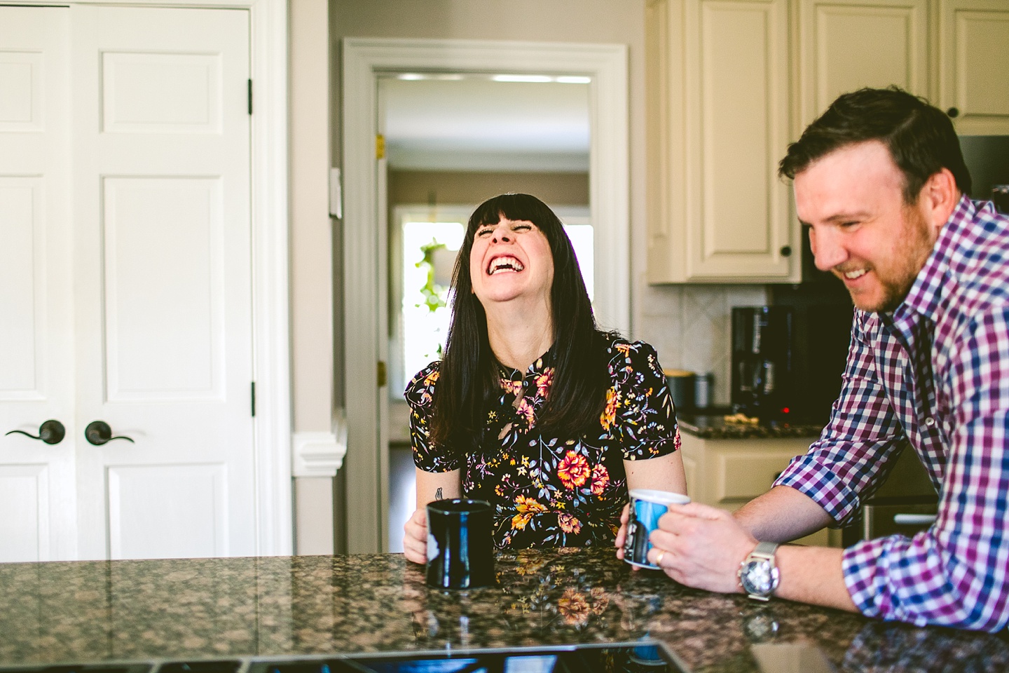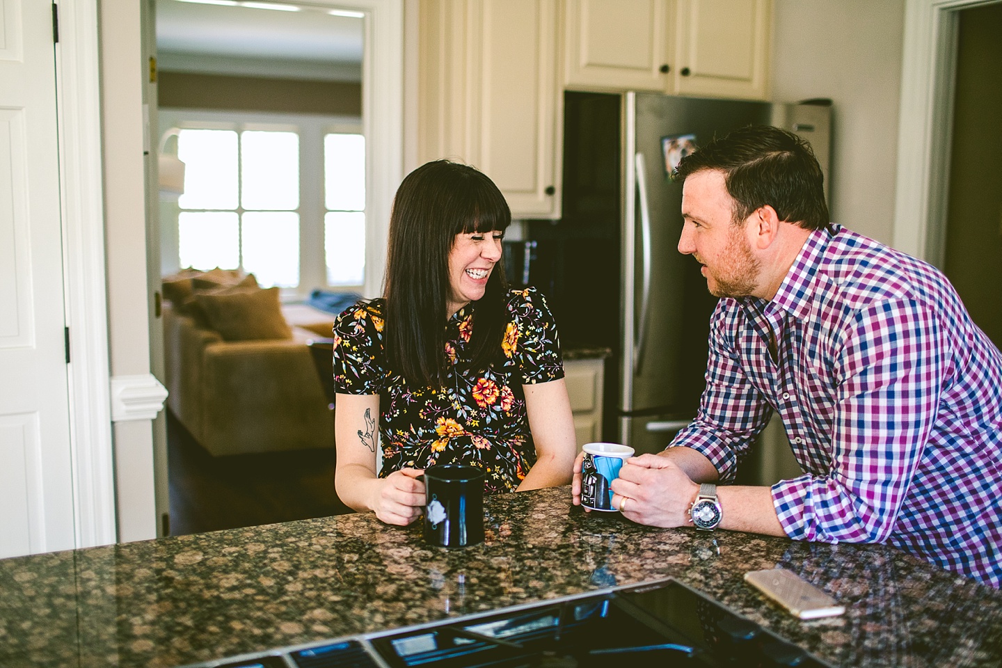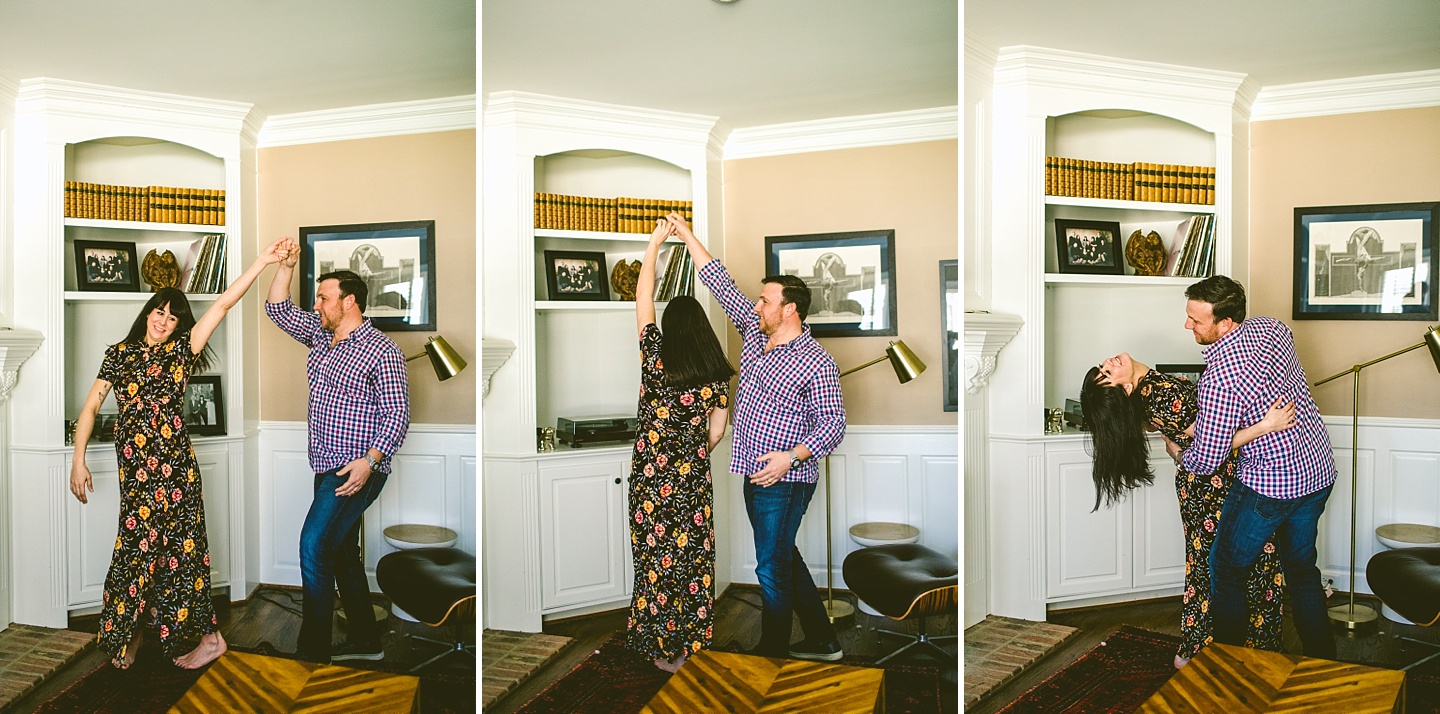 Sarah and Chris met in St. Louis. Chris wore this exactly plaid shirt on their first date, as well as during their engagement pictures, and now during their maternity pictures. I officially declare that the most thoughtful and charming clothing choice from any guy we’ve photographed. He also has a pretty killer vintage Star Wars mug that has continuity clothing issues (which makes it even more awesome) and he’s seen Phish over 50 times. Sarah is very much into all things David Lynch and I firmly believe that she should be crowned Miss Twin Peaks and be presented with some sort of “Save the Pine Weasel” pin. Both Chris and Sarah are concerned their kid will like pop music in the future, but we agree that yacht rock type pop of the late 70s is 100% acceptable and even encouraged. We are excited to bring you more of these people (and pups) next month when we meet their baby who we’re sure will be totally badass straight out of the womb.