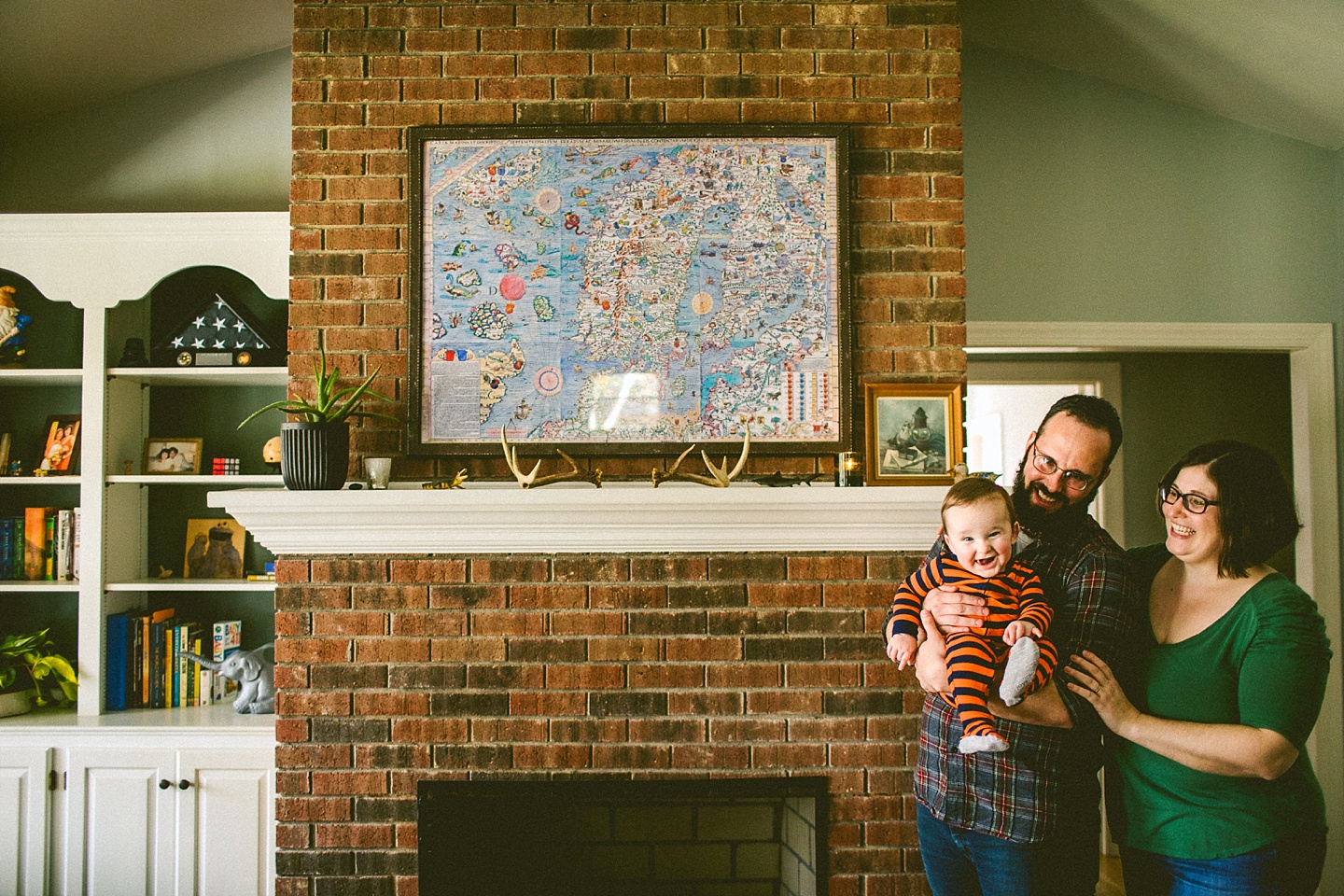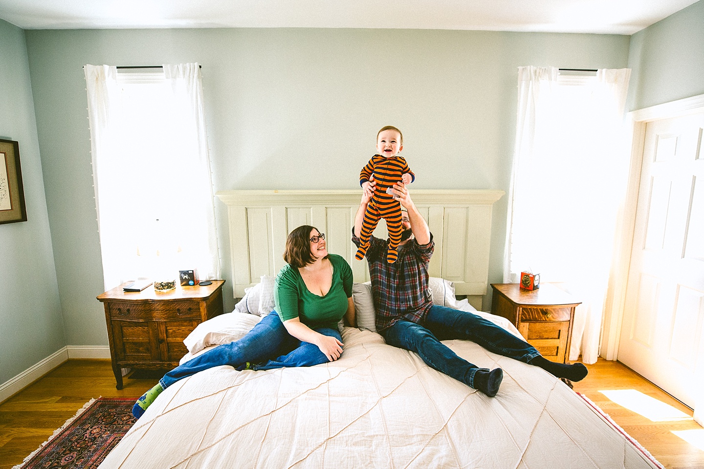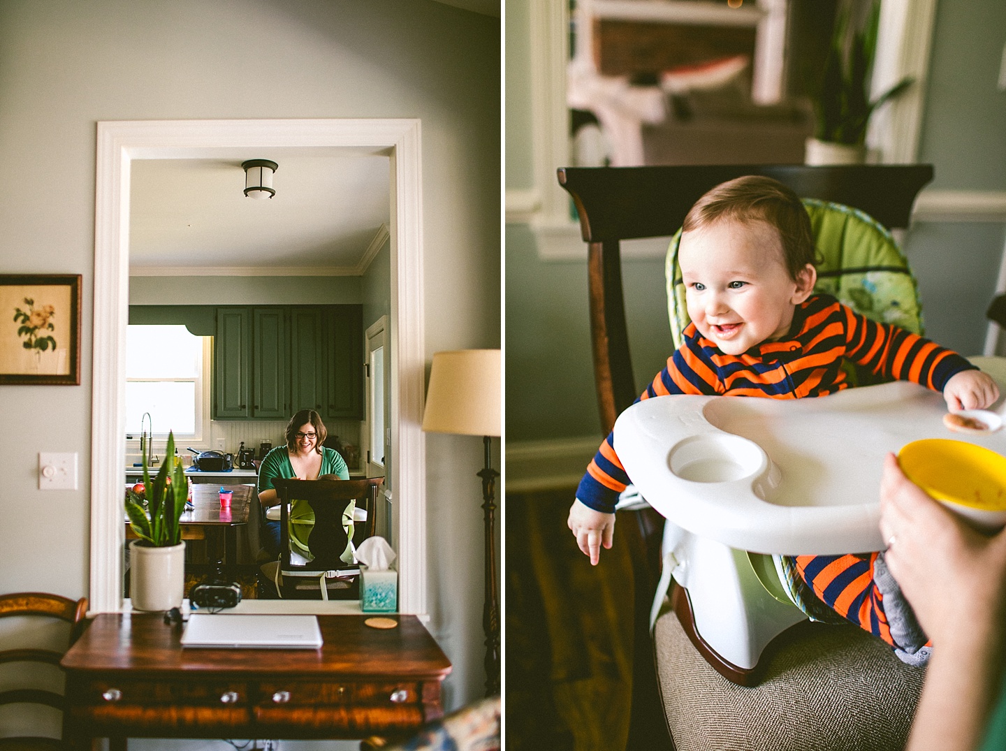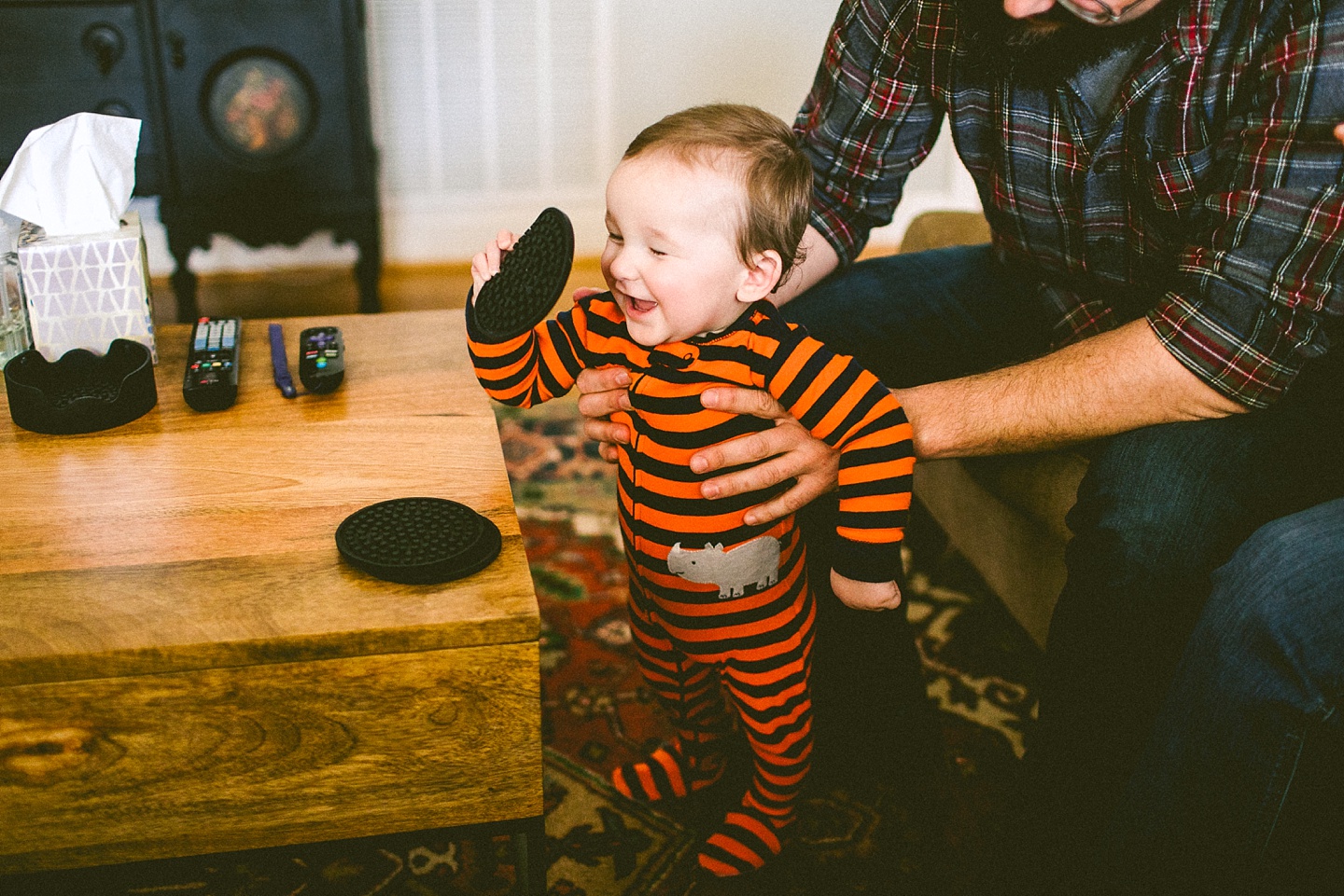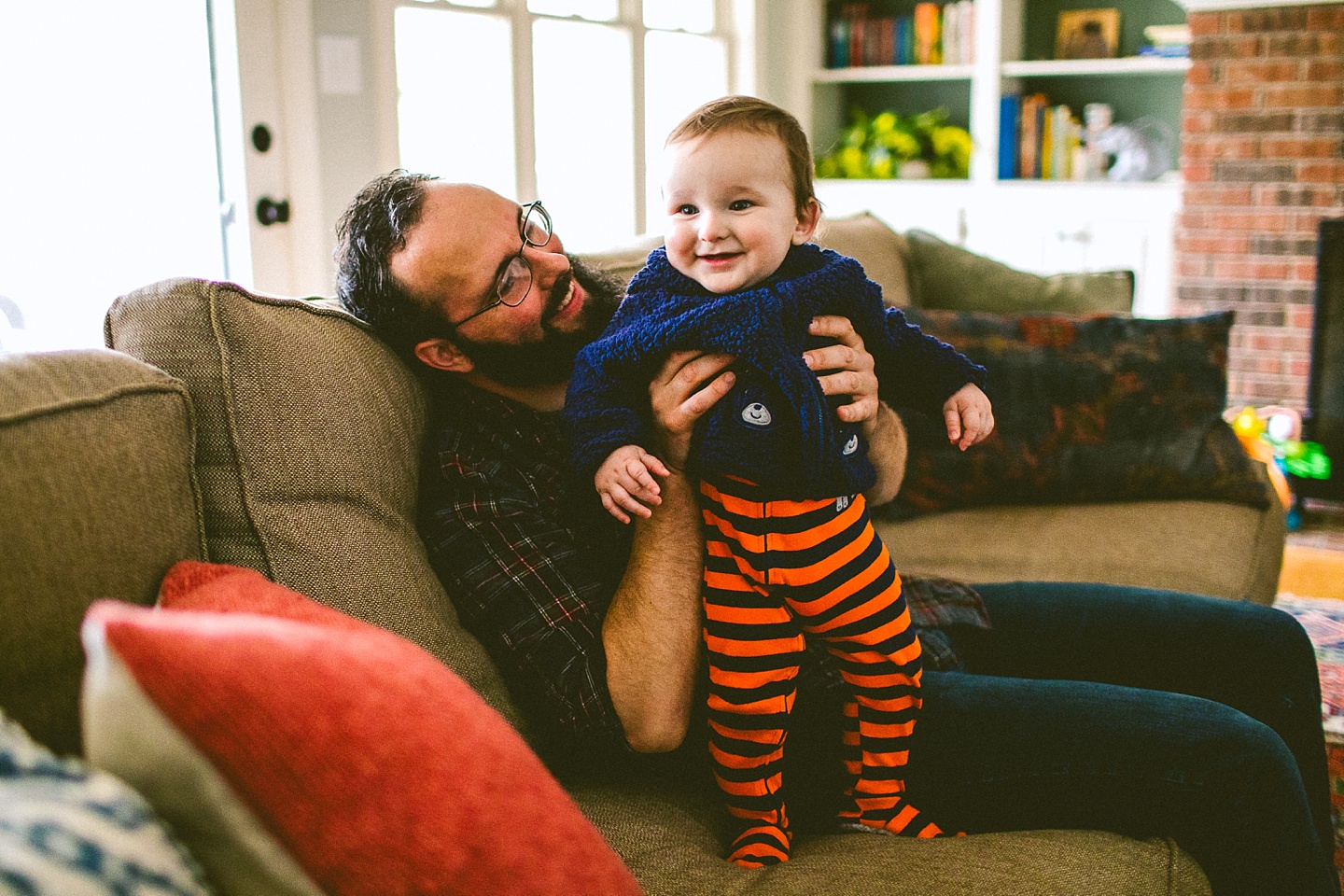 Doing at-home lifestyle family documentation is normally a very fun thing to do, but it becomes even more fun when the family is British and have fun accents, and when their 3-year-old daughter makes you tea. Clare and Dan live in a phenomenal old neighborhood in Durham that reminds me a bit of my old ‘hood in Pittsburgh. And their house is adorable, bright, fun, and 100% complete with KISS Mr. Potato Head dolls. They moved from the UK to America several years ago and first landed in Los Angeles, and then hopped across the US to land in Durham. From across the pond they bring with them their wonderful senses of humor but also the knowledge of this British kid’s television show involving a cute monster-looking guy whose name currently escapes me but was reminiscent in the best ways of My Pet Monster (which was brilliant). Harper likes this monster, but also Daniel Tiger and Peppa Pig, and also occasionally snacking on goldfish crackers straight off the pond on top of the dollhouse that Clare painstakingly made her. Baby Lyla is happy and sleepy, and not yet appreciative of all of Clare’s household crafts (of which there are many fabulous ones!). I had a great time hanging out with this family and learning such phrases like being “duffed up on the nugget.”