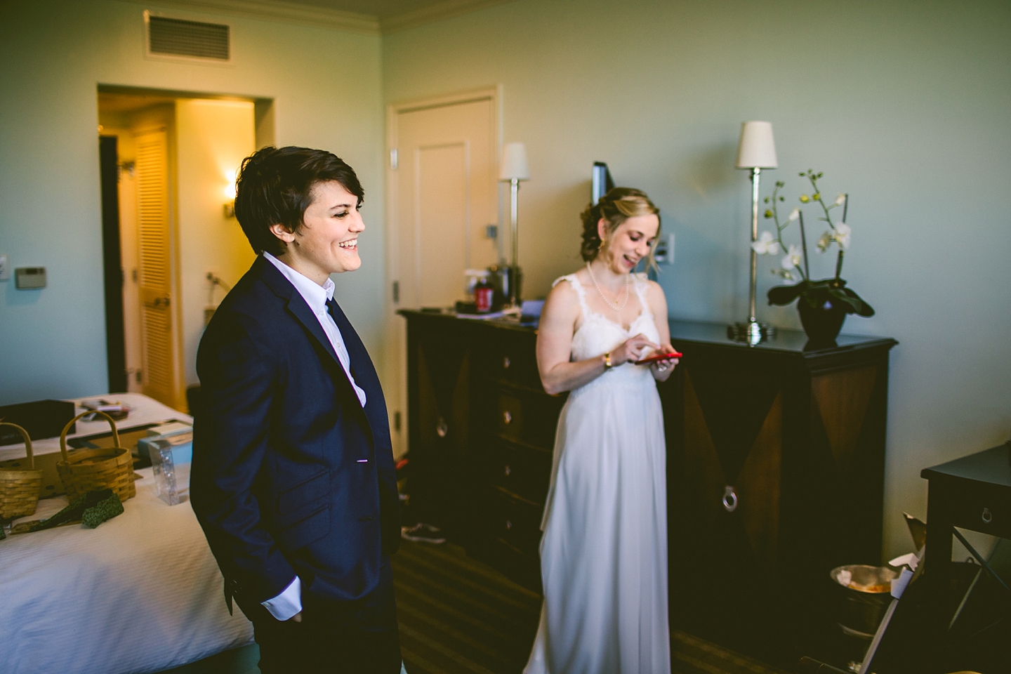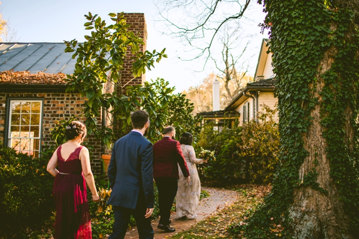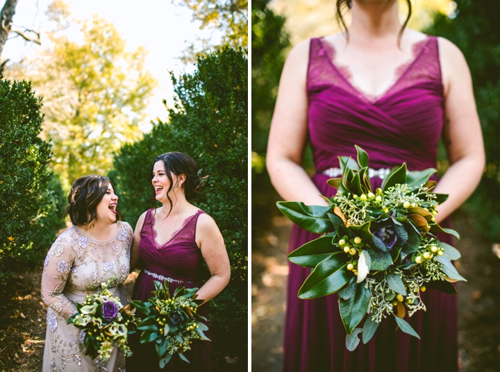 We were so thrilled to finally work with Megan and Carly when we didn’t have 100+ degree fevers like the day of their engagement shoot. It’s so much easier to work when you don’t feel like you’re going to die, eh? And what two better people to kick off our wedding season than these guys! They are nice and happy and so cute together all the time that they make everything really easy, and their wedding day was a blast. The weather was great, there was tasty food and cake and gluten-free cakes, everyone was in a good mood, and some guy named Tucker at The Franklin Hotel totally swooped in and saved the day with his ability to tie a bow tie. There was even a parking spot at the Coker Arboretum for pictures, which is a rare occurrence. We take all of these things to be a sign of good luck and fortune in their marriage (you guys didn’t know that us finding a parking spot in Chapel Hill is good luck for your marriage, did you? you learn something new every day!).