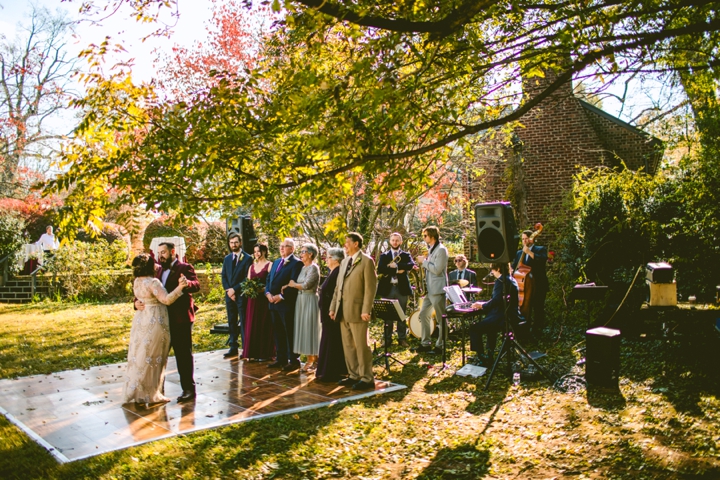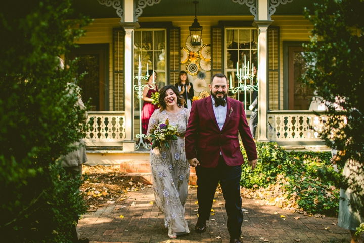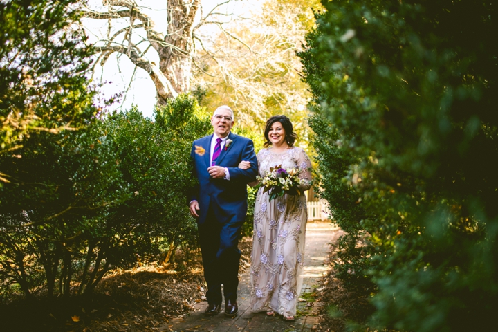 • Vendor Credits: Officiant – Rev. Mandy Mizelle Norris. DJ – Damian Maass. Florist – Julie of Bushel and Peck. Cake – Details Cake Design. Caterer – Donovan’s Dish. Hair/Makeup – Bella Trio, Durham NC. Coordinator – Leah Coman of C&D Events. Ceremony Music – Arioso String. Transportation – Greenway Transit.