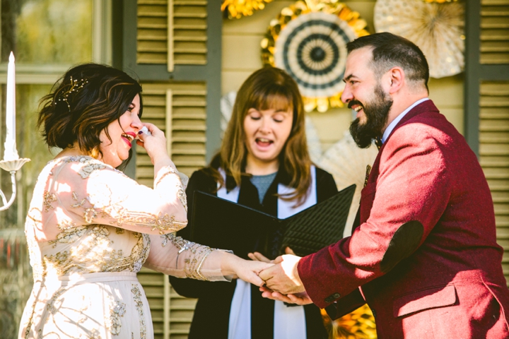 Megan’s currently finishing her dissertation in Kentucky, and then they’re planning to move to Durham because they love it here, but also so that Megan and I can use each other for haircut inspiration. And also so we can pet their Corgi. And so Carly can coach me in the ways of her cross stitching knowledge. We are super excited that Carly and Megan have found each other and are married and are moving back to our city! And we send these two very lovely and wonderful people a big heartfelt congratulations and an uncomfortably long hug from us to them.