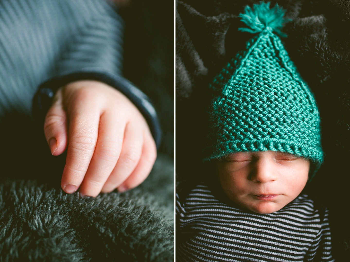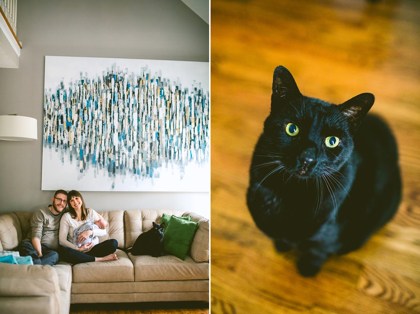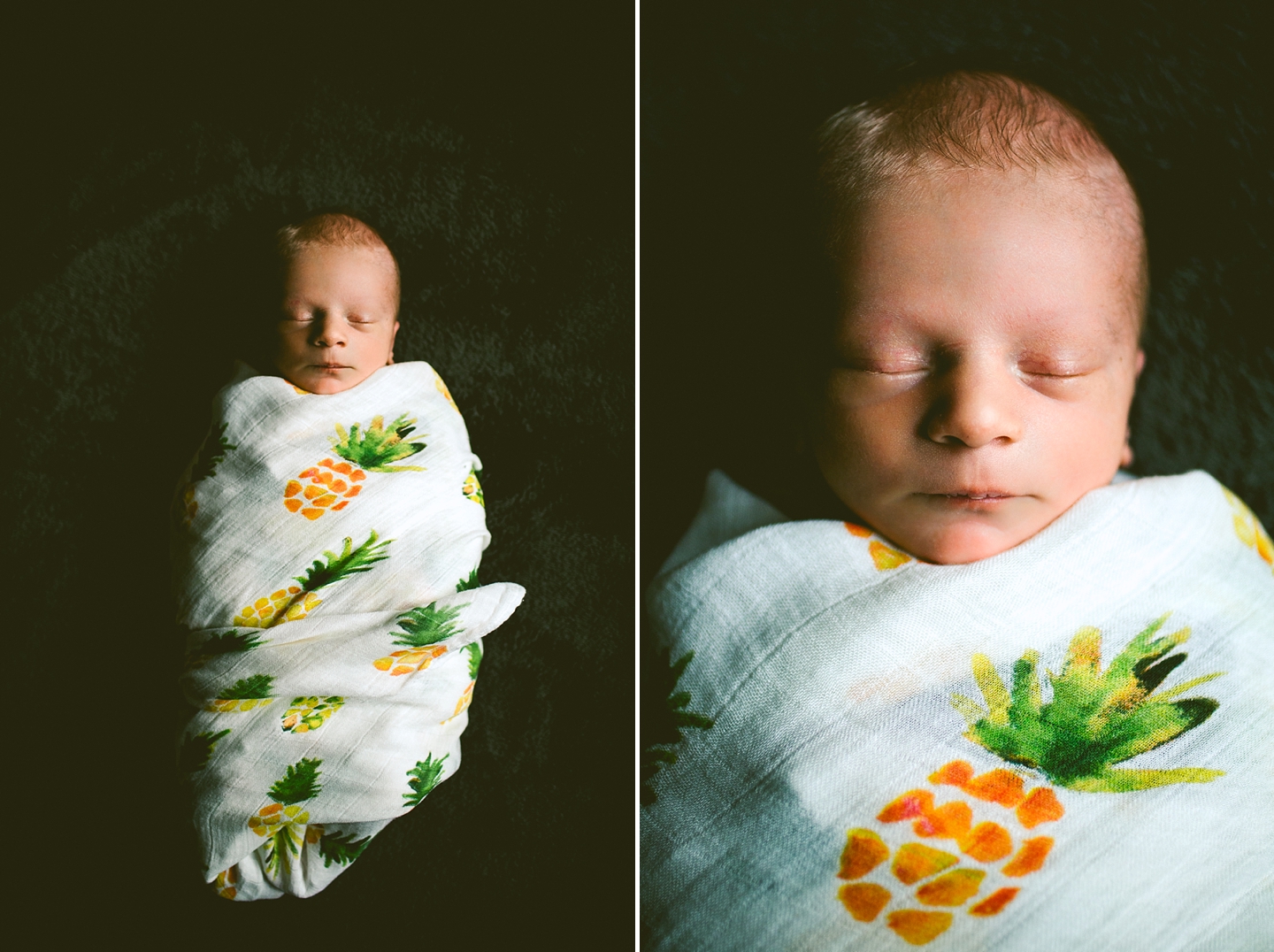 We are always so happy to keep in touch with our awesome couples, and Brooke and David are no exception. And let’s be honest, their cat Spencer is pretty great too. We photographed their wedding back in May 2014 and have been keeping in touch with them and Spencer ever since, happily watching on from a respectful but also kind of creepy distance as Brooke writes tasty, tasty recipes on her foodie blog, Never Any Thyme (named after everyone’s favorite Jessie Spano “I’m So Excited” freakout), and giving her positive but insistent encouragement to bring back her bangs. Brooke is also crafty as hell, and knits stuff that is adorable and completely unattainable with my skill level. I admire her greatly. David isn’t on Instagram so I can’t stalk him as much and Spencer unfortunately doesn’t have his own account yet (hint) but I have high hopes for their adorable little offspring named Finn to have his own hashtag. Look at him! He is adorable and squishy and we are so, so happy for Brooke and David! This kid is a champ. I think he maybe cried for .2 seconds during the shoot, and the rest of the time he drank his entire weight in milk and fell asleep and let us do whatever we wanted. Brooke craved a lot of pineapple during her pregnancy, so we wrapped him in a pineapple swaddle, took some pictures, and called it a day. We also surrounded him with oranges? Because… we didn’t have any pineapple… ? And also… citrus is all the same, right? Wait, I just Googled it, and pineapple isn’t even a citrus. Uggggggh.