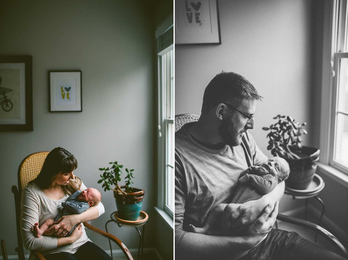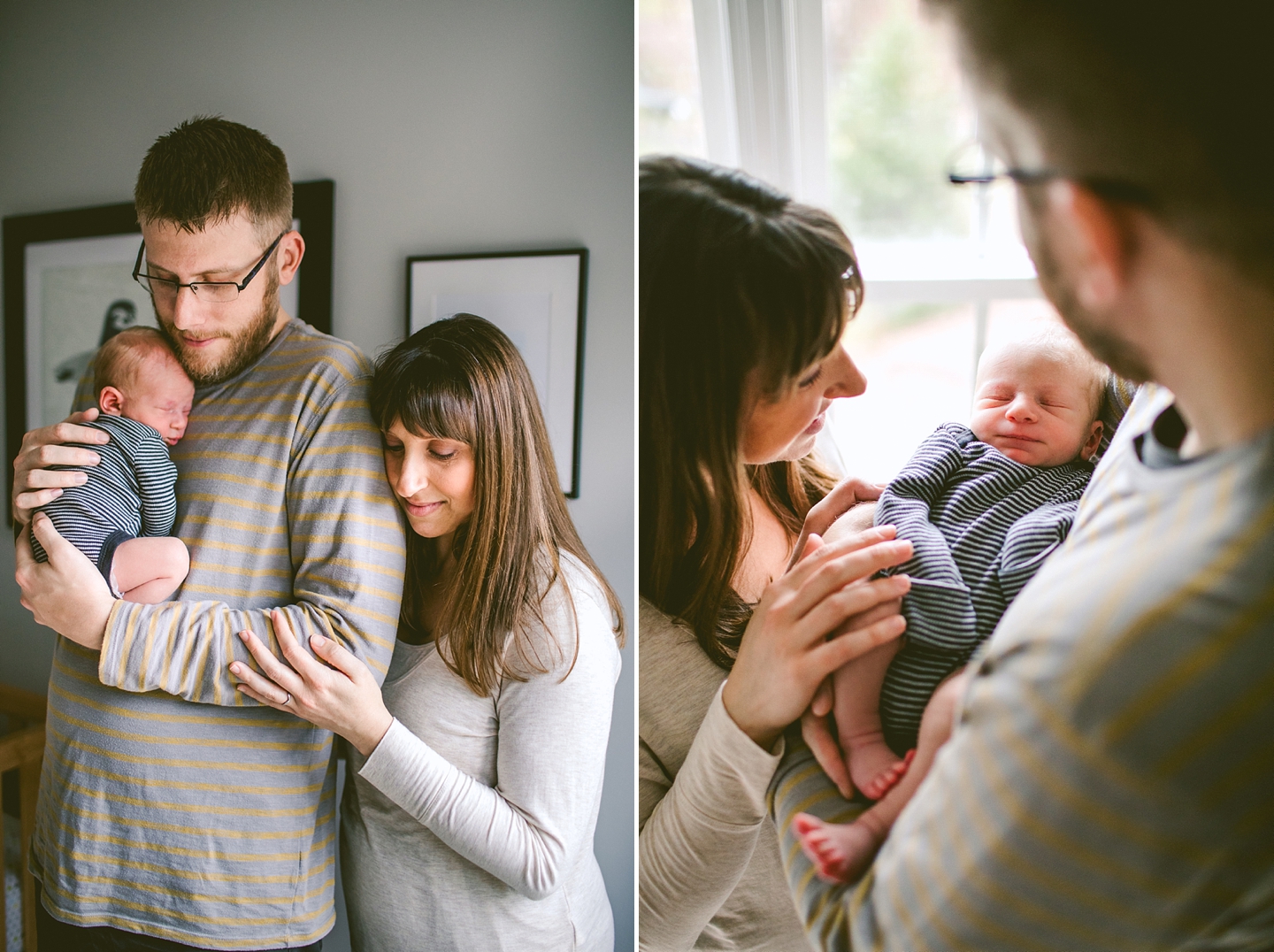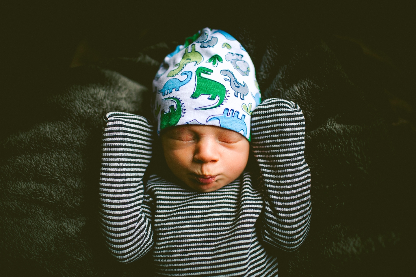 We are always so happy to keep in touch with our awesome couples, and Brooke and David are no exception. And let’s be honest, their cat Spencer is pretty great too. We photographed their wedding back in May 2014 and have been keeping in touch with them and Spencer ever since, happily watching on from a respectful but also kind of creepy distance as Brooke writes tasty, tasty recipes on her foodie blog, Never Any Thyme (named after everyone’s favorite Jessie Spano “I’m So Excited” freakout), and giving her positive but insistent encouragement to bring back her bangs. Brooke is also crafty as hell, and knits stuff that is adorable and completely unattainable with my skill level. I admire her greatly. David isn’t on Instagram so I can’t stalk him as much and Spencer unfortunately doesn’t have his own account yet (hint) but I have high hopes for their adorable little offspring named Finn to have his own hashtag. Look at him! He is adorable and squishy and we are so, so happy for Brooke and David! This kid is a champ. I think he maybe cried for .2 seconds during the shoot, and the rest of the time he drank his entire weight in milk and fell asleep and let us do whatever we wanted. Brooke craved a lot of pineapple during her pregnancy, so we wrapped him in a pineapple swaddle, took some pictures, and called it a day. We also surrounded him with oranges? Because… we didn’t have any pineapple… ? And also… citrus is all the same, right? Wait, I just Googled it, and pineapple isn’t even a citrus. Uggggggh.