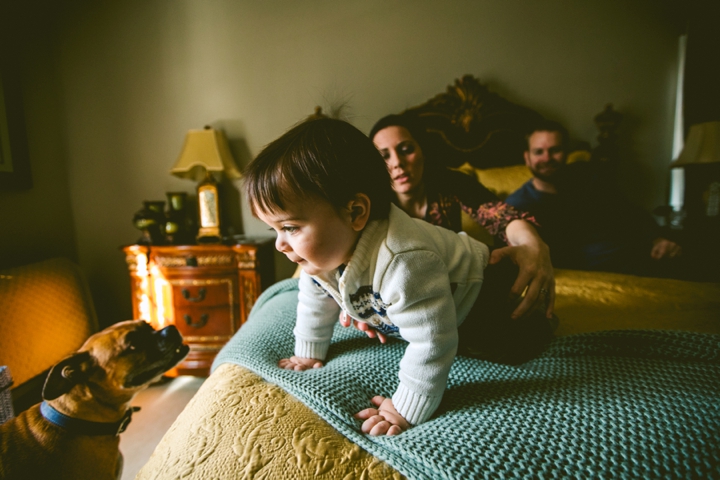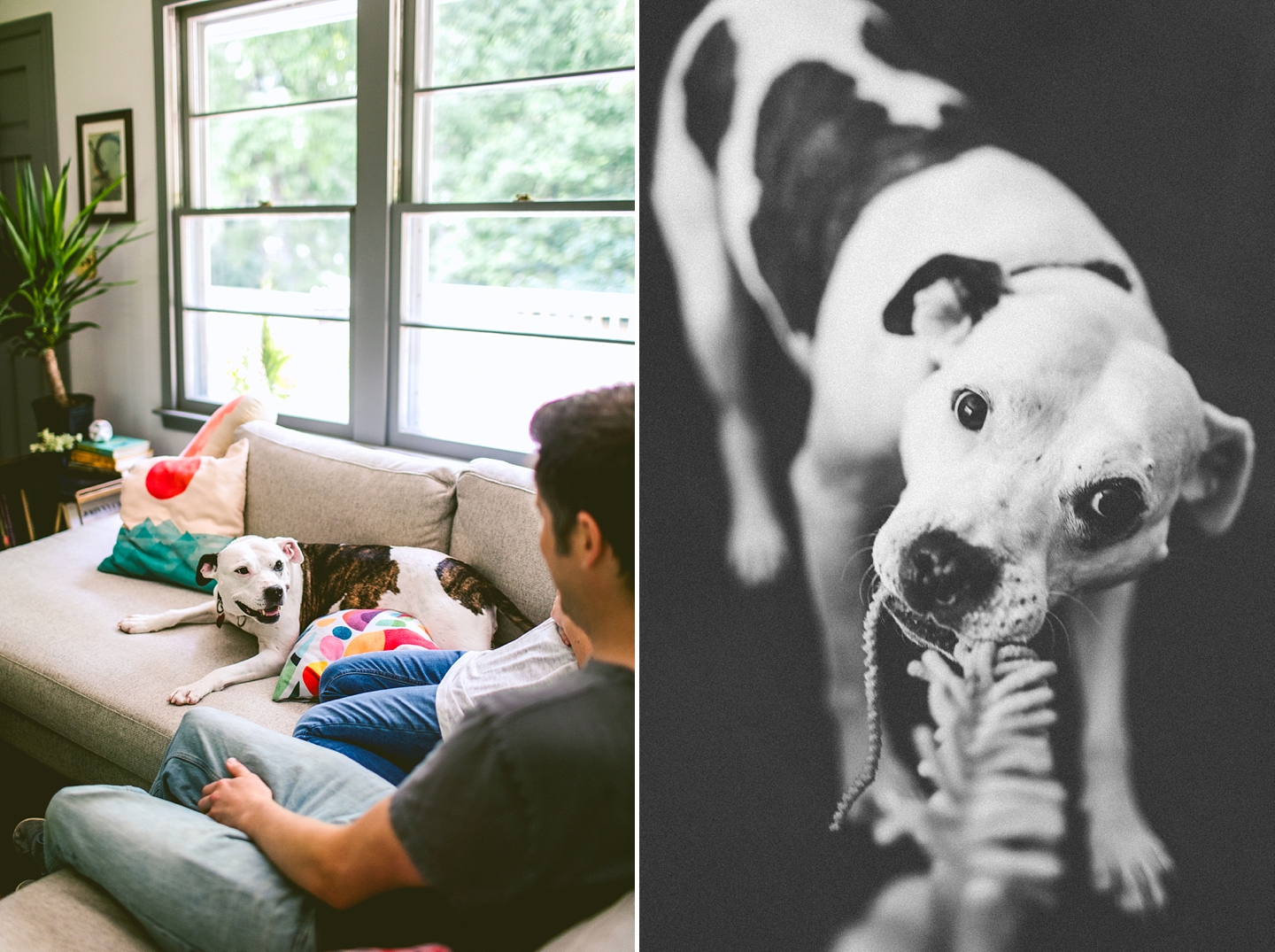We are delightfully welcoming Lindsay+Ken to the CSP 5 Timer’s Club, to which there is unfortunately no sweet club jacket, but just the simple joy and satisfaction in knowing that I’ve ran around stalking you with a camera on five separate occasions. Here was their 4th occasion, when I accurately predicted that they were pregnant with what would turn out to be a really, really, ridiculously good looking child. I was right, of course, and KG is a stunner of a little-over-one-year-old. He didn’t like us at all until he realized we were there to take pictures of him, and then he turned on the charm. Big blue eyes, dark hair, and the attitude of an overworked model: smiling directly into the camera 99% of the time, demanding to see the pictures on the screen afterward to make sure he looked good, and then breaking down into tears due to hunger. He is an incredibly adorable kid, and his beauuuutiful parents are two people who are very near and dear to my heart. Dogs Mona and Lincoln, Boxer extraordinaires, were also present and adorable for this session, and also a cat! The cat was sleeping under a kitchen chair and permitted exactly four photos before she said, “I’m out” and left. It is really a cool job that we have to see our clients grow and have families and we can meet little mini versions of our clients. Welcome to the world, KG! And to the CSP 1st Timer’s Club. :)