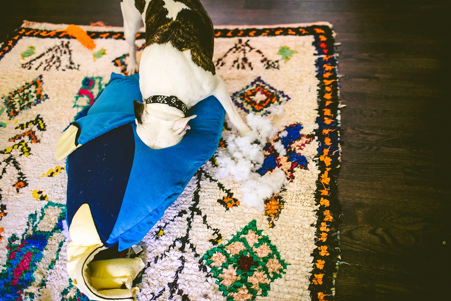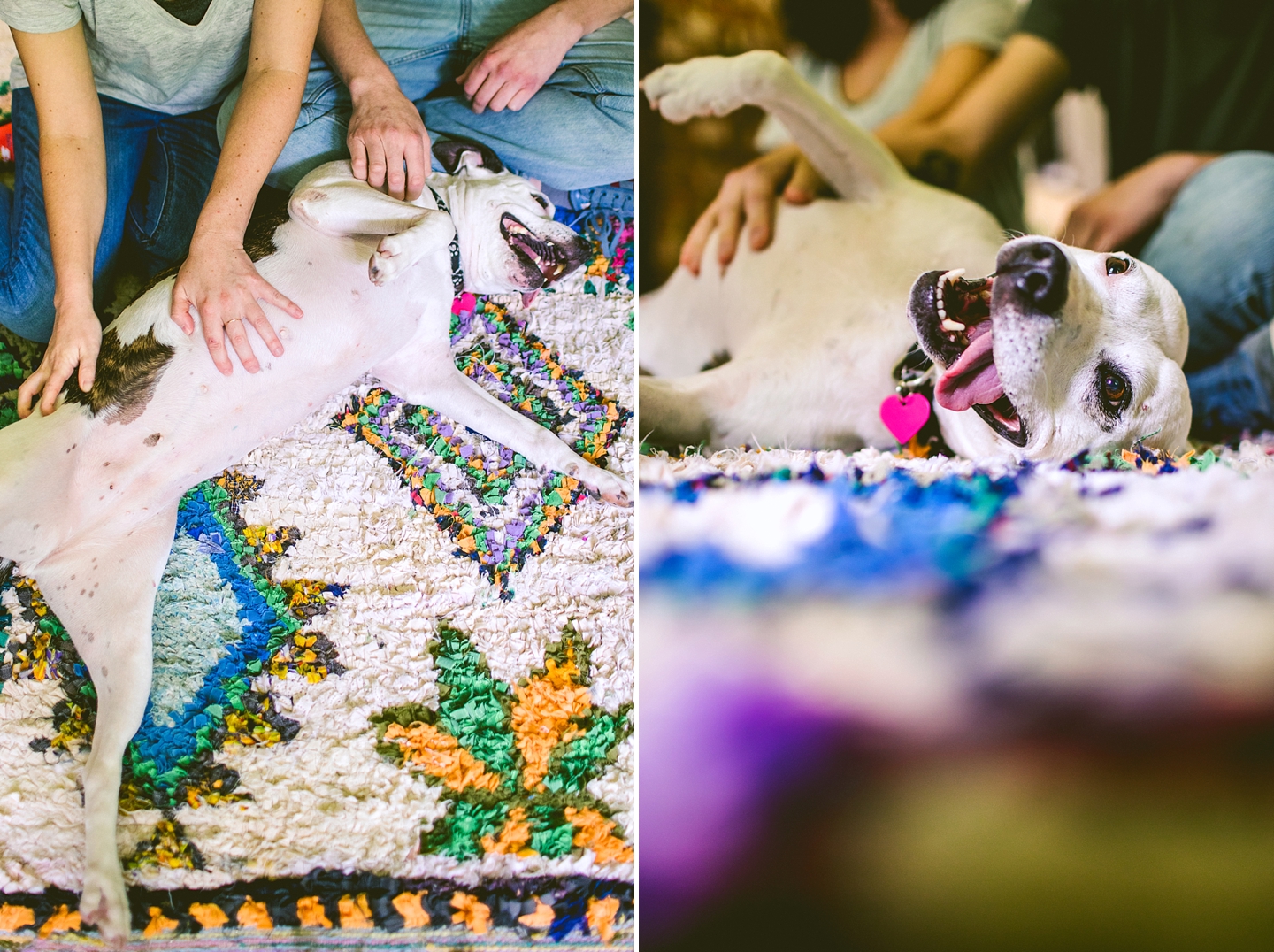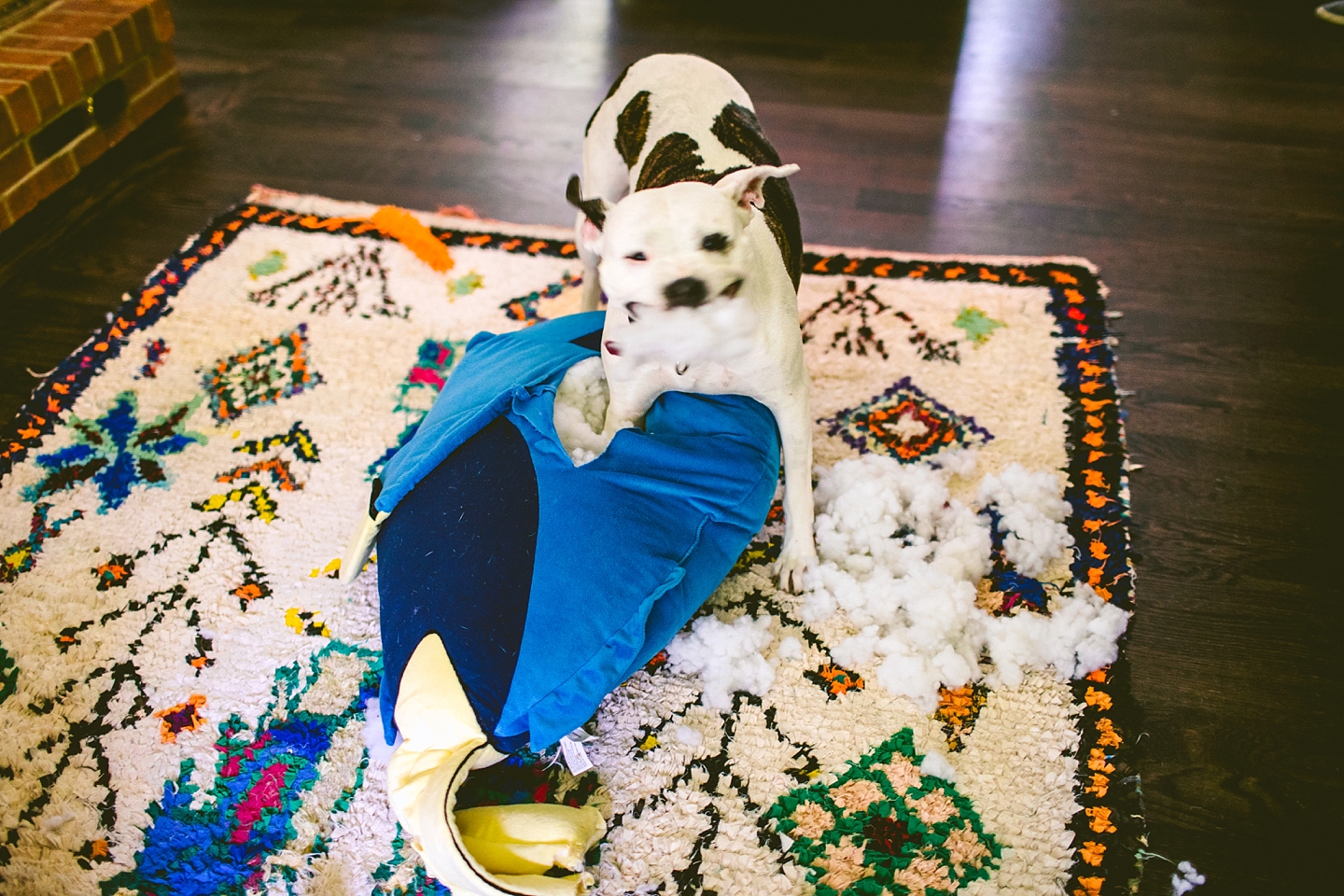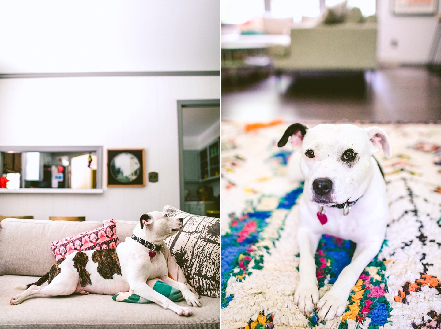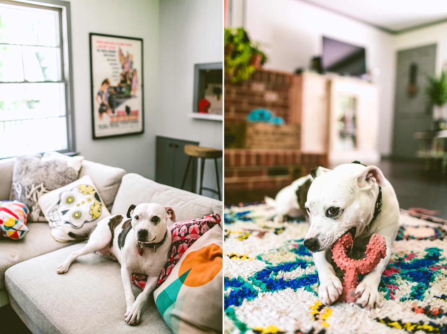 In addition to loving her couch and not wanting to ever get off the couch, she also enjoys walking outside to simply stand in the lawn (heavy coaxing was needed to play because Wilma is exceedingly lazy in the most wonderful way), laying on her back for belly rubs, and licking Jessica and Dustin (who have the most amazing old Volkswagen but also the most amazing kitchen appliances I’ve ever seen [not pictured here] in their amazing house). But one of the best things that happened was Jessica telling me she bought Wilma a pink dinosaur to destroy, and then Jessica proceeded to drag out this HUGE ass dinosaur from a spare room… the size of which is the large and giant type which your boyfriend would win for you at a carnival and you wouldn’t know what to do with it because you really can’t be expected to carry that around all night. I was expecting, you know, a dog toy. But apparently, in another highly amusing trait she has, Wilma enjoys opening a hole in each of these stuffed creatures and ripping out the stuffing like she’s disemboweling prey in the Serengeti. I can’t explain Wilma, but I do love her. And I love the love her people exhibit for her. So happy to take these pictures for Jessica+Dustin of their lovely little girl!