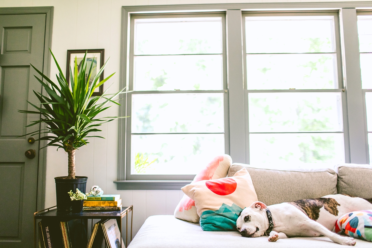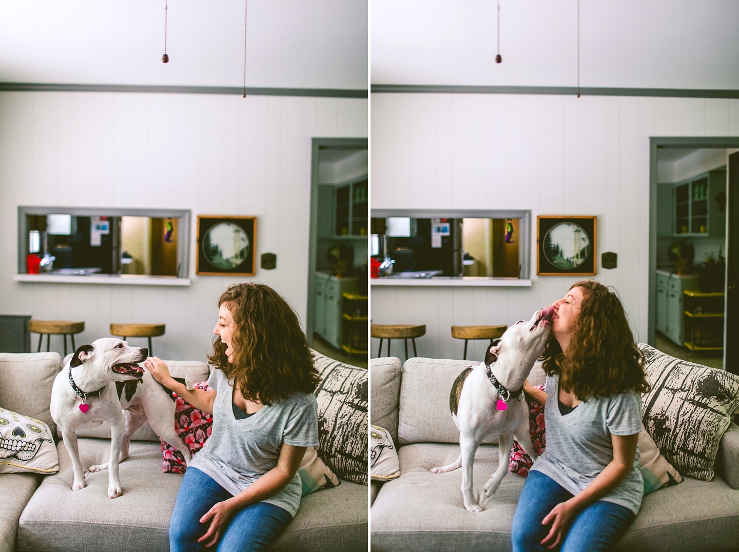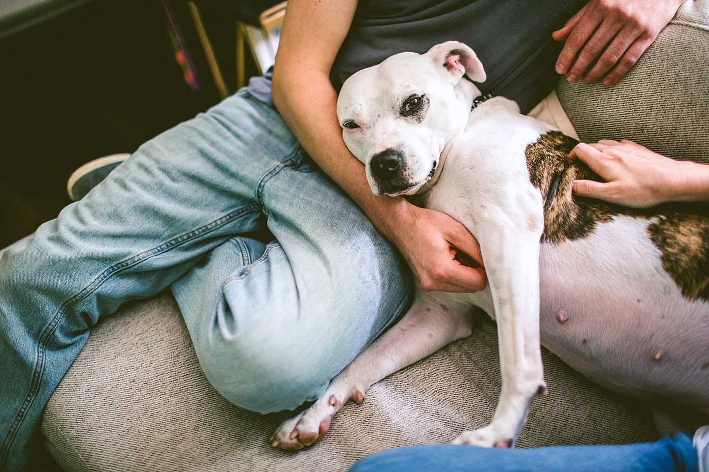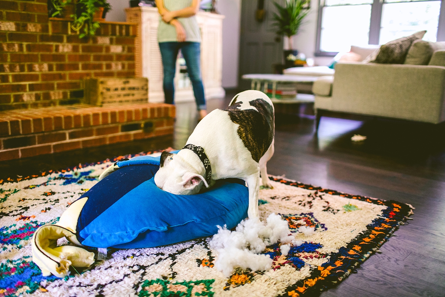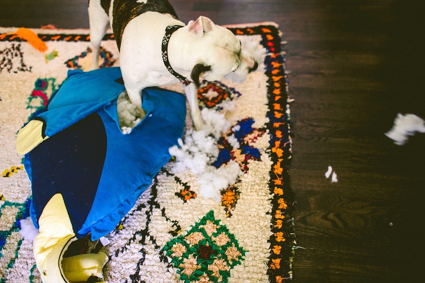 In addition to loving her couch and not wanting to ever get off the couch, she also enjoys walking outside to simply stand in the lawn (heavy coaxing was needed to play because Wilma is exceedingly lazy in the most wonderful way), laying on her back for belly rubs, and licking Jessica and Dustin (who have the most amazing old Volkswagen but also the most amazing kitchen appliances I’ve ever seen [not pictured here] in their amazing house). But one of the best things that happened was Jessica telling me she bought Wilma a pink dinosaur to destroy, and then Jessica proceeded to drag out this HUGE ass dinosaur from a spare room… the size of which is the large and giant type which your boyfriend would win for you at a carnival and you wouldn’t know what to do with it because you really can’t be expected to carry that around all night. I was expecting, you know, a dog toy. But apparently, in another highly amusing trait she has, Wilma enjoys opening a hole in each of these stuffed creatures and ripping out the stuffing like she’s disemboweling prey in the Serengeti. I can’t explain Wilma, but I do love her. And I love the love her people exhibit for her. So happy to take these pictures for Jessica+Dustin of their lovely little girl!