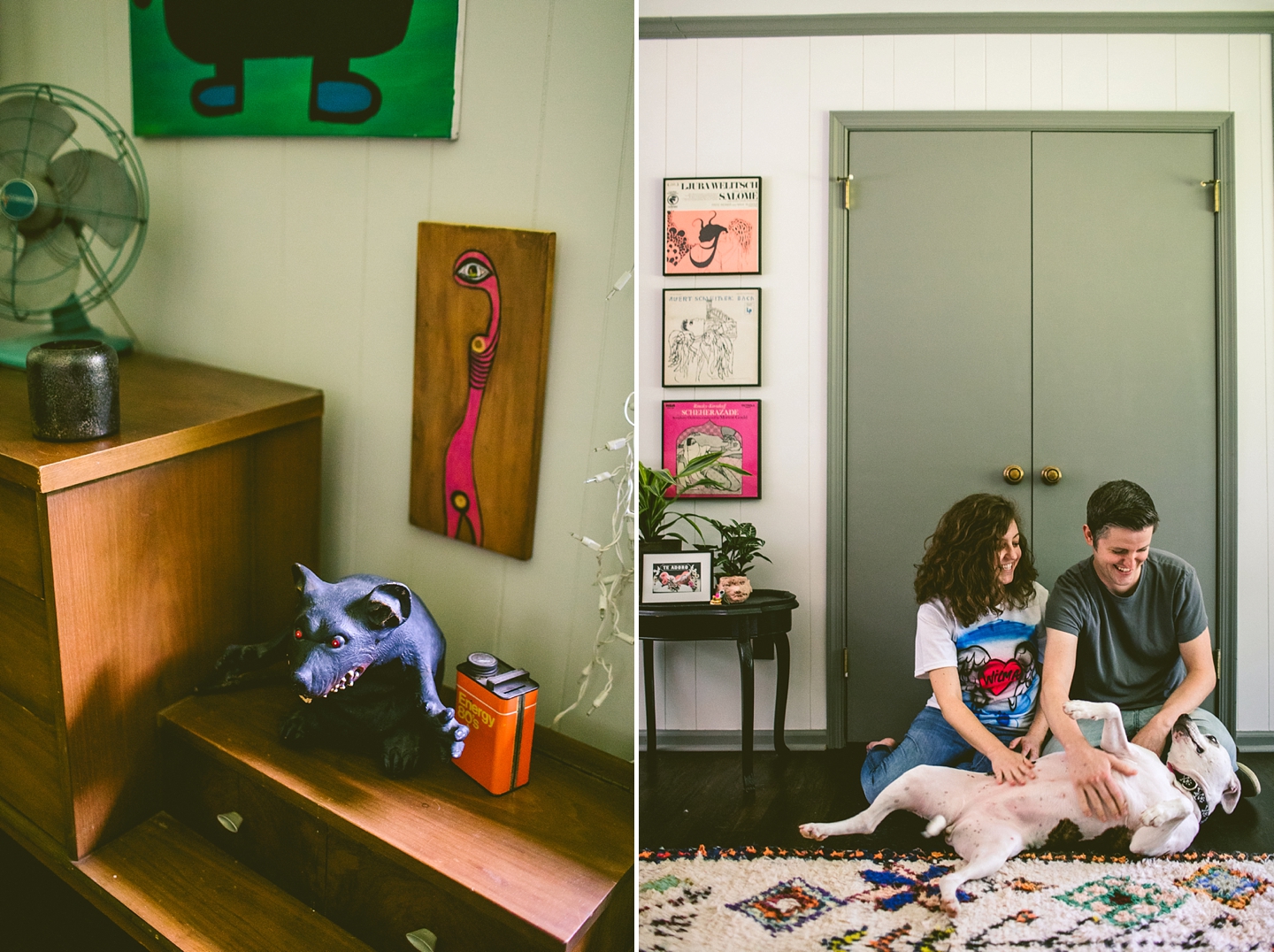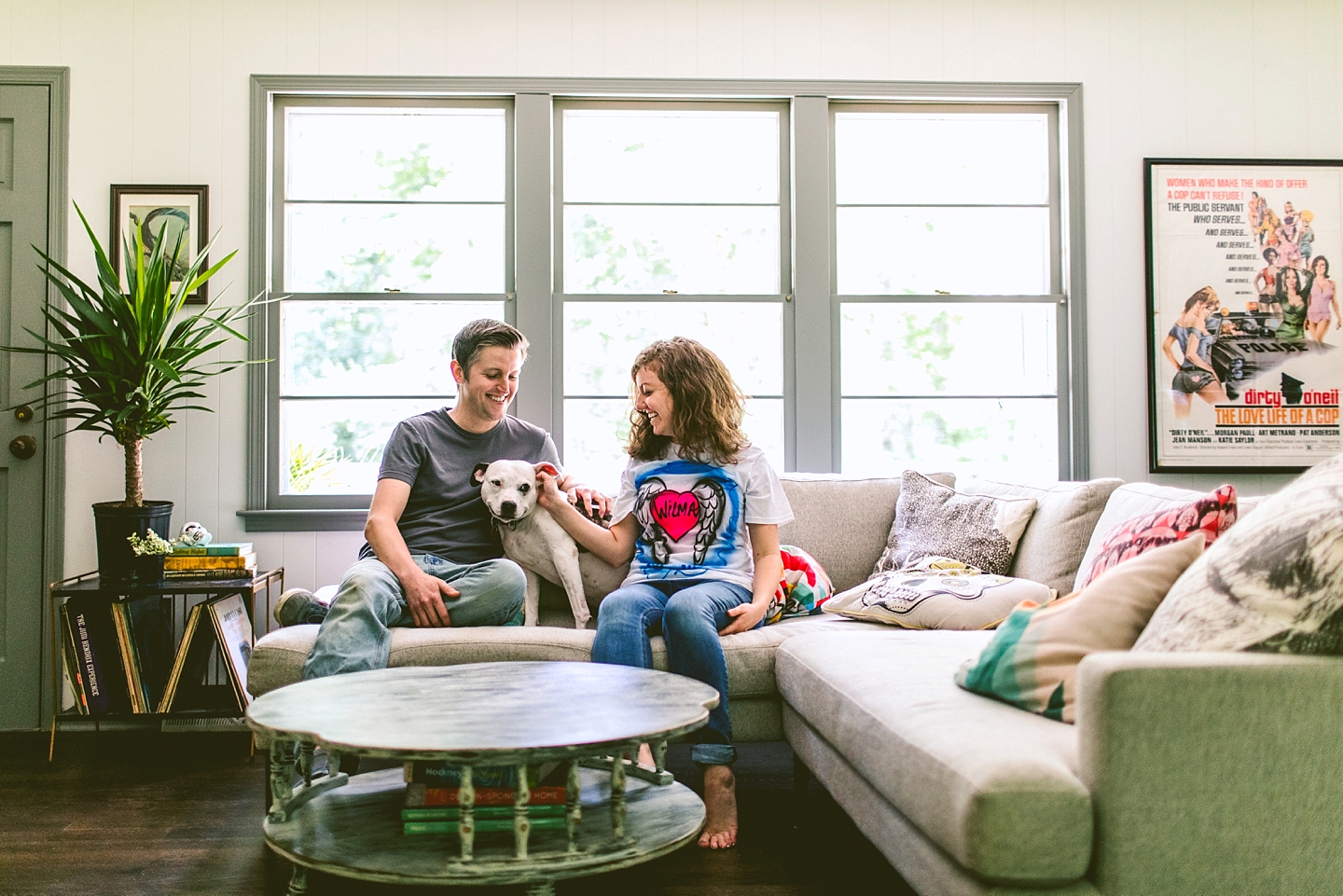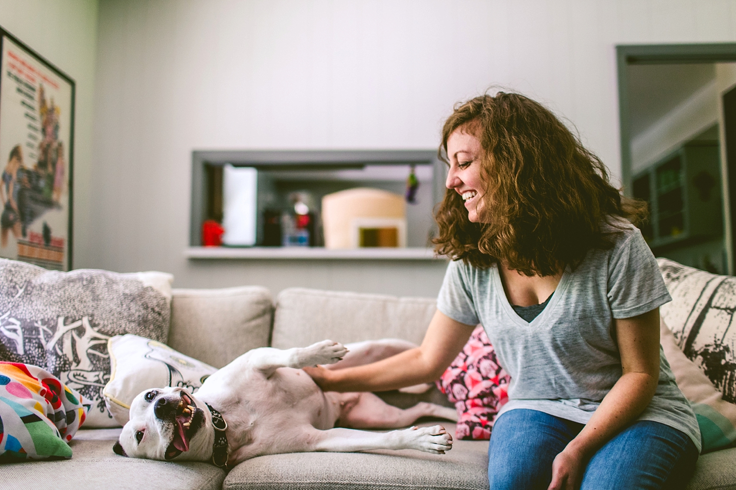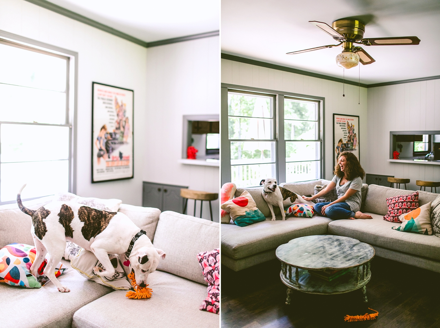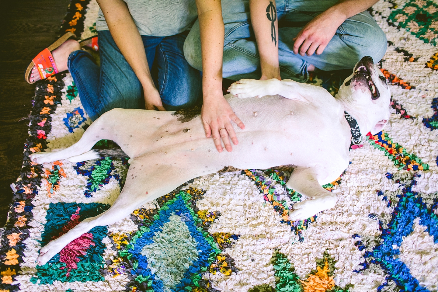 In addition to loving her couch and not wanting to ever get off the couch, she also enjoys walking outside to simply stand in the lawn (heavy coaxing was needed to play because Wilma is exceedingly lazy in the most wonderful way), laying on her back for belly rubs, and licking Jessica and Dustin (who have the most amazing old Volkswagen but also the most amazing kitchen appliances I’ve ever seen [not pictured here] in their amazing house). But one of the best things that happened was Jessica telling me she bought Wilma a pink dinosaur to destroy, and then Jessica proceeded to drag out this HUGE ass dinosaur from a spare room… the size of which is the large and giant type which your boyfriend would win for you at a carnival and you wouldn’t know what to do with it because you really can’t be expected to carry that around all night. I was expecting, you know, a dog toy. But apparently, in another highly amusing trait she has, Wilma enjoys opening a hole in each of these stuffed creatures and ripping out the stuffing like she’s disemboweling prey in the Serengeti. I can’t explain Wilma, but I do love her. And I love the love her people exhibit for her. So happy to take these pictures for Jessica+Dustin of their lovely little girl!