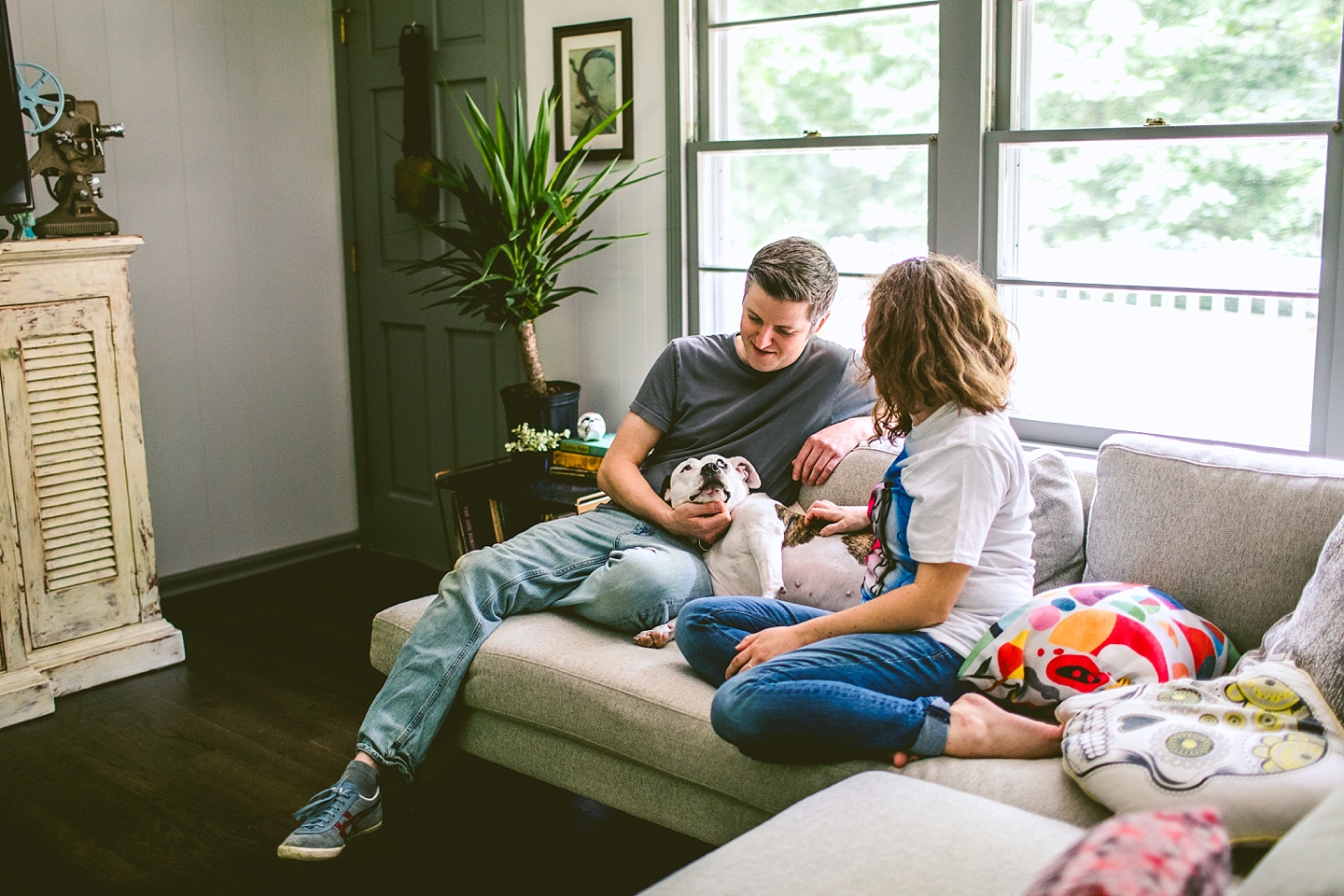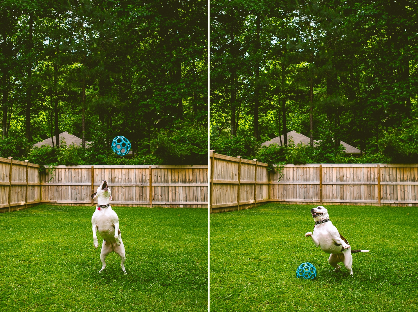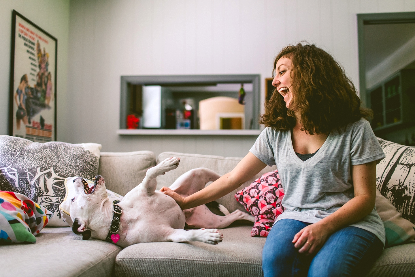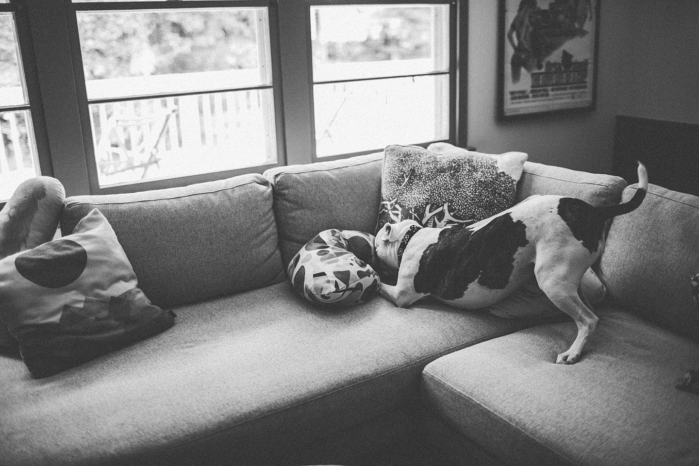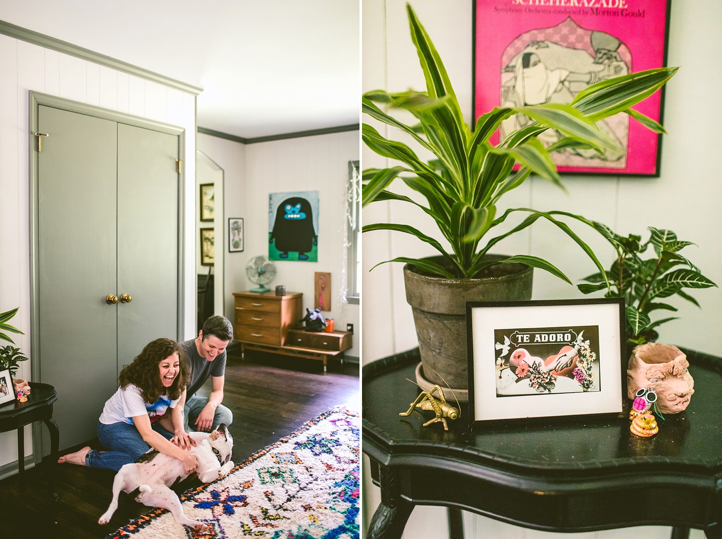 In addition to loving her couch and not wanting to ever get off the couch, she also enjoys walking outside to simply stand in the lawn (heavy coaxing was needed to play because Wilma is exceedingly lazy in the most wonderful way), laying on her back for belly rubs, and licking Jessica and Dustin (who have the most amazing old Volkswagen but also the most amazing kitchen appliances I’ve ever seen [not pictured here] in their amazing house). But one of the best things that happened was Jessica telling me she bought Wilma a pink dinosaur to destroy, and then Jessica proceeded to drag out this HUGE ass dinosaur from a spare room… the size of which is the large and giant type which your boyfriend would win for you at a carnival and you wouldn’t know what to do with it because you really can’t be expected to carry that around all night. I was expecting, you know, a dog toy. But apparently, in another highly amusing trait she has, Wilma enjoys opening a hole in each of these stuffed creatures and ripping out the stuffing like she’s disemboweling prey in the Serengeti. I can’t explain Wilma, but I do love her. And I love the love her people exhibit for her. So happy to take these pictures for Jessica+Dustin of their lovely little girl!