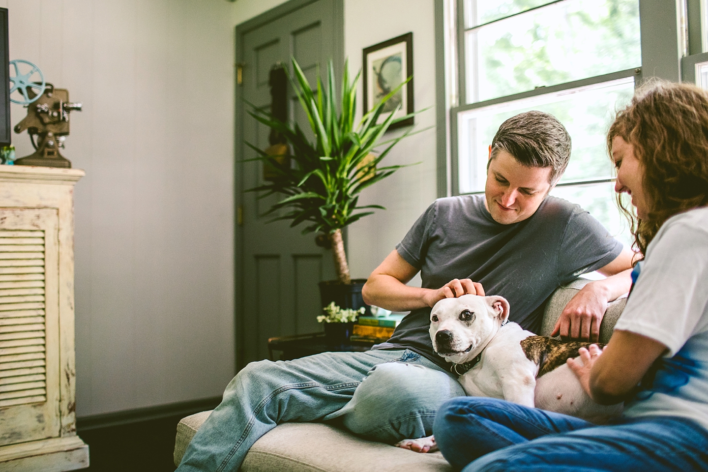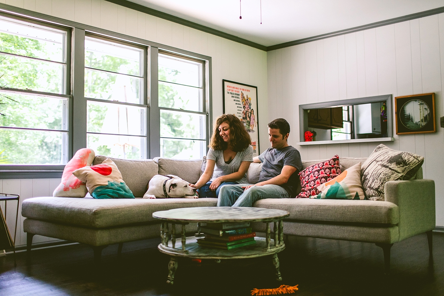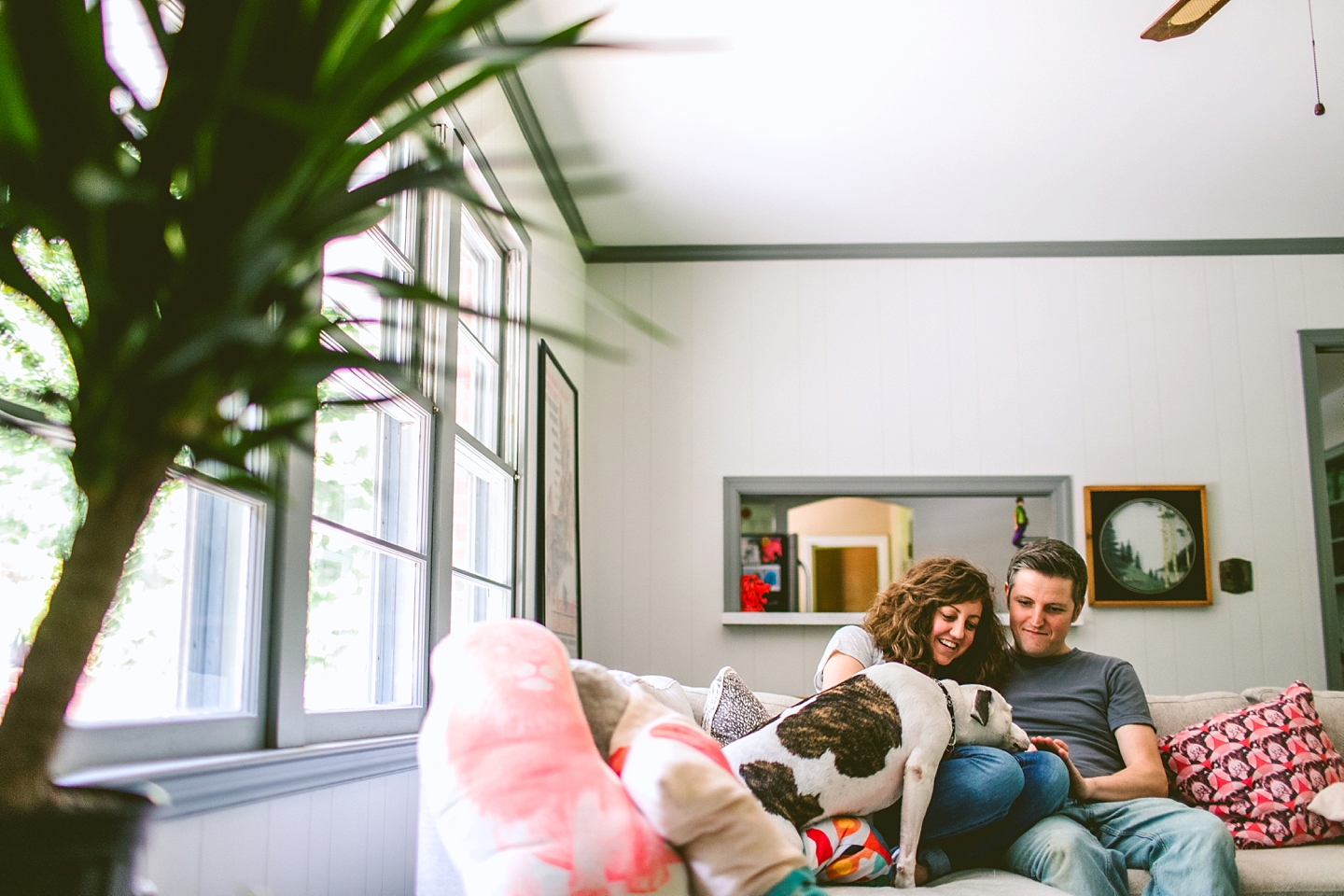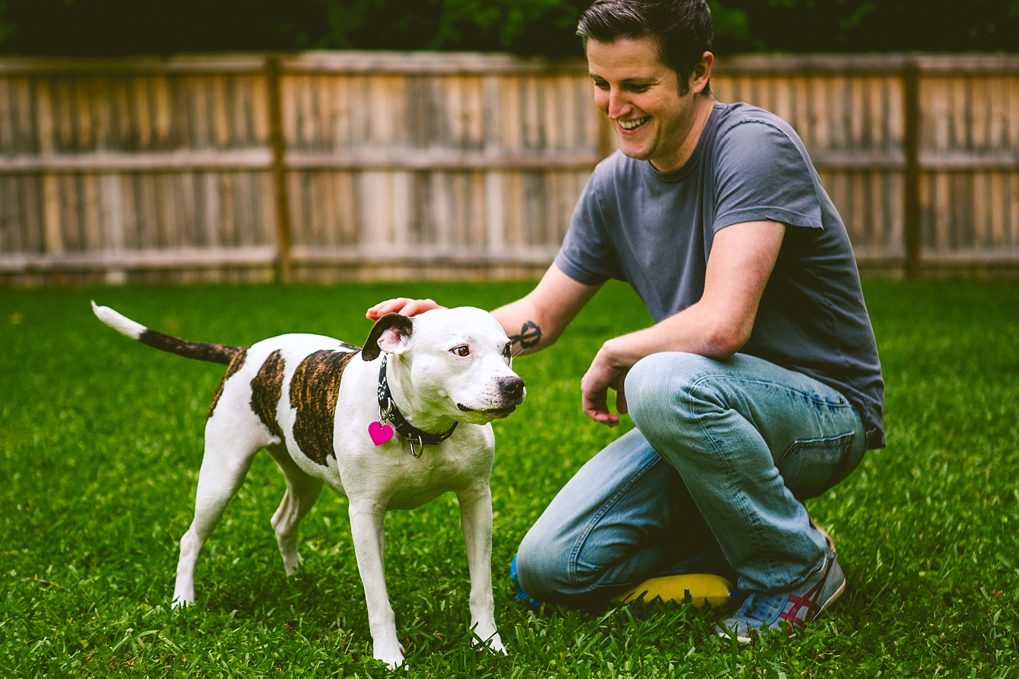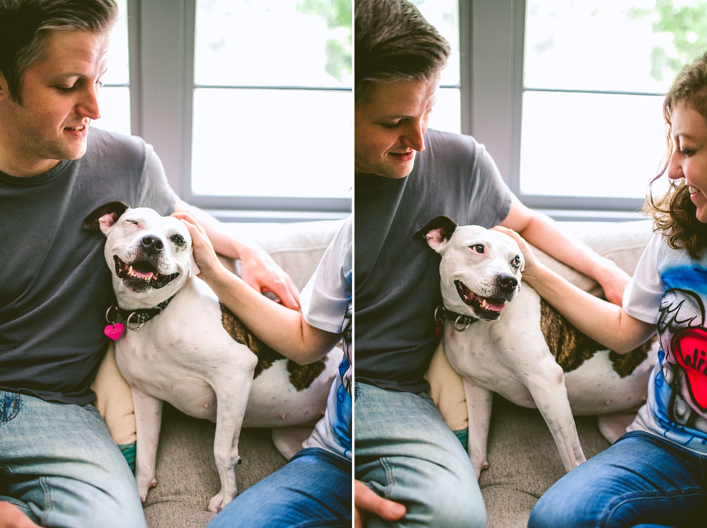 It’s been 2.5 years since Christie+Noel got married and they decided to do some anniversary photos! We think anniversary photos are great because they’re all about documenting you without the pressure of OMG A WEDDING or OMG MY MAKEUP or OMG SAVE THE DATES and generally everyone is significantly more chill. Pretty sure Christie and Noel would’ve been chill anyway, but no one is anywhere near as chill as Matlock. Matlock is their adopted lab-mix dog. He’s huge (possibly mixed with some Great Dane? Mastiff? Godzilla Dog?)His bark sounds like he’s the size of the Stay Puft Marshmallow Man. I’m pretty sure I could ride him around like a small horse and my feet would only have a 50/50 shot of touching the ground. When you actually meet him, though, he is the sweetest dog in the worrrrld and you can tell, if he had opposable thumbs and could also negotiate on your behalf, that he’d do anything for you. Matlock enjoys belly rubs, being incredibly clingy to his parents, and hiding his tennis ball underneath the house where you cannot take it from him, ever ever.