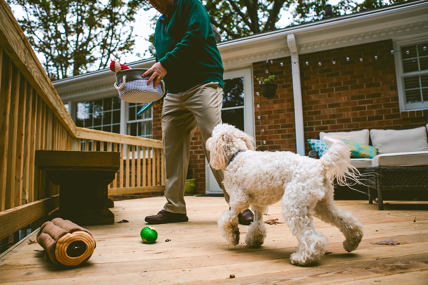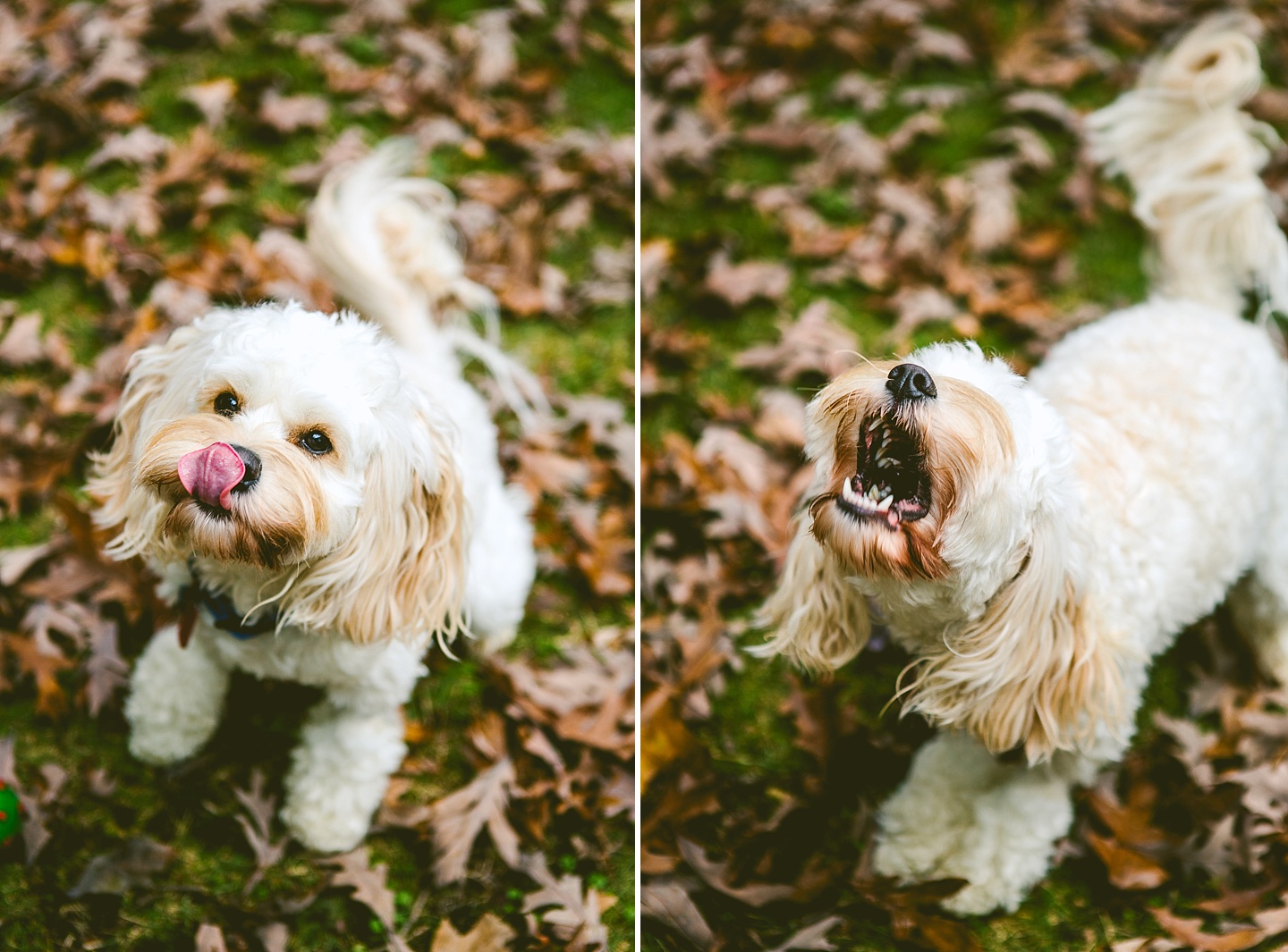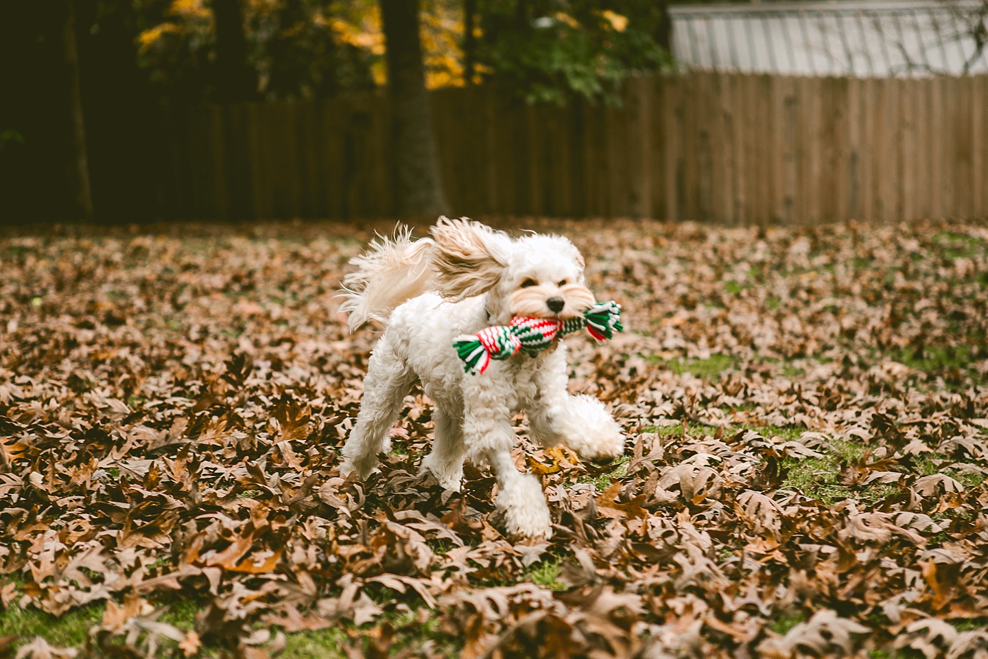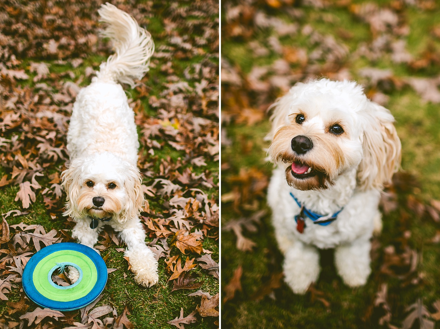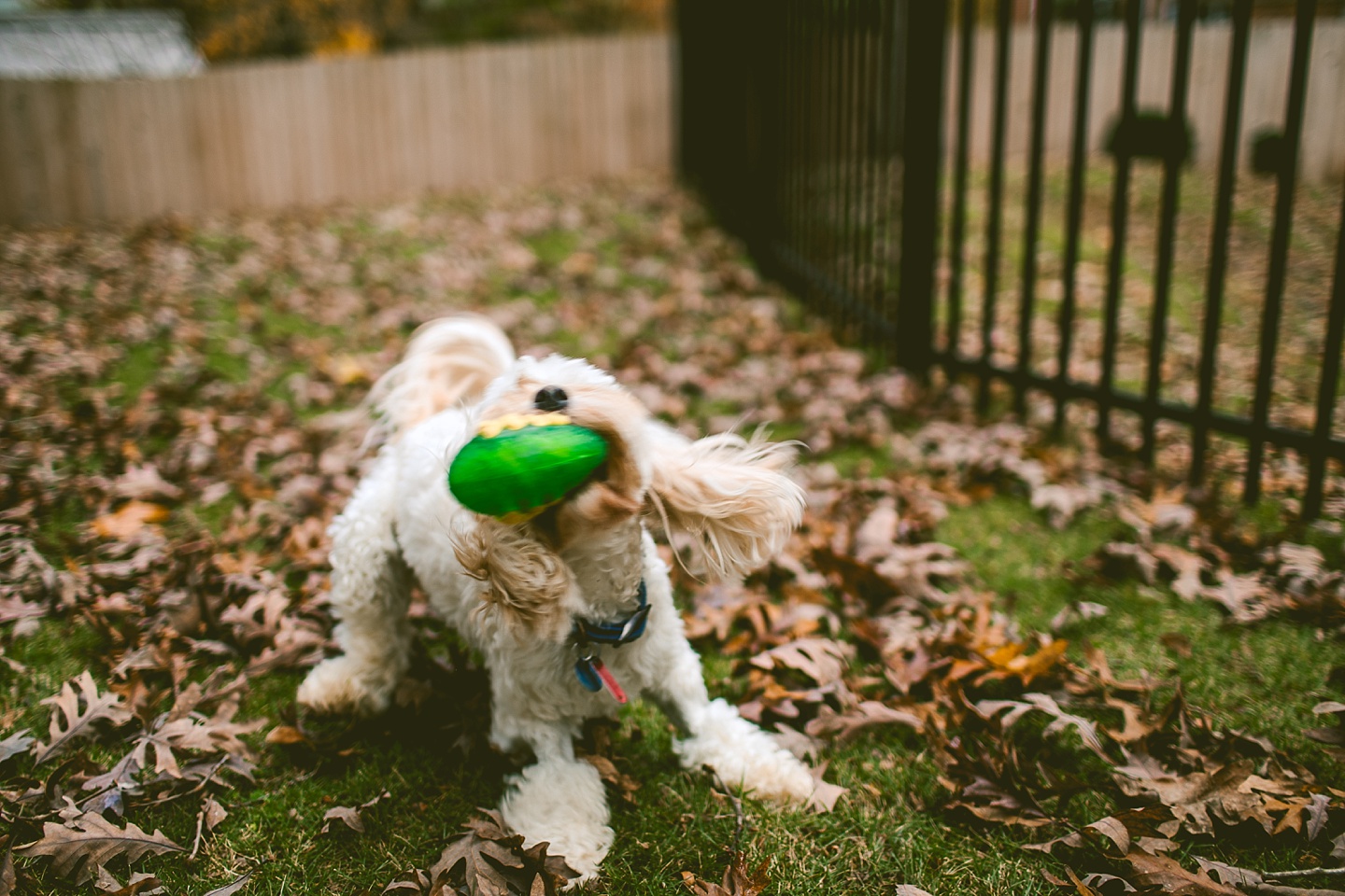 We have had a truly amazing amount of adorable doggos lately, so when we heard that we were going to be photographing little Finn, a Cockapoo Extraordinaire, we were sure that he’d be pretty great. And he was! And what makes Finn so great, you might ask? Well, Finn has a wide variety of adorable quirks, mostly involving the fact that he loves to chase toys but hasn’t yet mastered the concept of bringing them back to you, so rather he exchanges one toy for another. All games must involve multiple toys. You go out in the yard and throw something, and he runs at sound-barrier speed to go get it, and then chooses whether or not it’s worth dropping his current toy (which he brought over with him in his mouth) for this one that you just threw. His favorite is a little pink tennis ball and a frisbee, which he carries in such a way where it adorably gets stuck a bit on his head. He also has a stuffed log in which plush squirrels are hidden, which is also currently a big hit.