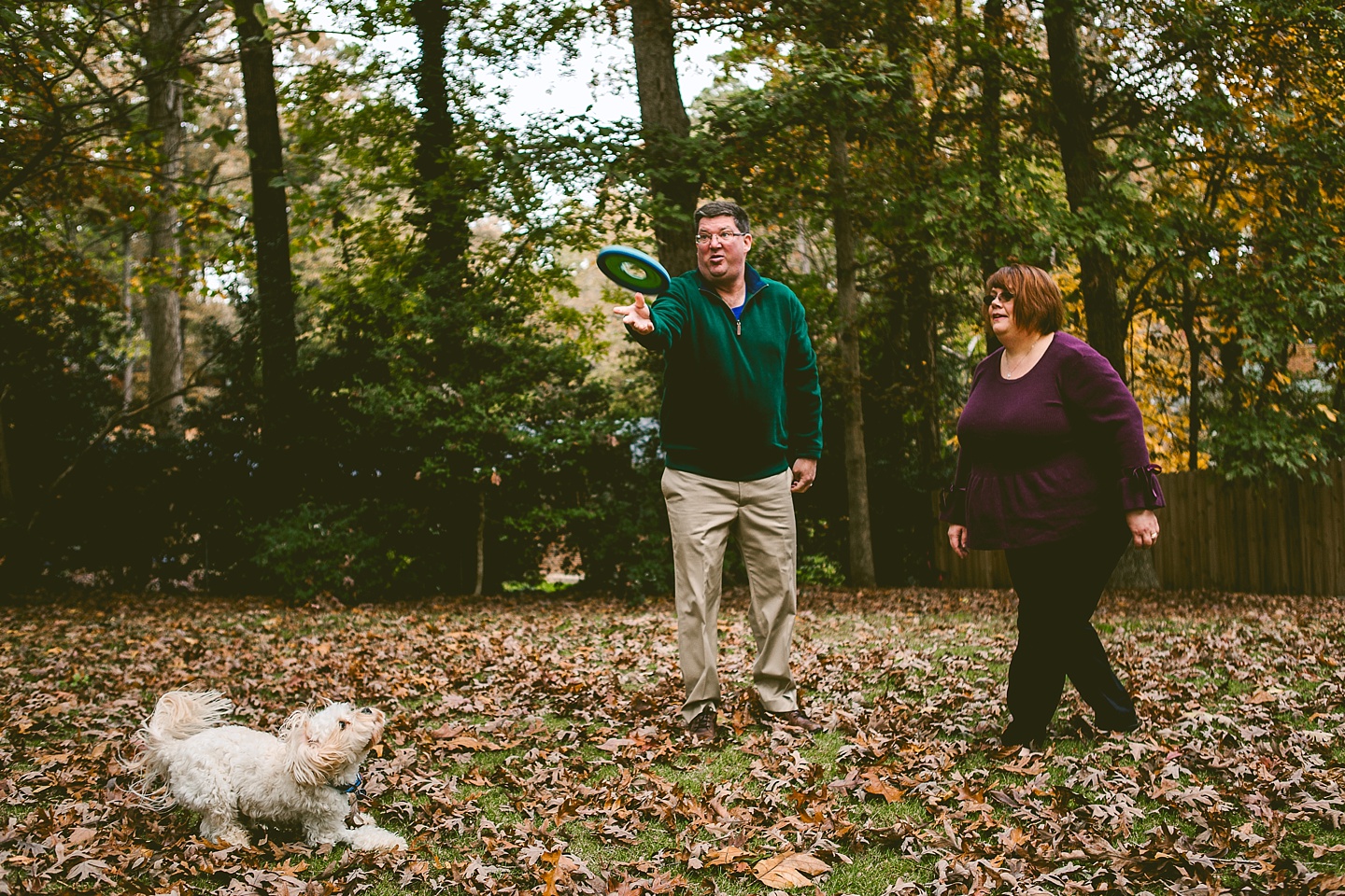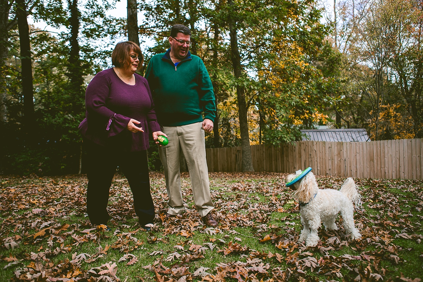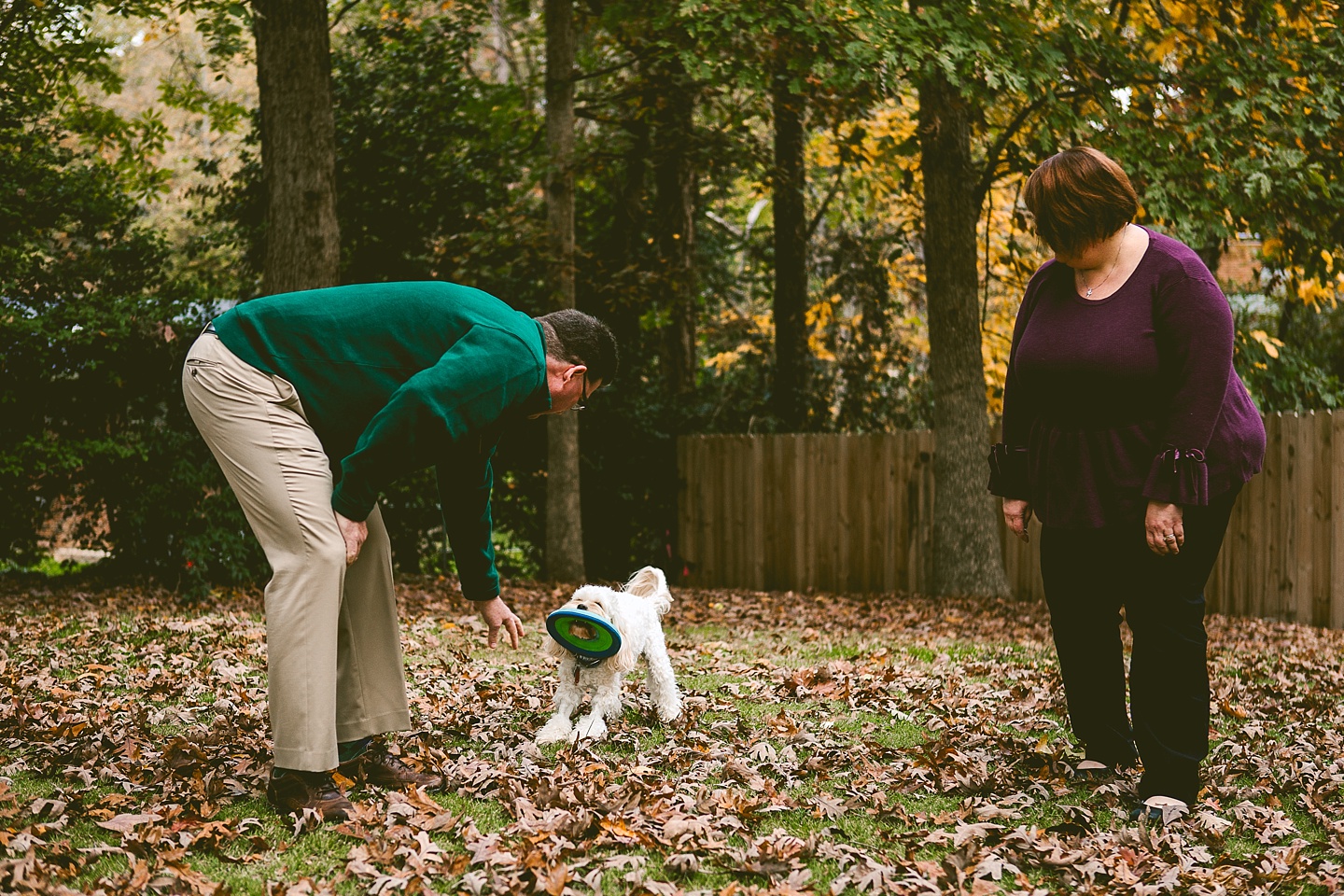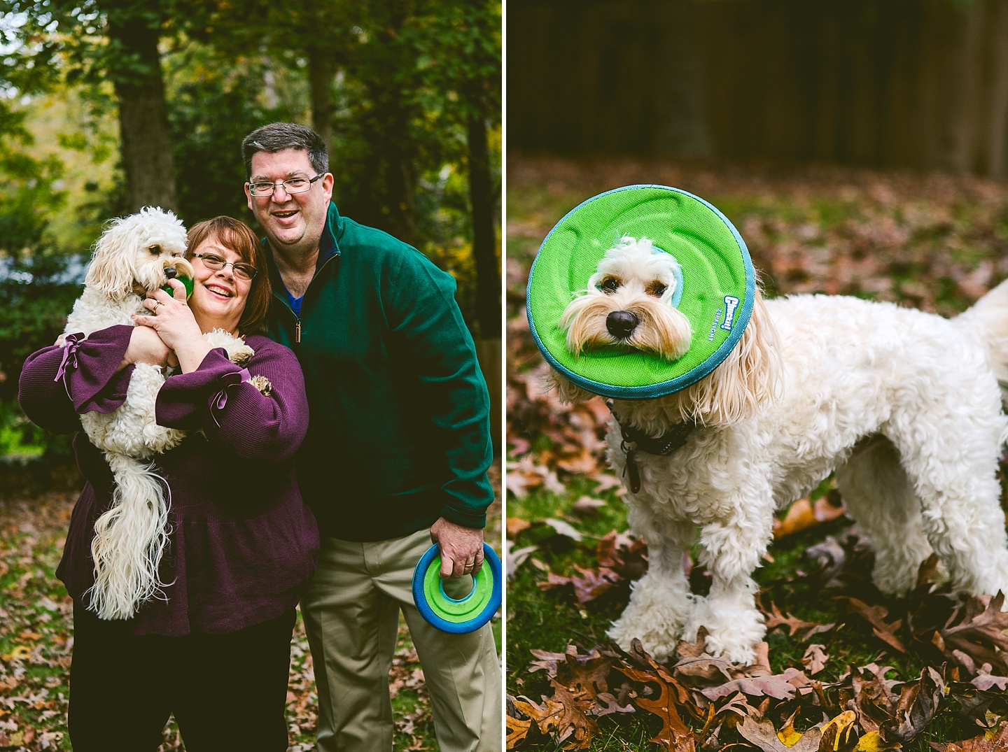 Finn’s beloved owners are Robin and Bob, who are incredibly lovely people who adore their family and wanted to have photographic evidence of this point in time in their lives with each other and Finn. They were really wonderful and easy to work with despite it being a particularly freezing morning and shooting outside. They were also capable of interacting in an endearing and beloved way with each other, regardless of the fact that zero out of the four people present were morning people. We had such a great time getting to know these guys and witnessing their dog put a frisbee on his head. We’re happy to have captured their family together having a good old time in their neighborhood!