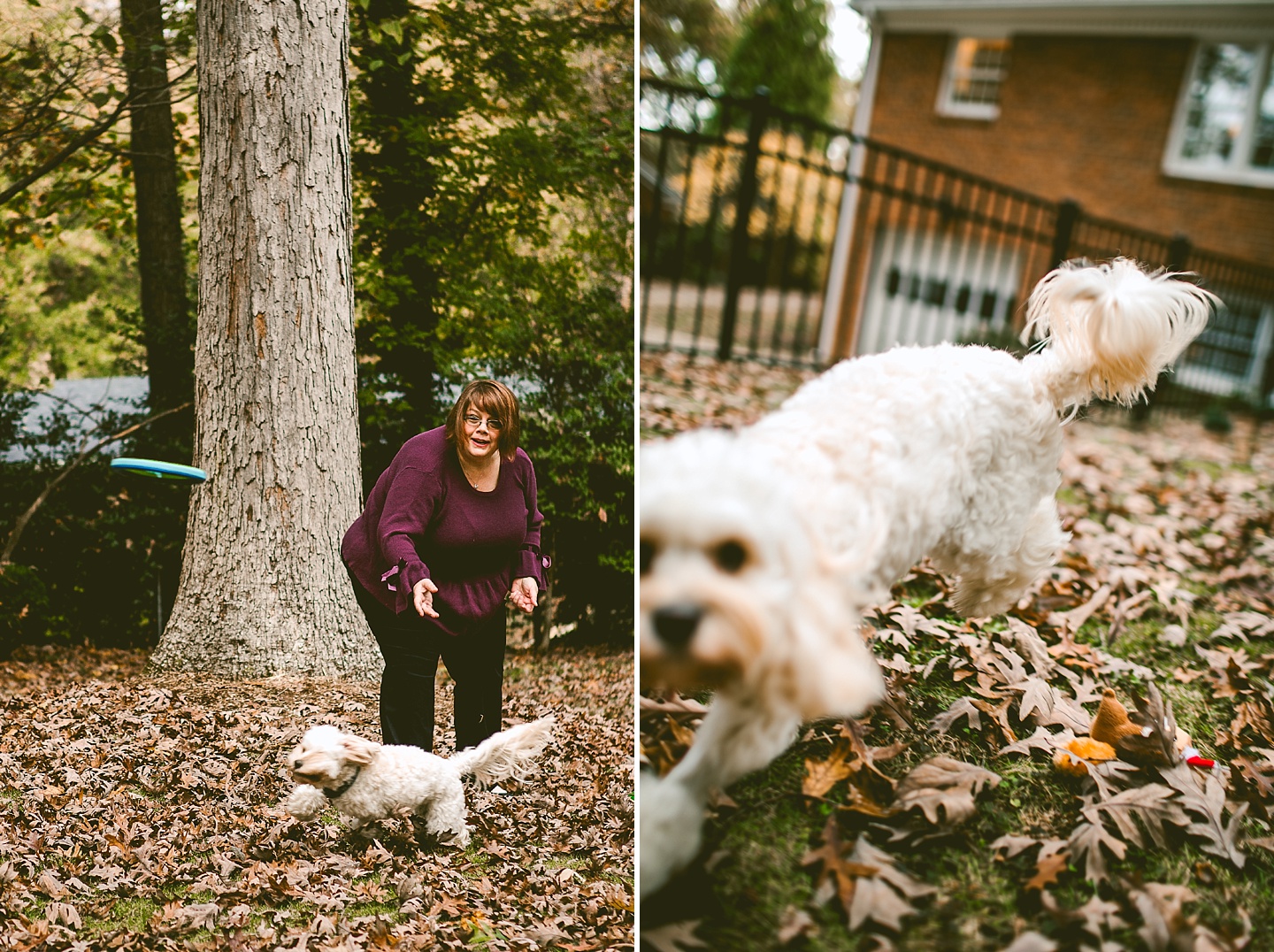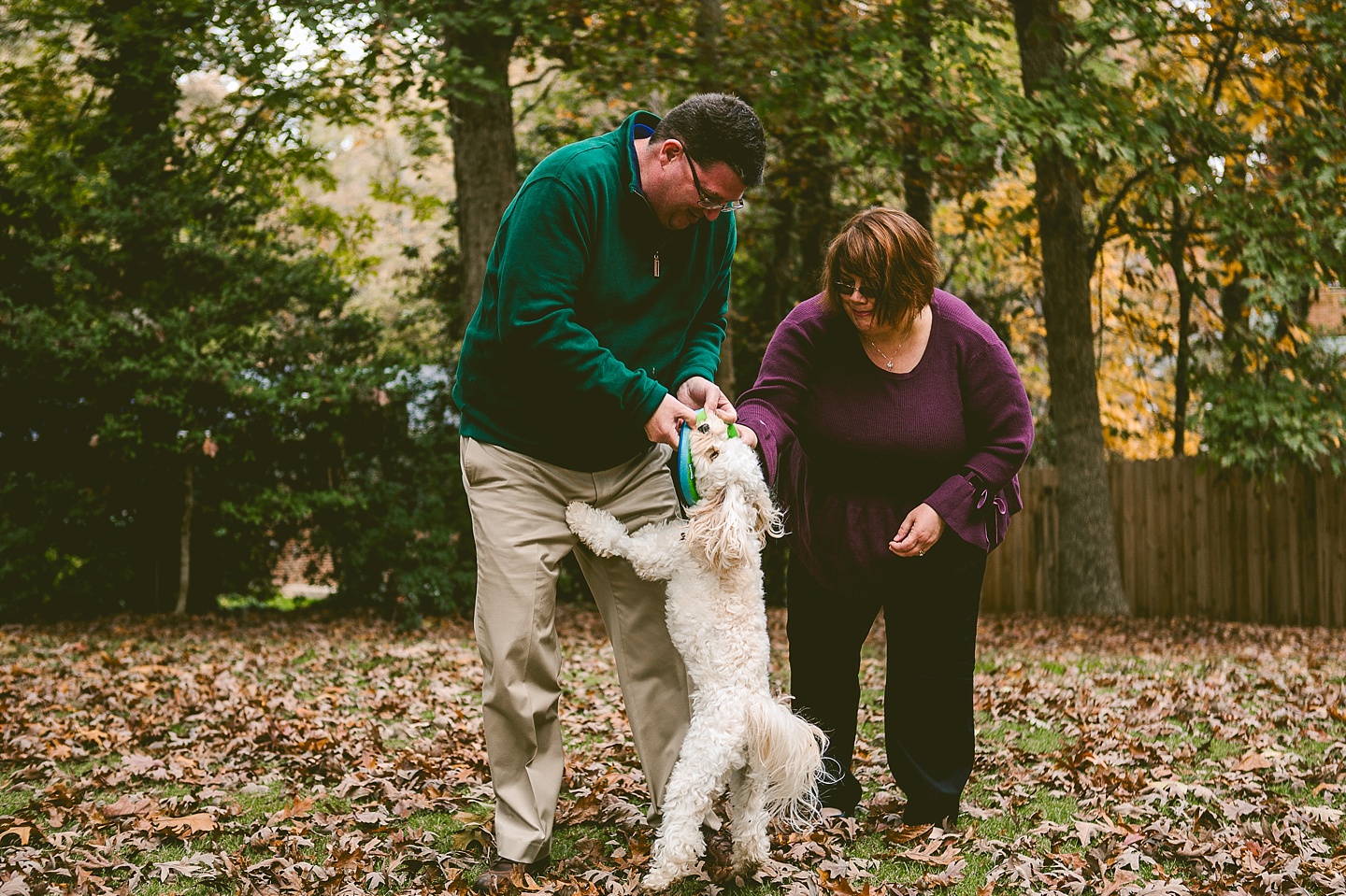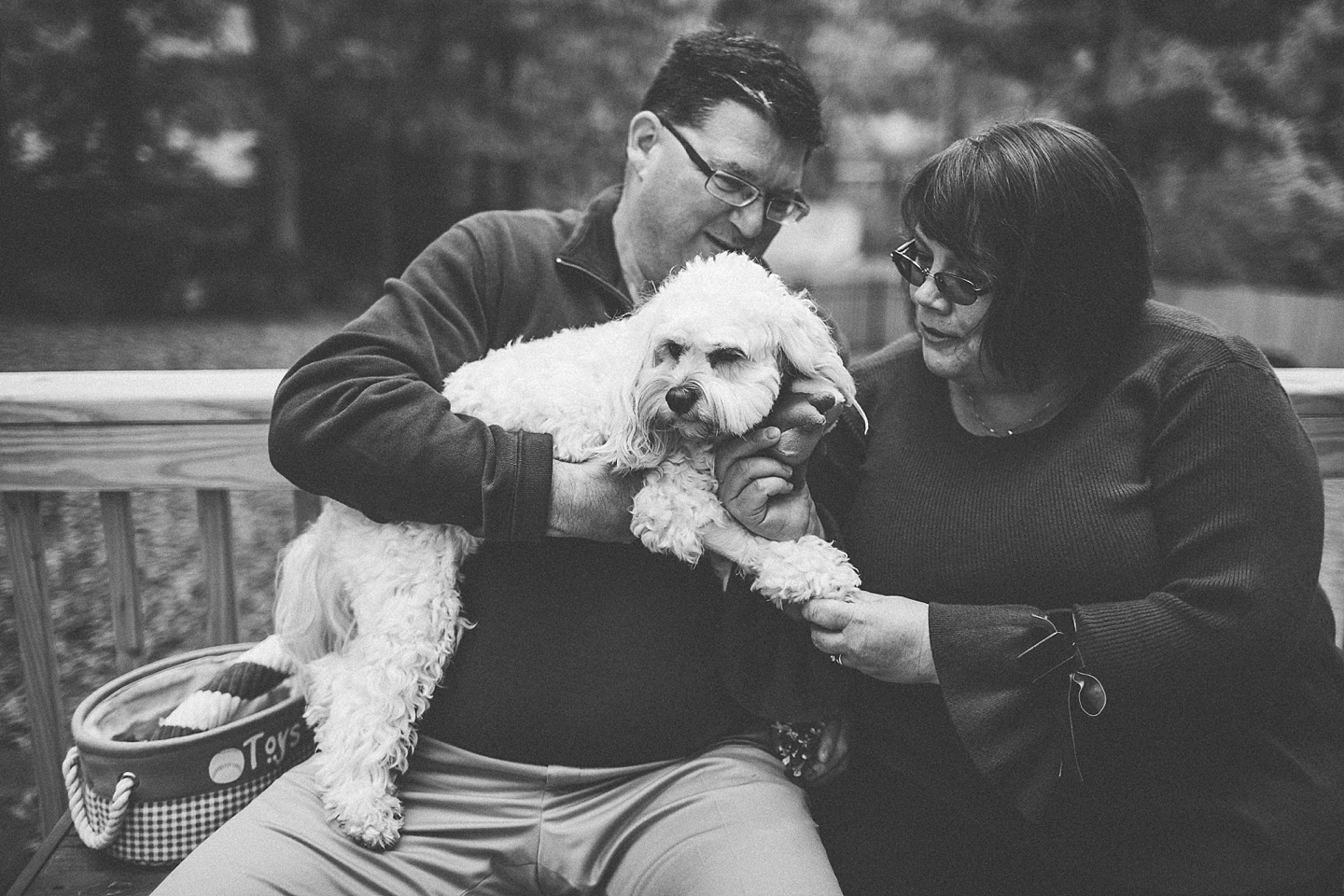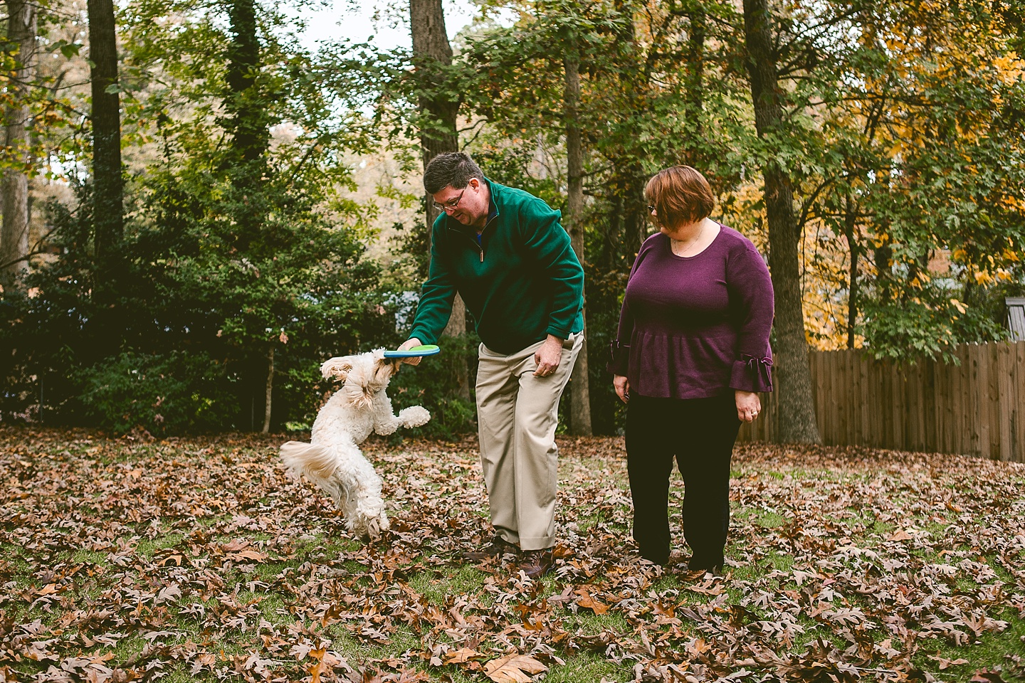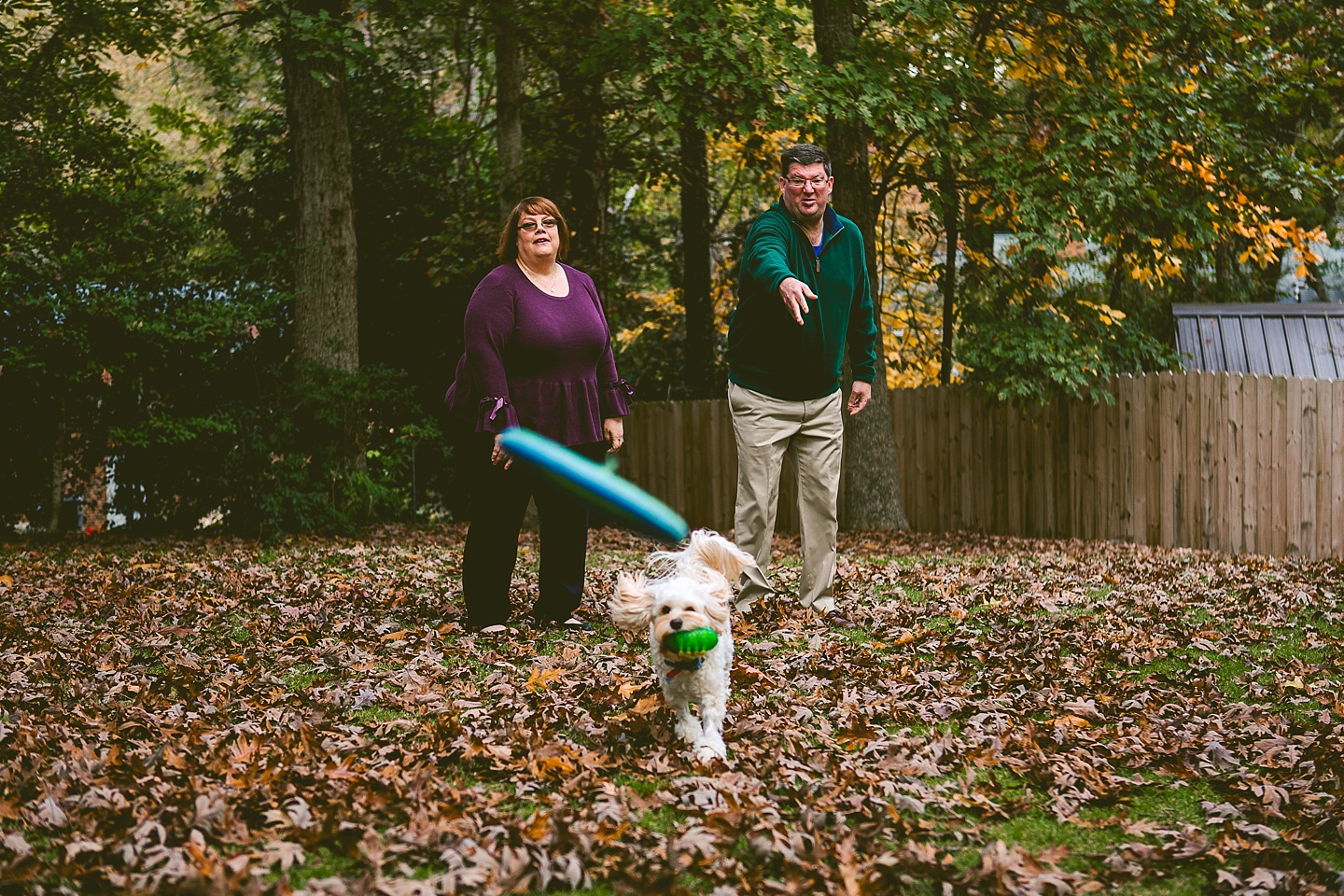 Finn’s beloved owners are Robin and Bob, who are incredibly lovely people who adore their family and wanted to have photographic evidence of this point in time in their lives with each other and Finn. They were really wonderful and easy to work with despite it being a particularly freezing morning and shooting outside. They were also capable of interacting in an endearing and beloved way with each other, regardless of the fact that zero out of the four people present were morning people. We had such a great time getting to know these guys and witnessing their dog put a frisbee on his head. We’re happy to have captured their family together having a good old time in their neighborhood!