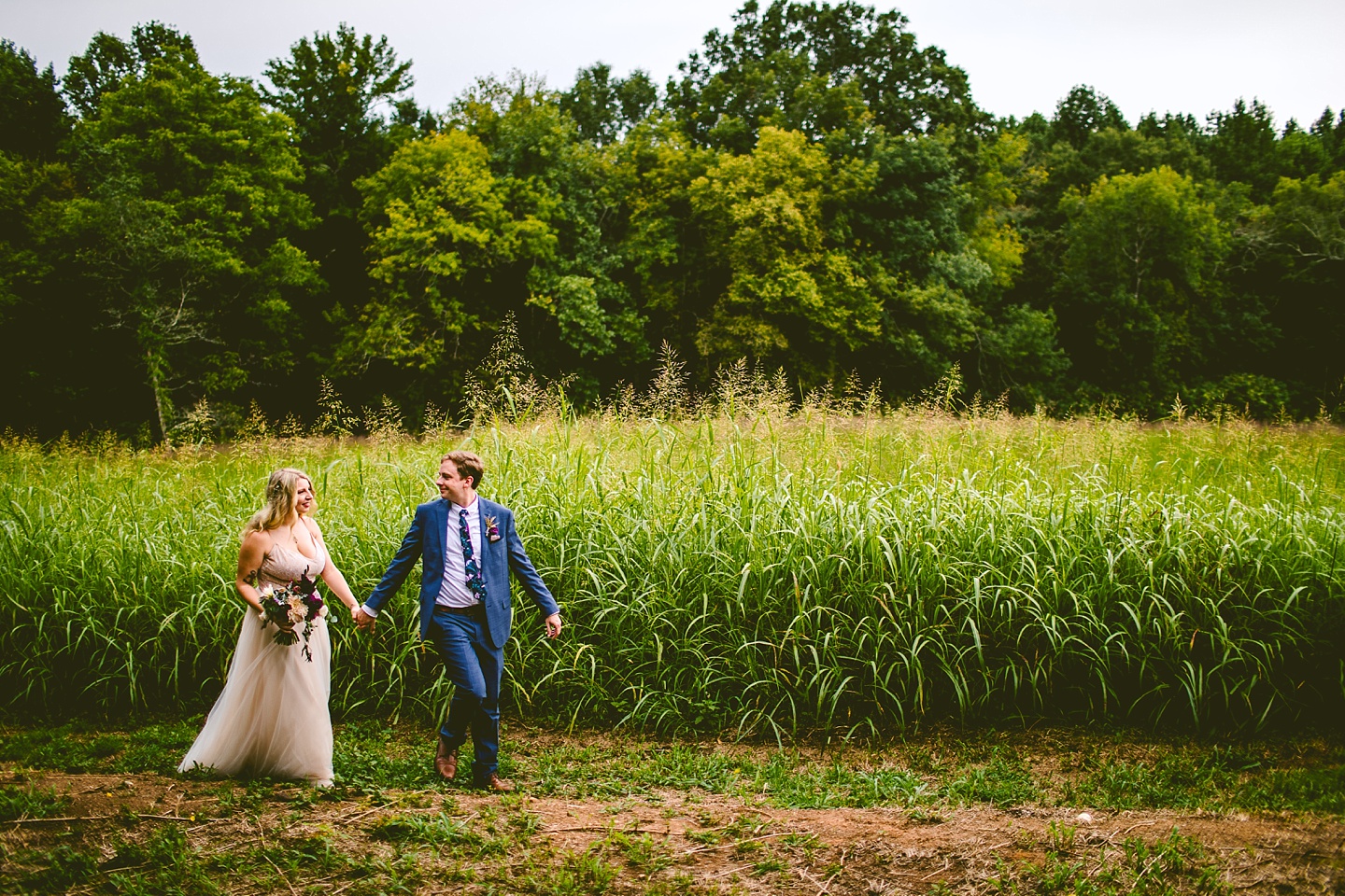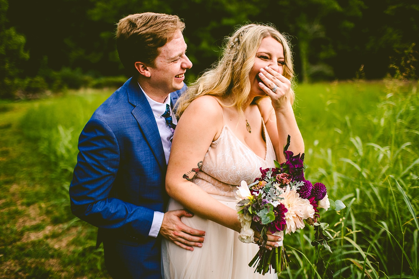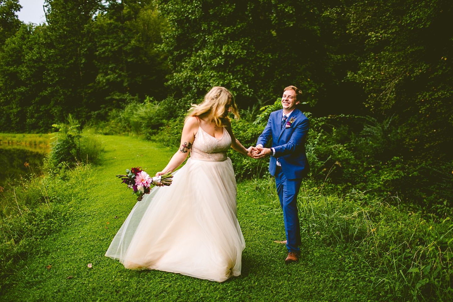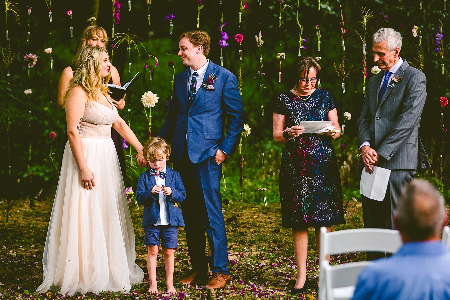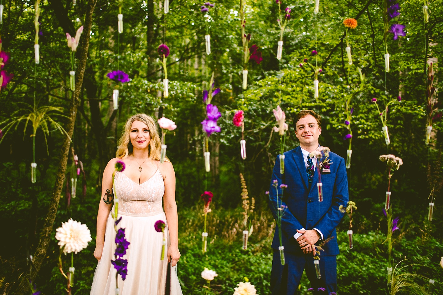 This wedding had one of the best floral altars I’ve ever seen, a vivacious bride and groom who are so supportive and caring for one another, and a band called the Harmonica Lewinskies. I daresay that I’ve never heard of a band with such a great name, and I don’t expect I’ll ever find a better one. They were formed by one of Edy and Andy’s close friends who passed away a few years ago, and they’ve since kept in touch with his bandmates who were there to support them as they got married. So not only do they have the best name, but they also have a personal connection to the couple, and everyone felt like family. Edy and Andy were married at the edge of the forest in some of the most beautiful afternoon lighting on a gorgeous day! There was thunder, but no rain, and it was all quite perfect. They danced the night away in the barn with all their family and friends. We’re so happy to have had such a loving and joyful couple as our clients. Congrats, Edy+Andy!