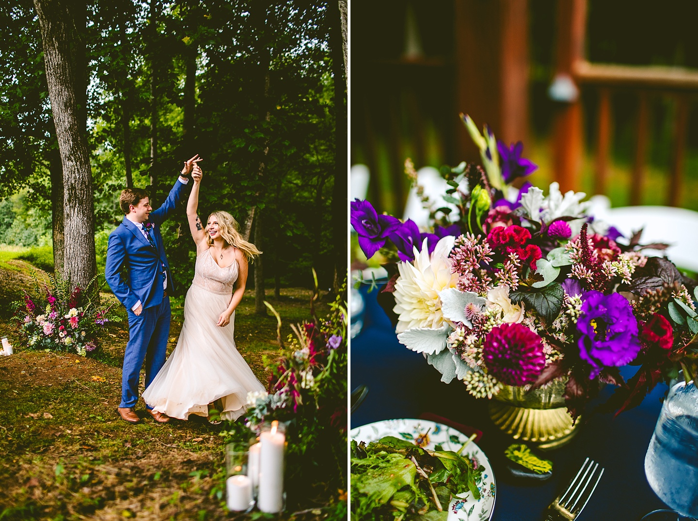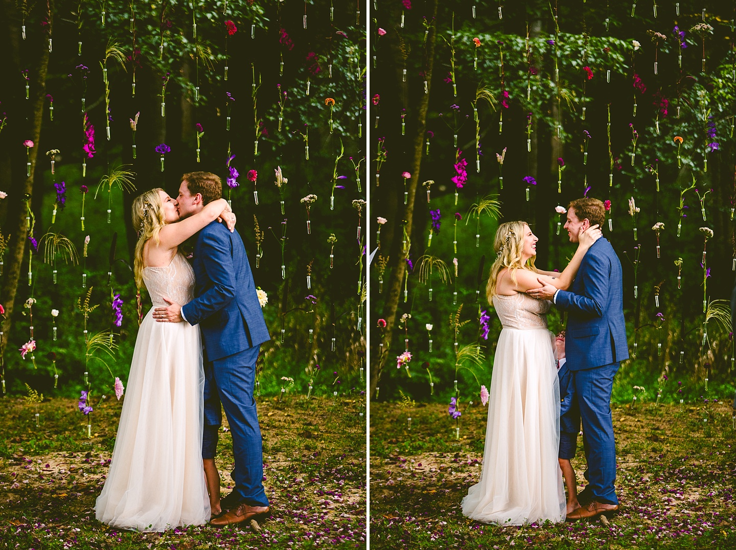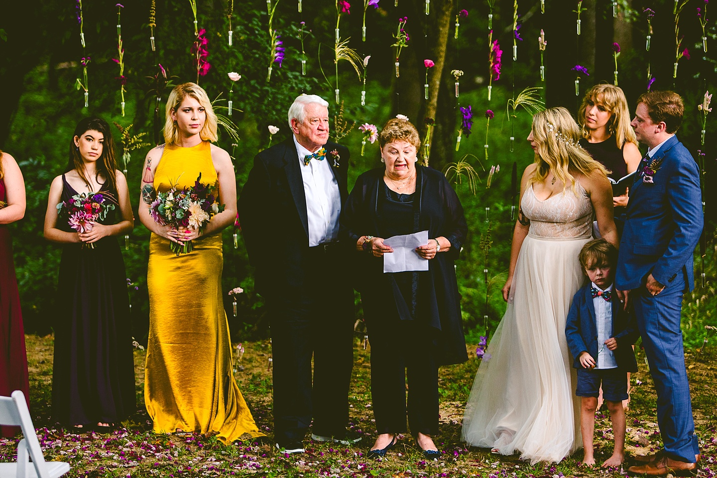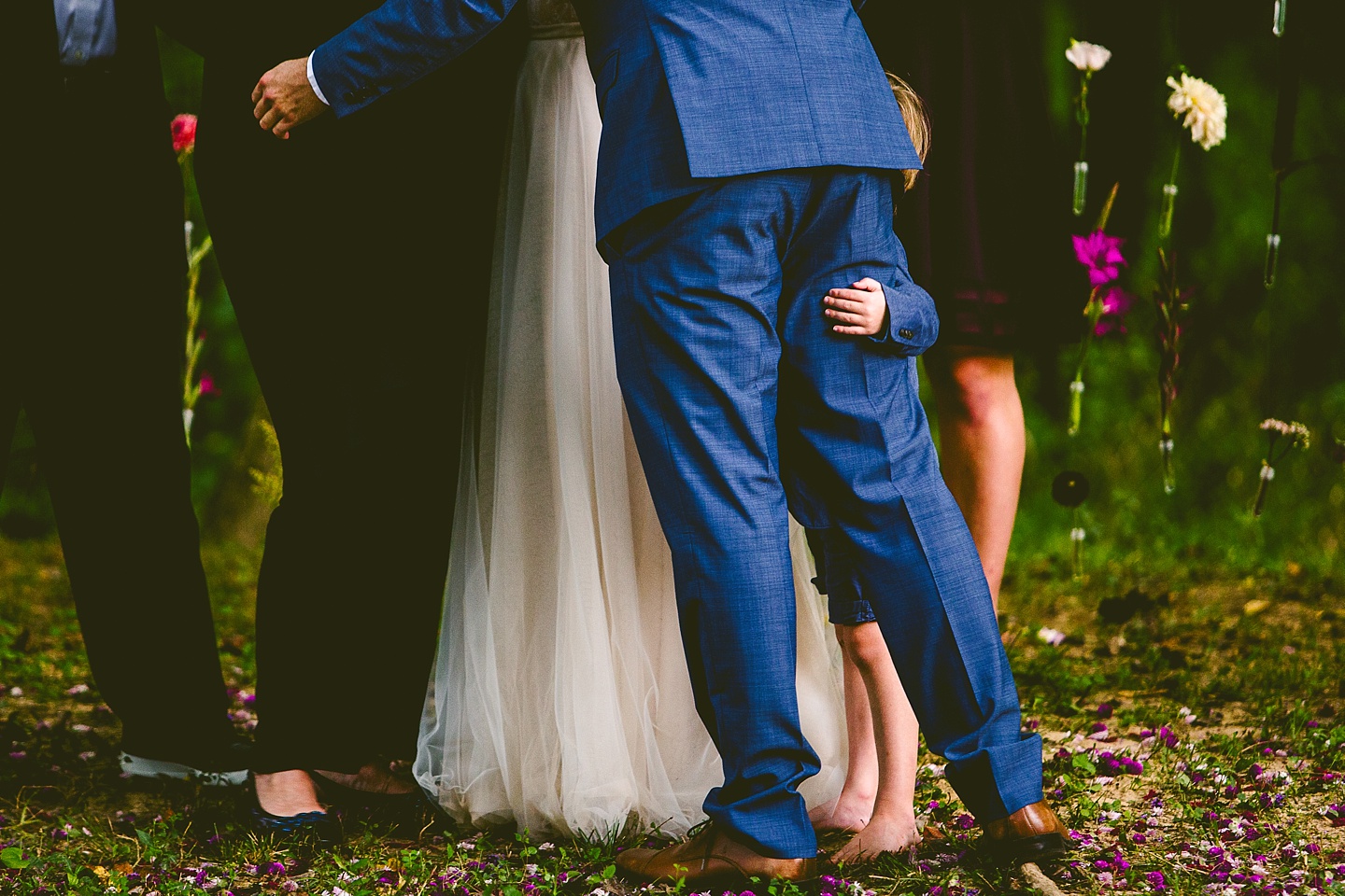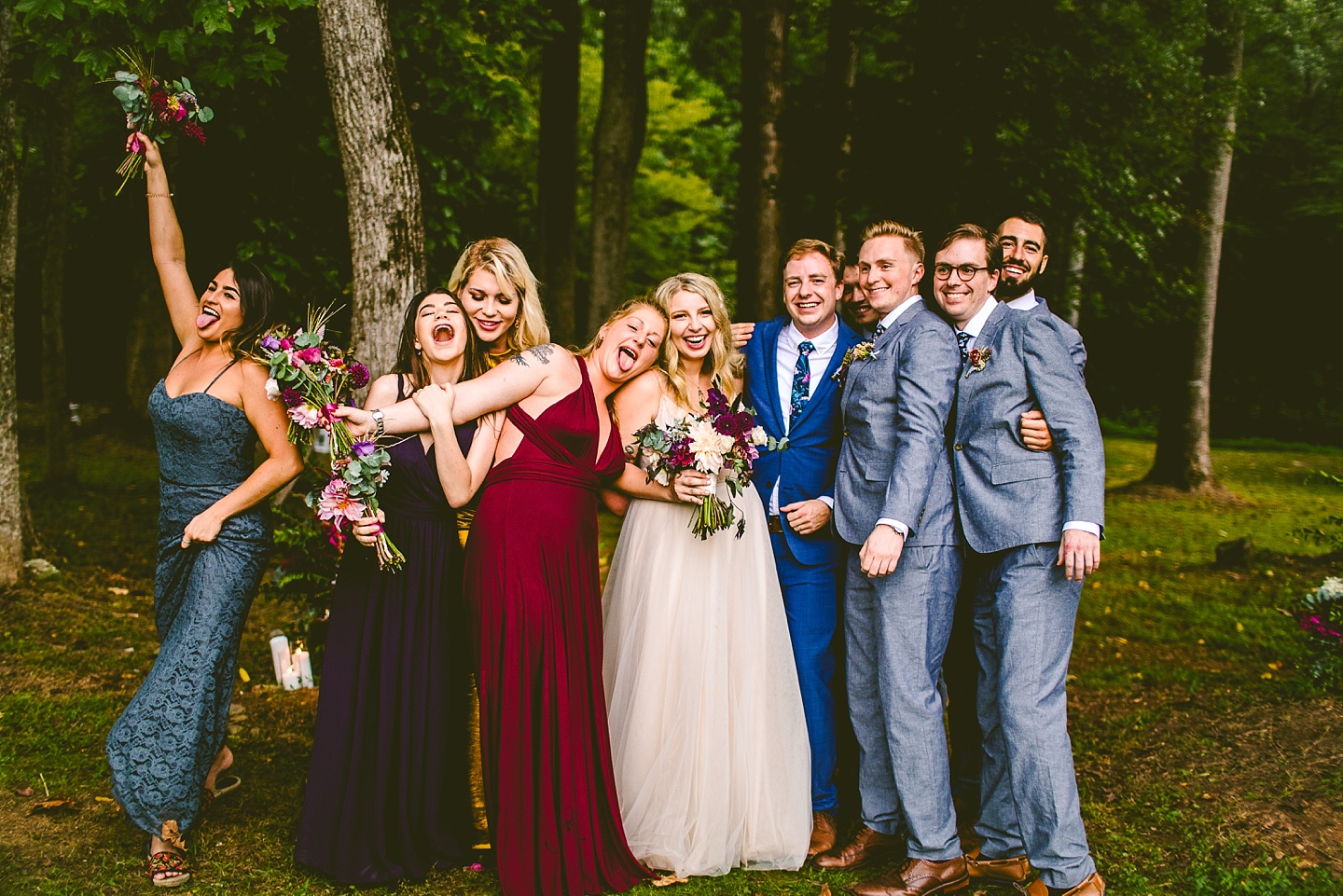 This wedding had one of the best floral altars I’ve ever seen, a vivacious bride and groom who are so supportive and caring for one another, and a band called the Harmonica Lewinskies. I daresay that I’ve never heard of a band with such a great name, and I don’t expect I’ll ever find a better one. They were formed by one of Edy and Andy’s close friends who passed away a few years ago, and they’ve since kept in touch with his bandmates who were there to support them as they got married. So not only do they have the best name, but they also have a personal connection to the couple, and everyone felt like family. Edy and Andy were married at the edge of the forest in some of the most beautiful afternoon lighting on a gorgeous day! There was thunder, but no rain, and it was all quite perfect. They danced the night away in the barn with all their family and friends. We’re so happy to have had such a loving and joyful couple as our clients. Congrats, Edy+Andy!