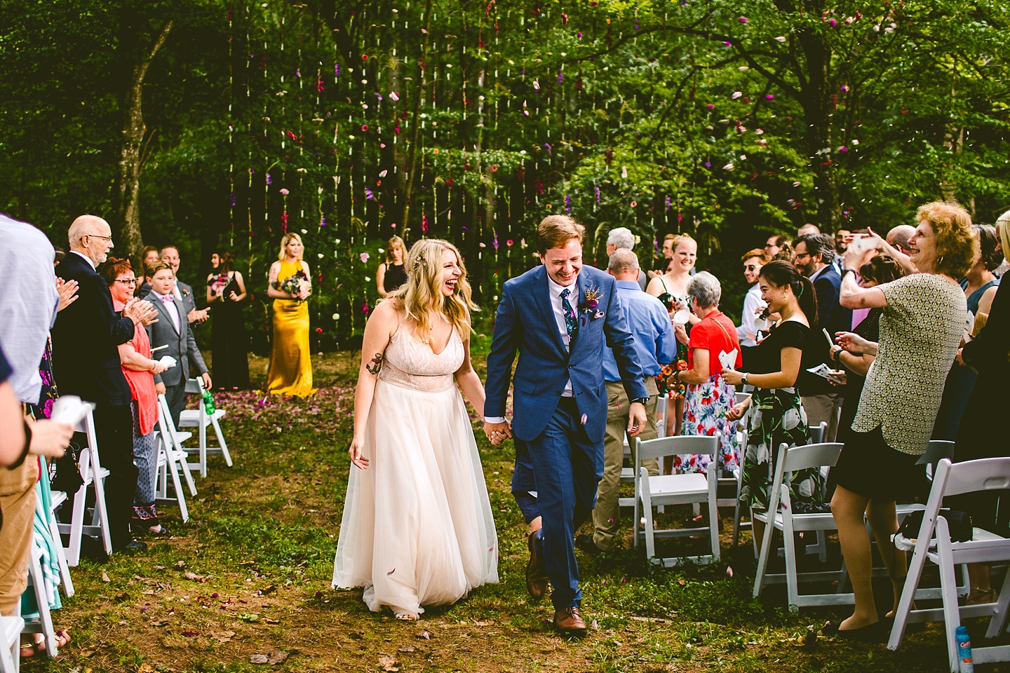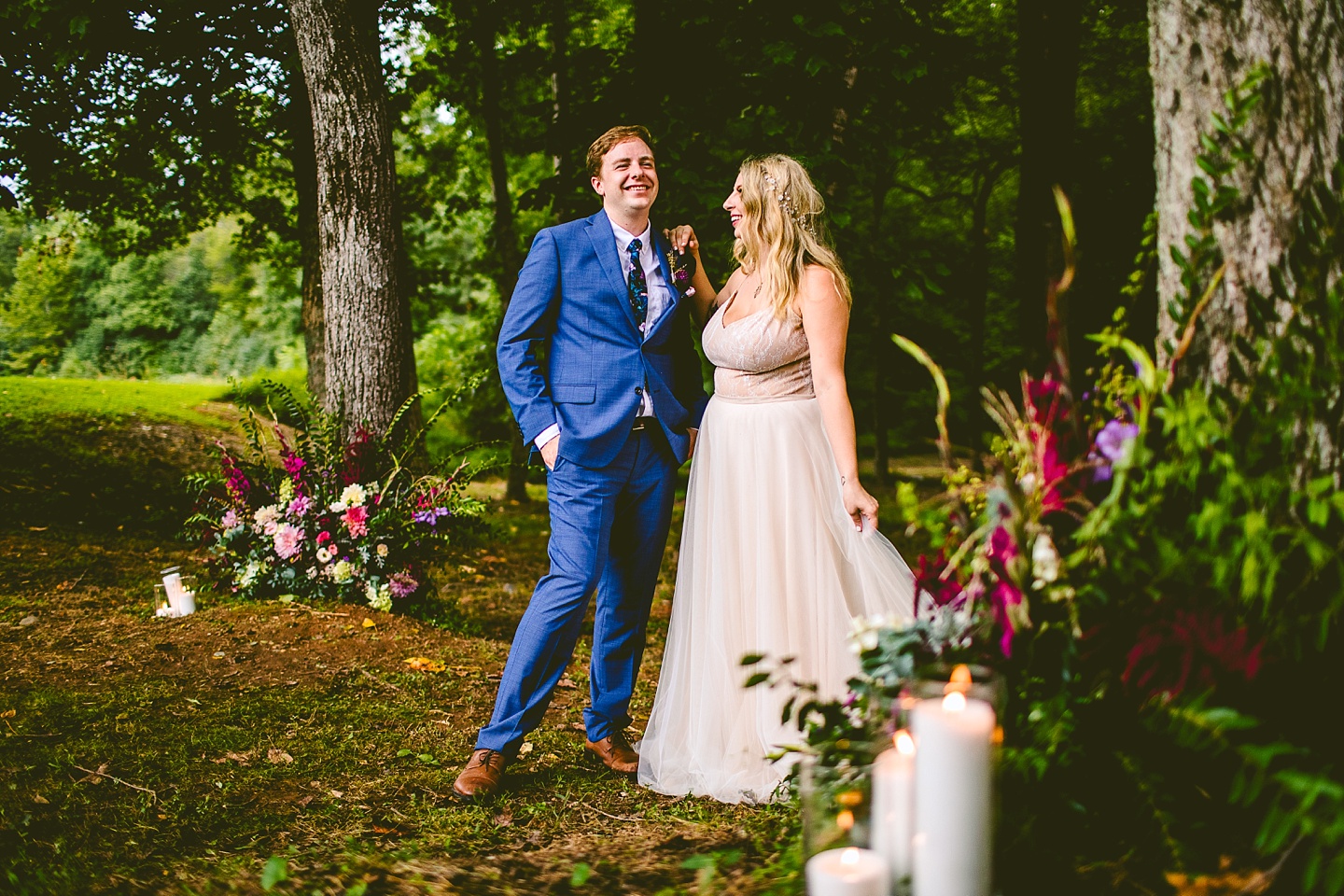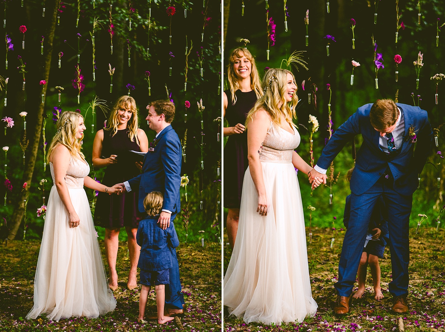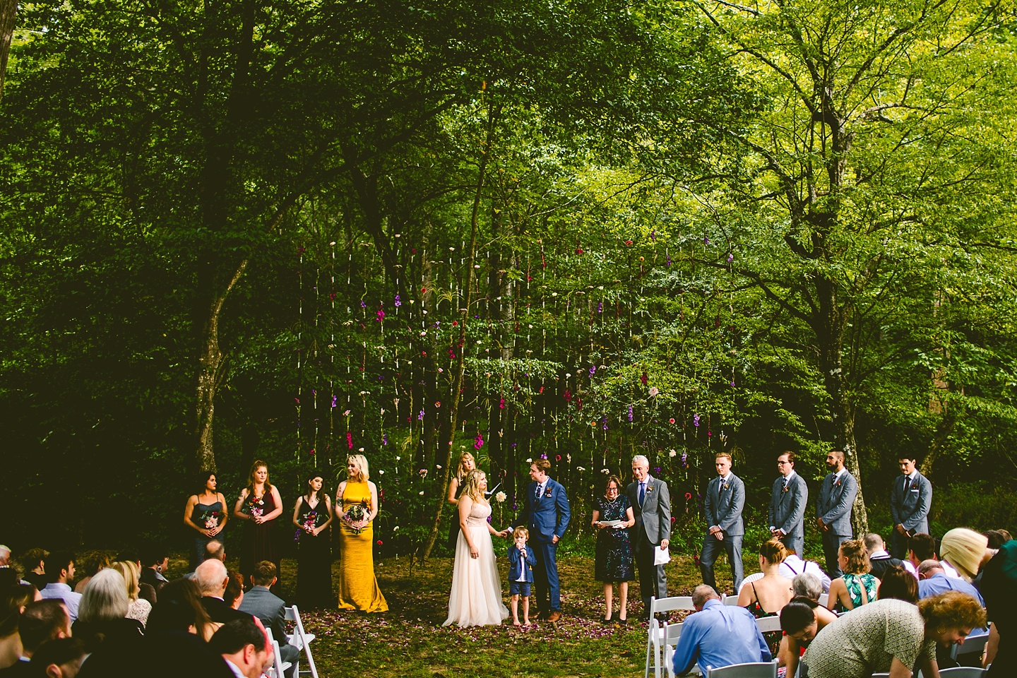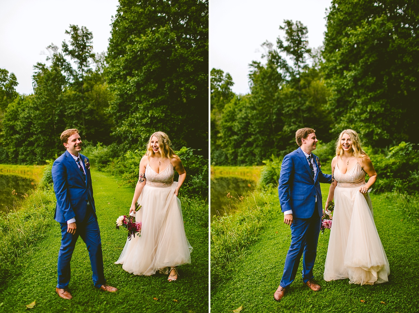 This wedding had one of the best floral altars I’ve ever seen, a vivacious bride and groom who are so supportive and caring for one another, and a band called the Harmonica Lewinskies. I daresay that I’ve never heard of a band with such a great name, and I don’t expect I’ll ever find a better one. They were formed by one of Edy and Andy’s close friends who passed away a few years ago, and they’ve since kept in touch with his bandmates who were there to support them as they got married. So not only do they have the best name, but they also have a personal connection to the couple, and everyone felt like family. Edy and Andy were married at the edge of the forest in some of the most beautiful afternoon lighting on a gorgeous day! There was thunder, but no rain, and it was all quite perfect. They danced the night away in the barn with all their family and friends. We’re so happy to have had such a loving and joyful couple as our clients. Congrats, Edy+Andy!