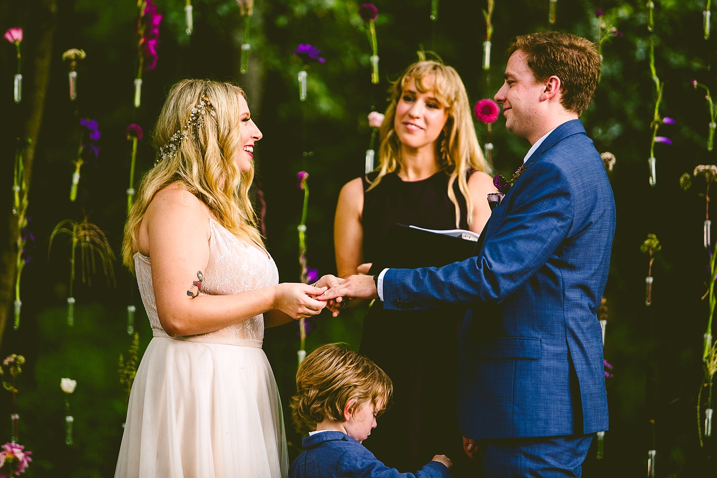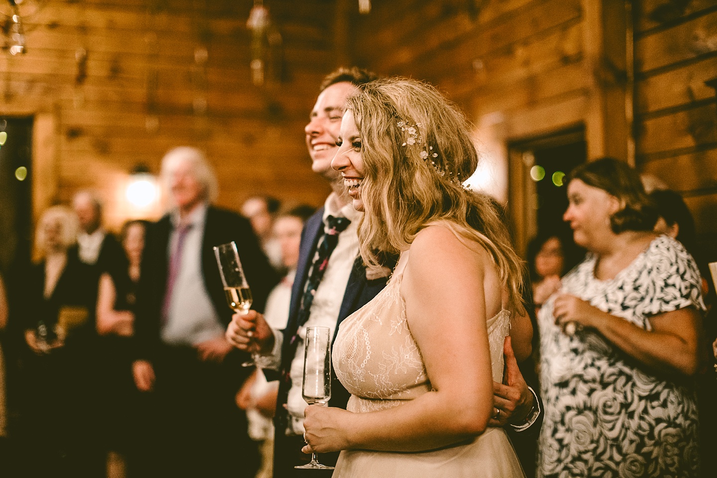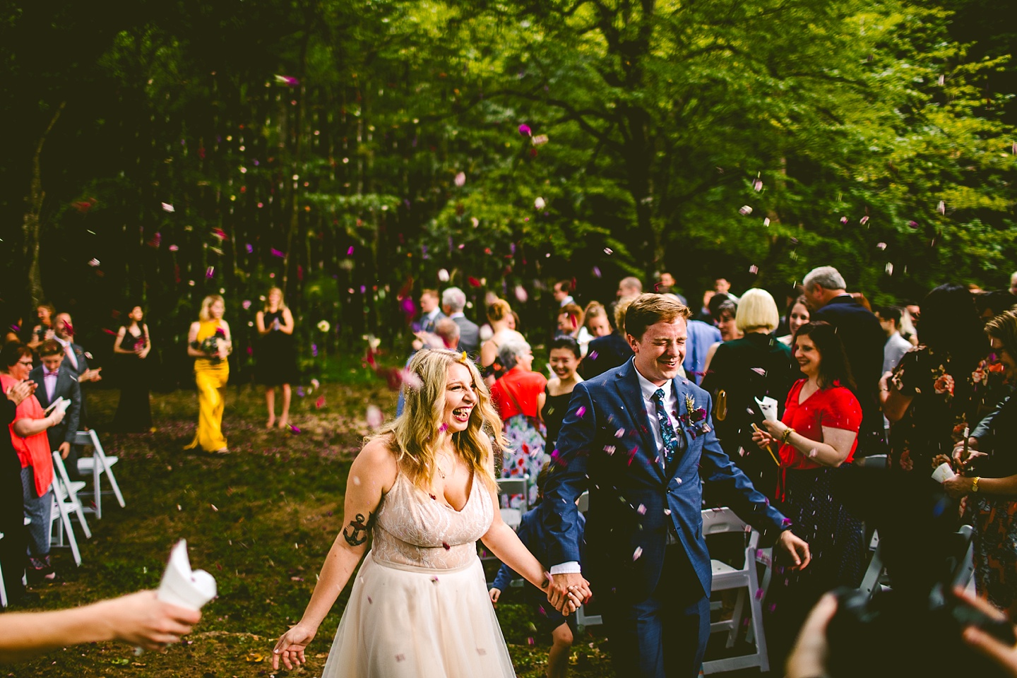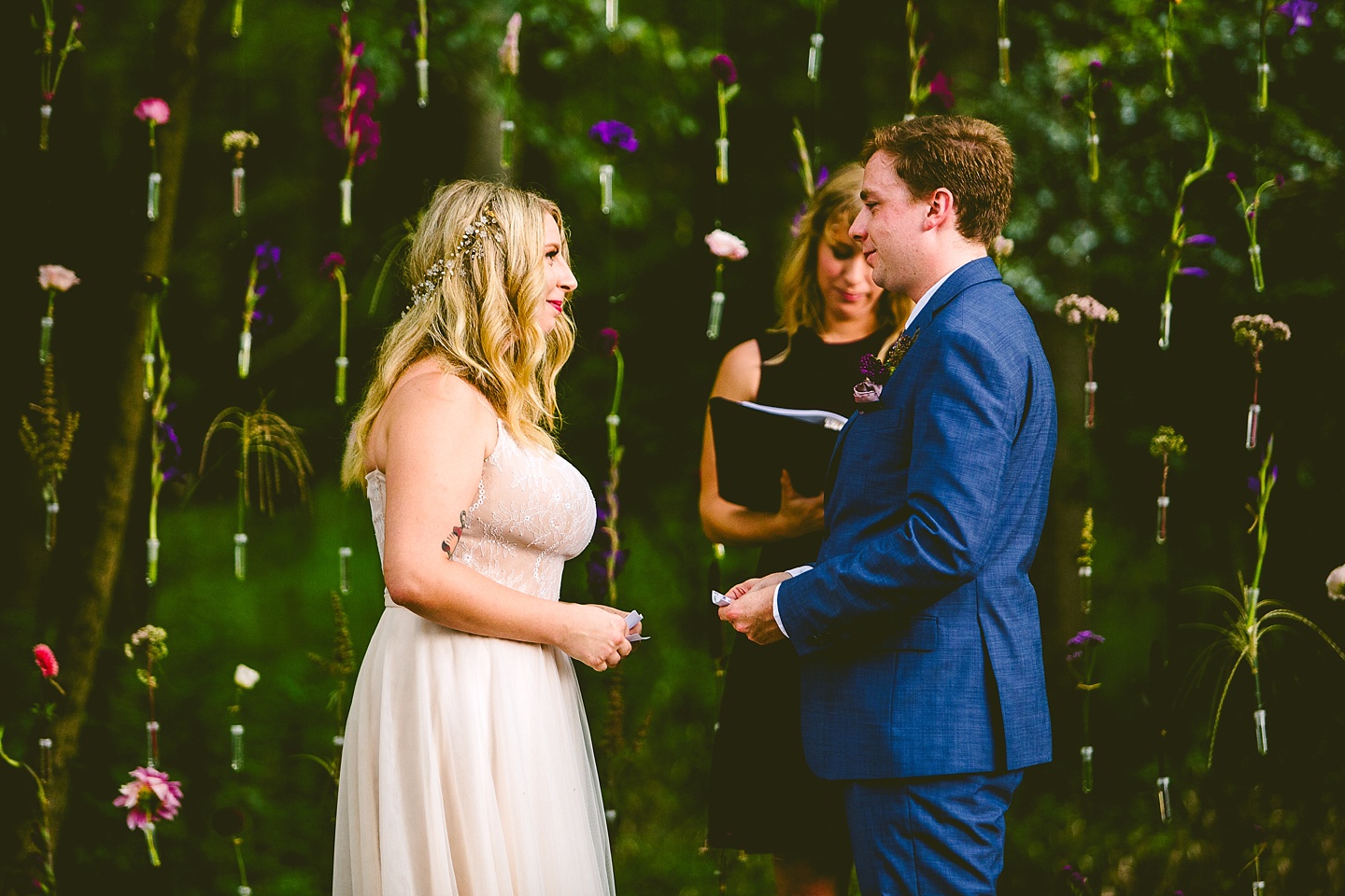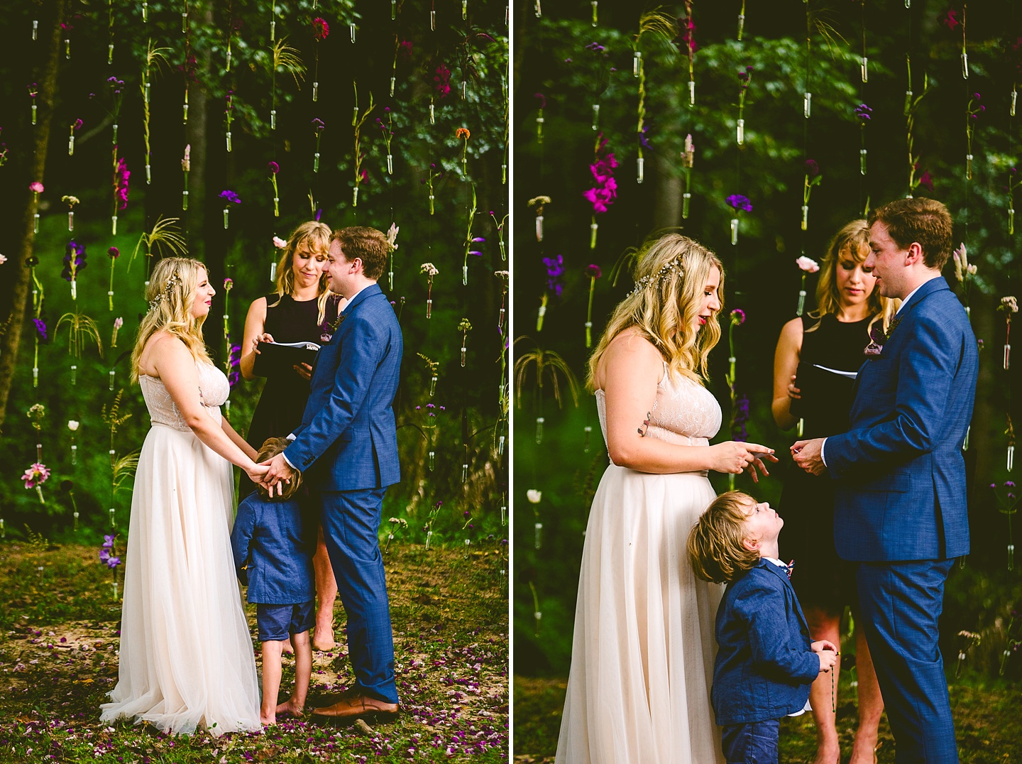 This wedding had one of the best floral altars I’ve ever seen, a vivacious bride and groom who are so supportive and caring for one another, and a band called the Harmonica Lewinskies. I daresay that I’ve never heard of a band with such a great name, and I don’t expect I’ll ever find a better one. They were formed by one of Edy and Andy’s close friends who passed away a few years ago, and they’ve since kept in touch with his bandmates who were there to support them as they got married. So not only do they have the best name, but they also have a personal connection to the couple, and everyone felt like family. Edy and Andy were married at the edge of the forest in some of the most beautiful afternoon lighting on a gorgeous day! There was thunder, but no rain, and it was all quite perfect. They danced the night away in the barn with all their family and friends. We’re so happy to have had such a loving and joyful couple as our clients. Congrats, Edy+Andy!
