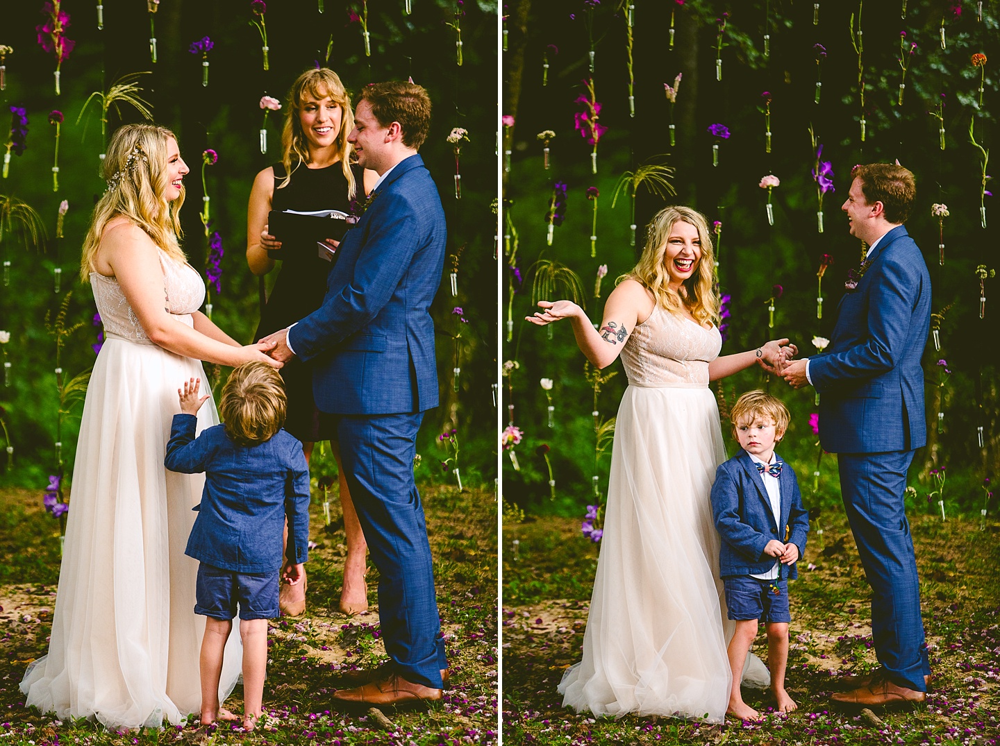 Edy and Andy have been such great supporters of us ever since they booked us, and I feel like they’re our constant cheerleaders. It’s so wonderful when you feel like clients get you! And when they’re comfortable with you, you’re comfortable with them, and all’s right with the world. We’ve had a great time working with not only them, but their adorable son Louie, who loves dinosaurs even more than me and also enjoys bossing people around about as much as I do. We first met Louie at Edy and Andy’s engagement session last year with their superfluff of a doggo named Nacho. We were happy to reunite with Louie and his armada of plastic dinosaurs at their wedding, and to see Edy and Andy again!