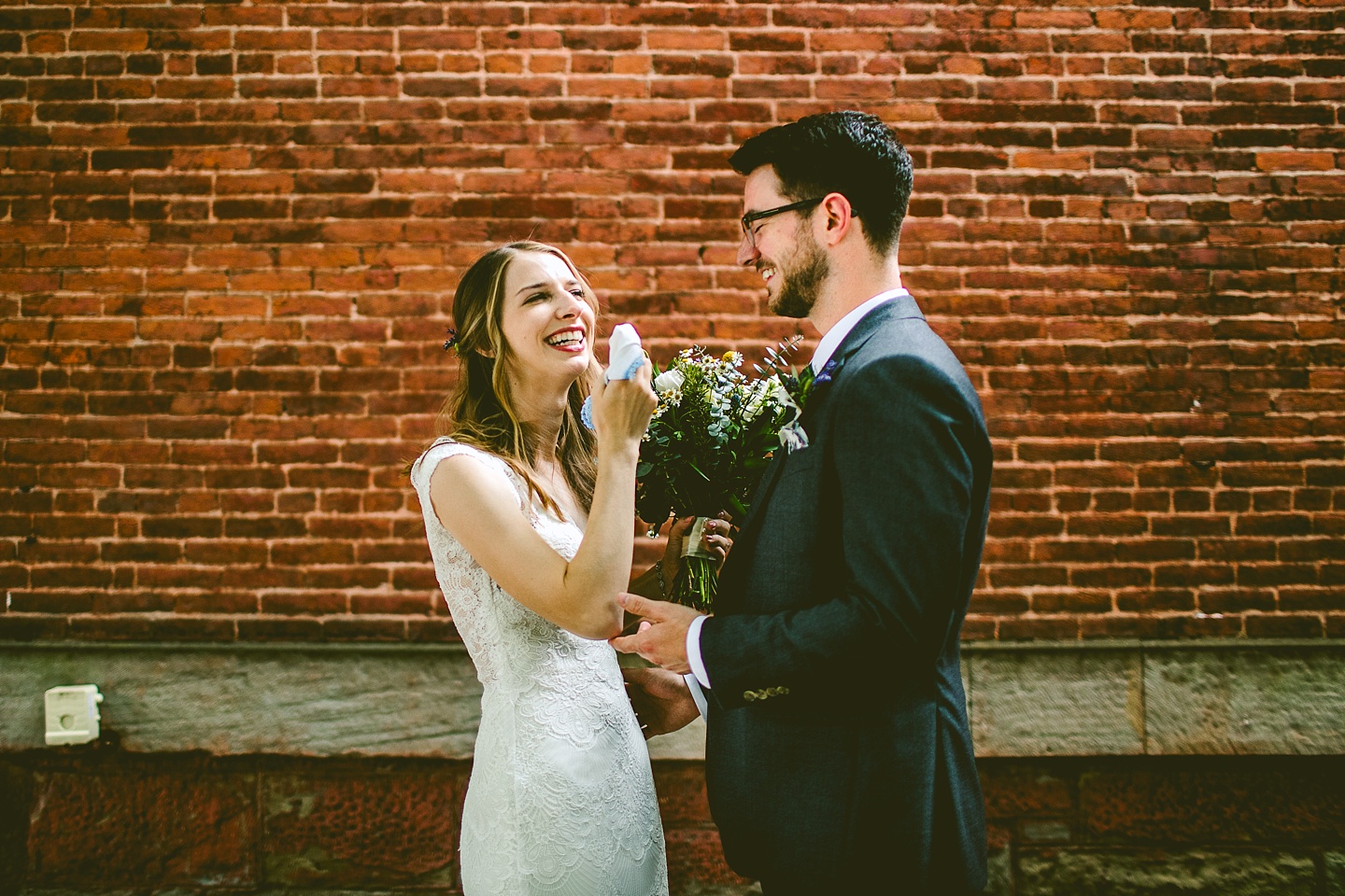 Guyyyys – nothing is better than Pittsburgh in the summer. The winter is a whole different story, but the SUMMER! The summer is so great. It’s even greater when a client asks you to shoot a wedding up there at the same time as your Pittsburgh Dad’s birthday, retirement, AND Father’s Day… all in the same weekend. My dad was so happy we were up there, and so were we. AND THEN! It’s even GREATER when that same client asks to have their wedding portraits taken in the Mexican War Streets neighborhood where your first apartment was, and you get all misty-eyed shooting there next to your former home with the badass fireplace in the bathroom. AND THEN YOU’D THINK IT COULDN’T GET ANY GREATER BUT THEN OUT COMES THE COCKTAIL HOUR PENGUIN AND THE TINY OWL. I cannnnn’t, you guys, with the tiny owl. The cocktail hour penguin, Disco, is my first love, and I’ve met him at previous weddings. This time he pooped on me (the love is clearly mutual!). But I HADN’T YET MET THE TINY OWL. I don’t know what his name was, but he was so tiny and so cute that I almost exploded. It took everything in my power to not pet him and this is an actual photo of me as he approached.
