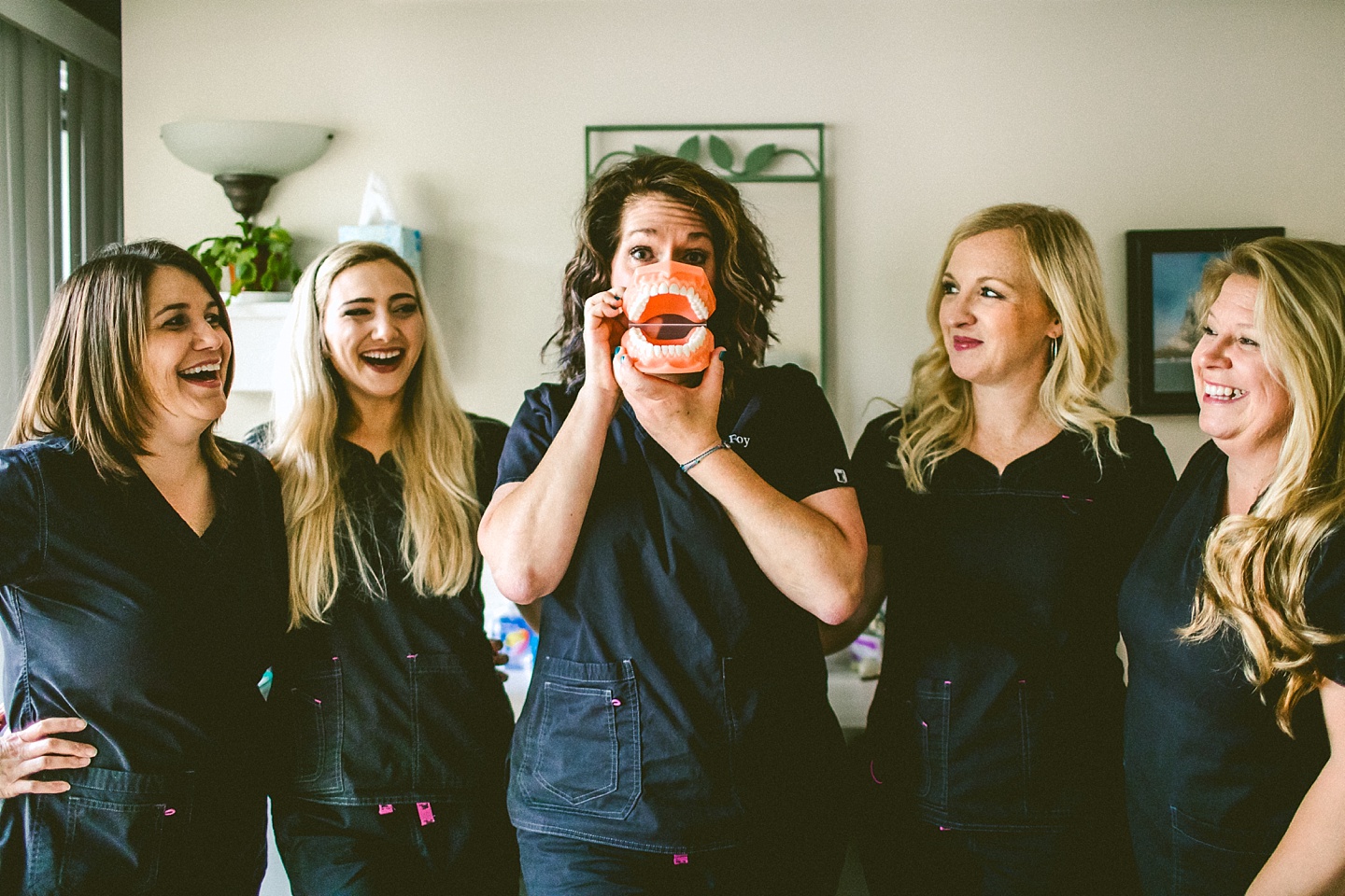 So I was overjoyyyyed to be asked to do promo pictures for this wonderful, wonderful crew! They needed new headshots and group shots, and I drove there and we did them and we laughed and bit some unsuspecting patient’s hand with a plastic alligator and made her pretend like she has no idea how to brush her teeth (sorry, Sunny). It was fun and it always is. She is 100% and without any doubt recommended by yours truly as a dentist. She’ll talk to you about The Walking Dead and photography and hockey and the Foyettes will remember all your vacations and your husband’s plans too. I love these women with my whole being.