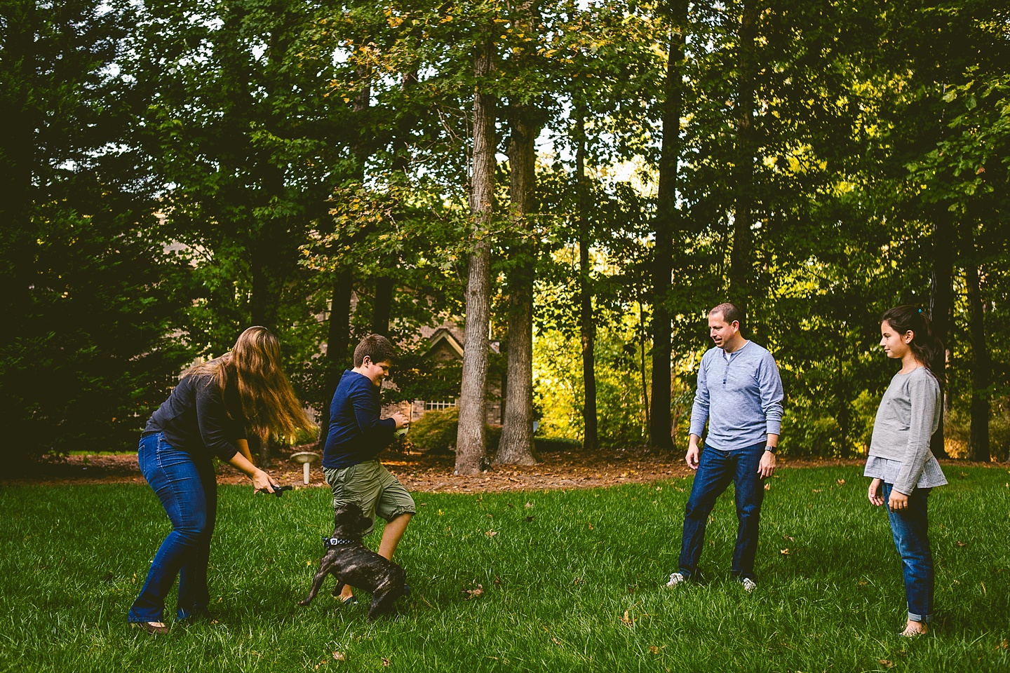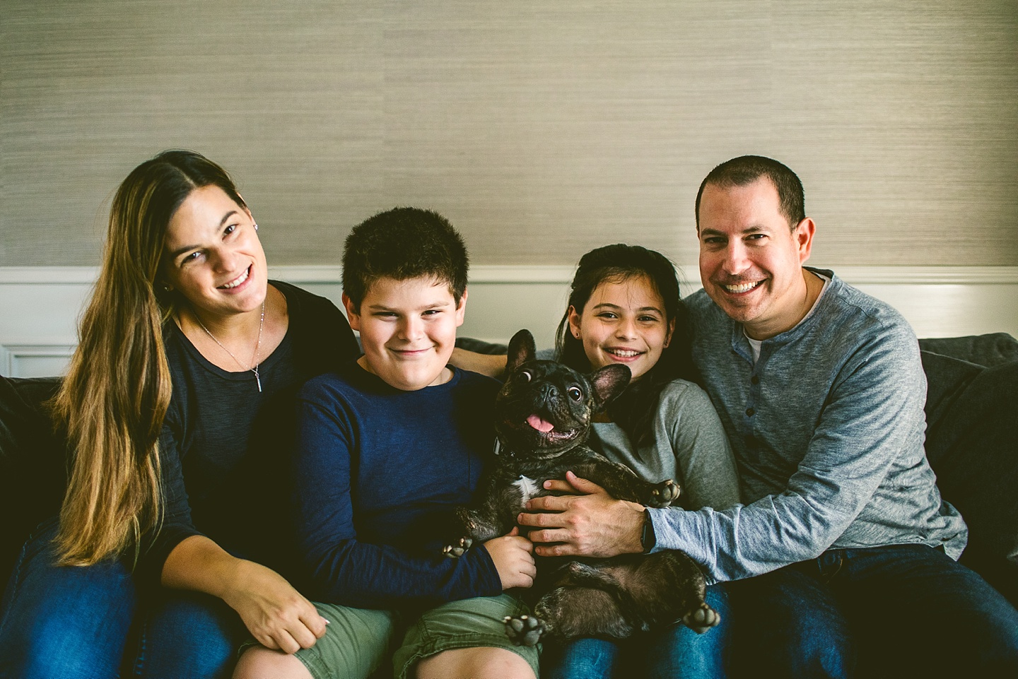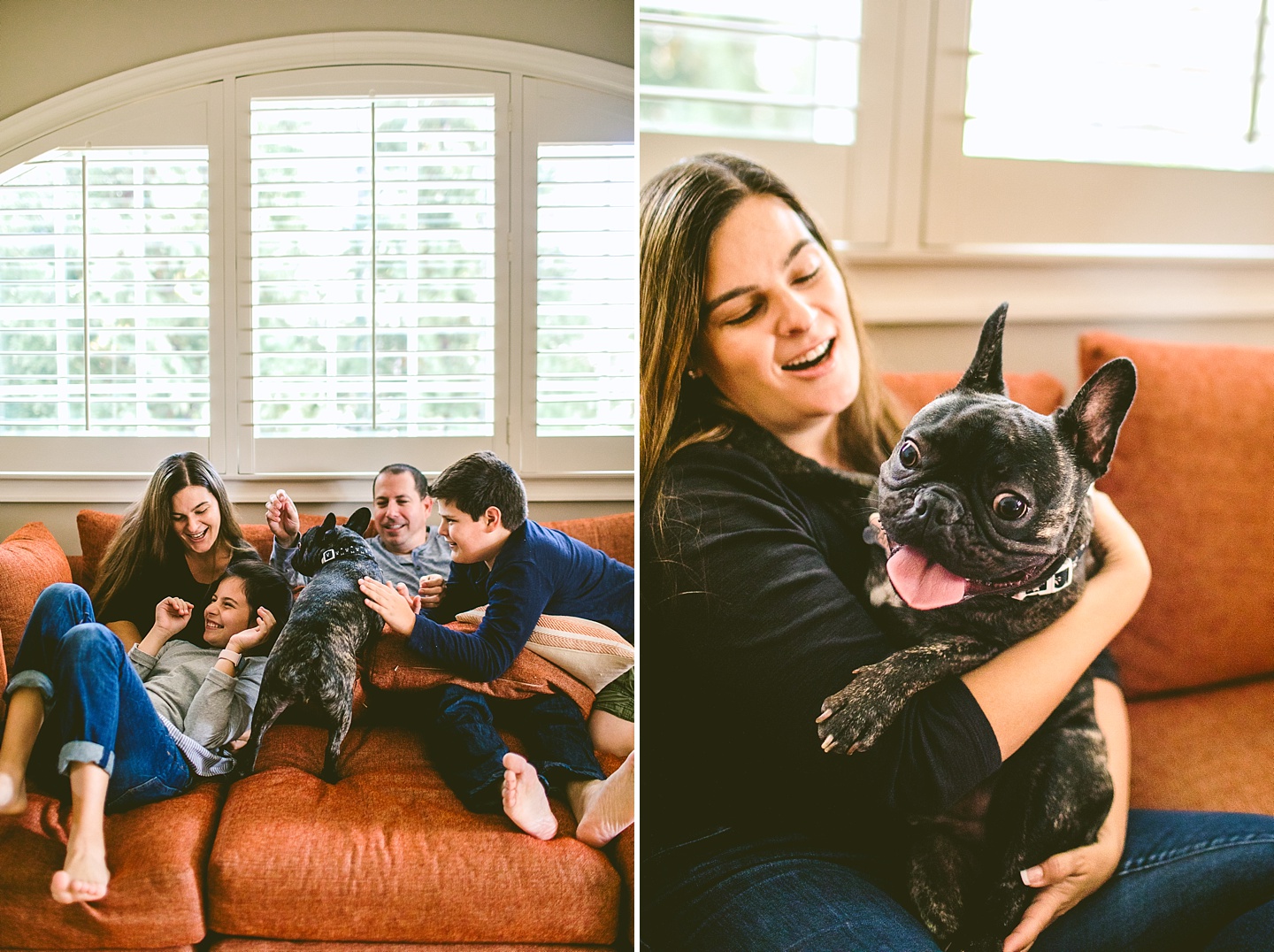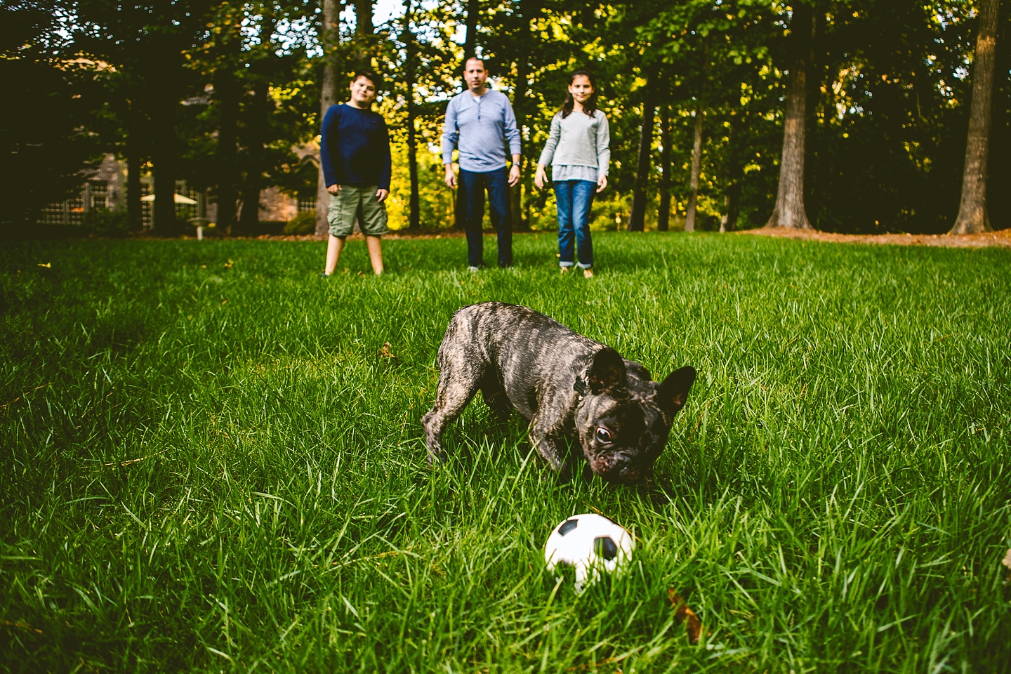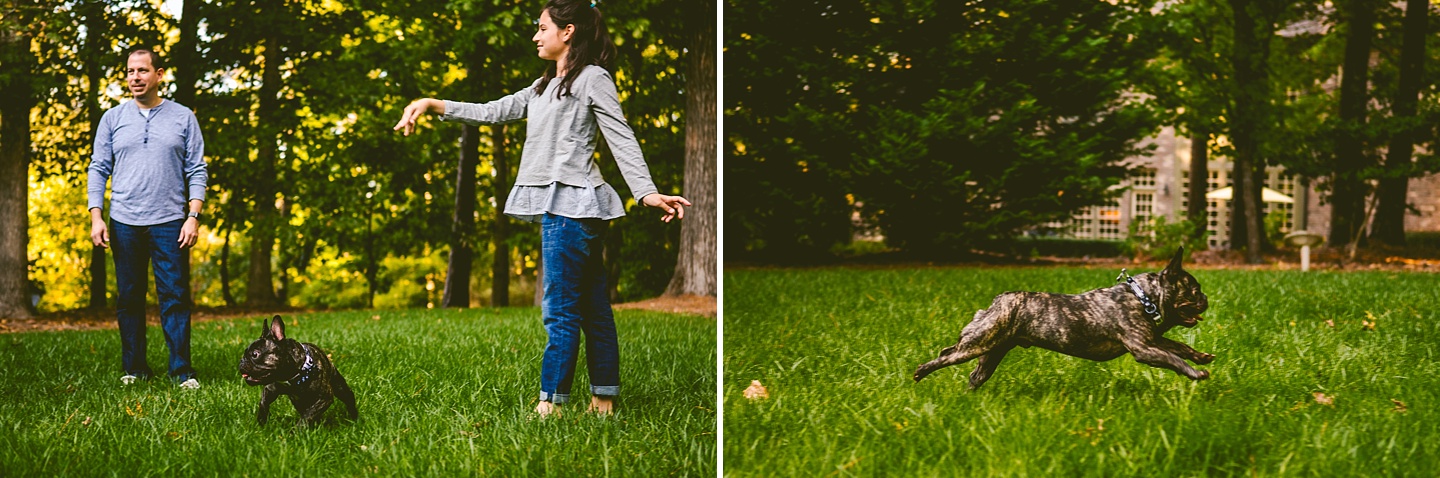 Finn’s beloved owners are Robin and Bob, who are incredibly lovely people who adore their family and wanted to have photographic evidence of this point in time in their lives with each other and Finn. They were really wonderful and easy to work with despite it being a particularly freezing morning and shooting outside. They were also capable of interacting in an endearing and beloved way with each other, regardless of the fact that zero out of the four people present were morning people. We had such a great time getting to know these guys and witnessing their dog put a frisbee on his head. We’re happy to have captured their family together having a good old time in their neighborhood!