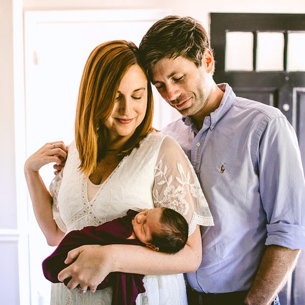 I went to Corey and Joe’s house to photograph the arrival of their newborn baby girl Harper, and arrived to find an elated set of parents, one very beautiful girl, and two VERY EXCITED DOGGOS! Corey told me that she’s always wanted to be a mother and it shows! She was surprisingly awake and looking fabulous and I think she was running on 100% excitement. And AS SHE SHOULD BE because Harper is a little bundle of adorable joy. She was a trooper through the entire session and multiple costume changes, and also gets along well with her two doggo siblings, Sandy and Bailey. Harper is the proud owner of a little dreamboat of a nursery – completely with sweet wooden toy camera! – that her parents put together for her, as well a series of what I’ve determined to be extremely cute baby clothes (there were too many that I wanted to put her in, and while we didn’t get to all of them, we DID get to the fox pants, thank goodness). Joe was also super excited to have a baby girl, and together him and Corey make a great couple and great parents (Joe was super sweet to make sure Corey was eating during the session, but then I promptly took her breakfast and put it in the closet, sorry). Can’t wait to see what adventures await Harper, and what a fierce little photographer she may become.