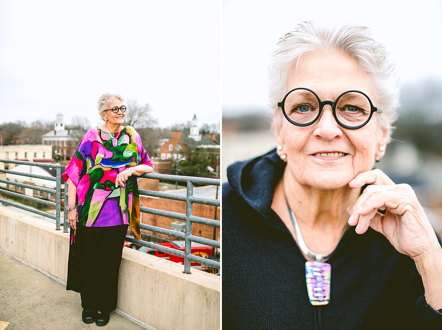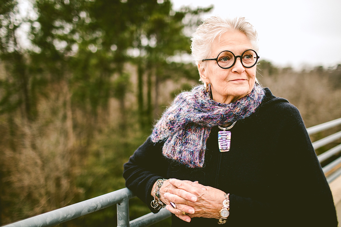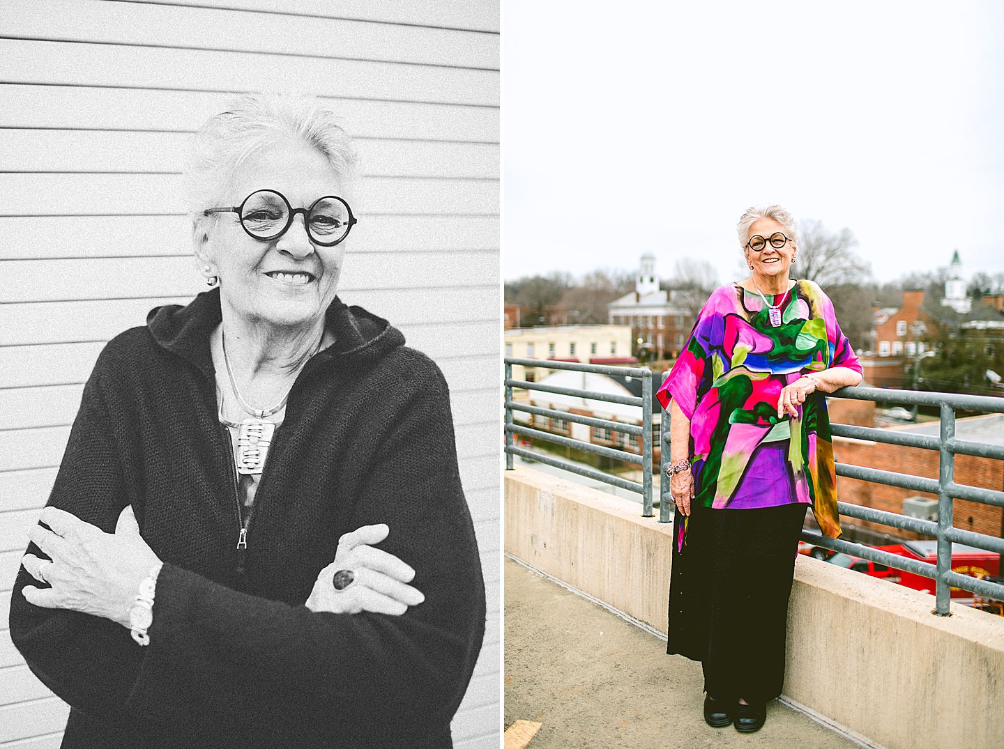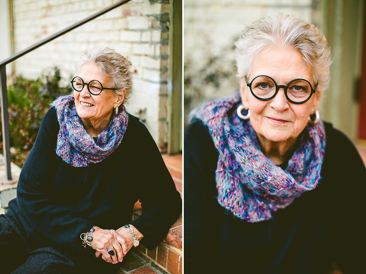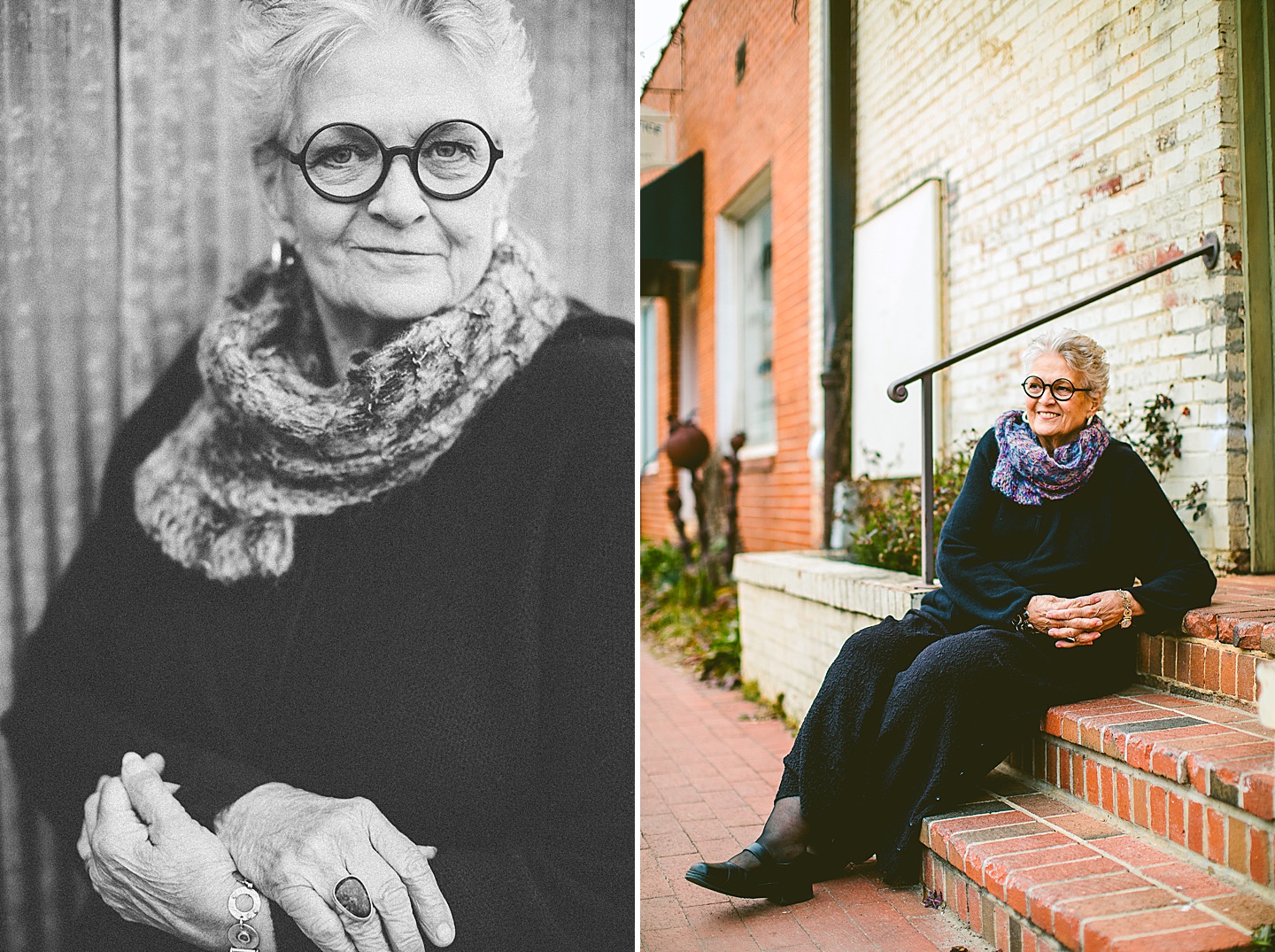 We have some incredibly talented members of the community in our area, and it never fails to fascinate me. Local Hillsborough author Anna Jean Mayhew (who goes by AJ to friends and family) is one of those talented people. She is 79 years old (these photos were coincidentally taken on her 79th birthday!), and was first published at the age of 71. She’s been writing since her 40s, and also held an incredibly varied career. One of her favorite past jobs was when she managed the opera in Charlotte, but she was also a court reporter where she picked up on an incredible gift she had for dialect. Her job as a court reporter helped shaped a lot of the ways her characters speak in her first book The Dry Grass of August (and I’d say it worked – her book is highly reviewed and rated on Amazon). Kensington, her publisher, offered her a two book deal, and her second book, Tomorrow’s Bread, will be out soon. She is absolutely fascinating. She is kind, outgoing, and has a penchant for wearing lots of jewelry and incredible glasses (her signature). She’s a fan of cats (and was quite accommodating when I needed to reschedule our session due to a sick kitty of our own), and traveling with her Swiss husband who is an expert on author Jules Verne. All of her family seems artistic and talented, and she worn earrings made by her sister, and a sweater and scarf made by another sister. It was a great honor (and a ton of fun) to go around Hillsborough with her, photographer her author headshots, and learn about her life. If I grow up to be half as accomplished and interesting as AJ, I’ll be set.