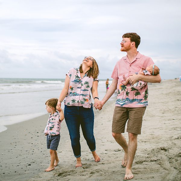 Sarah, his newfound little sister, is adorable and excels at looking cute, wearing baby Hawaiian print shirts, and staying awake until the exact moment I start eating lunch. Together, they are an unstoppable brother/sister duo I adore. We got to meet her and hang out with Cat and Mitchell for a day at Mitchell’s family’s new house in Kure Beach. This day mostly involved us discussing and worrying about rip tides, sharks, flesh-eating bacteria, and brain-eating amoebas before we finally were all brave enough to swim. Happy to say that none of things we worried about came true. However, I did break into hives for no reason and had to go in (it’s always the things you don’t see coming, isn’t it?). But – all’s well that ends well. We had a beautiful day at the coast with this family of four and we love them. Also, new family rule: no pictures ever again of any of you unless you’re all wearing matching Hawaiian outfits.