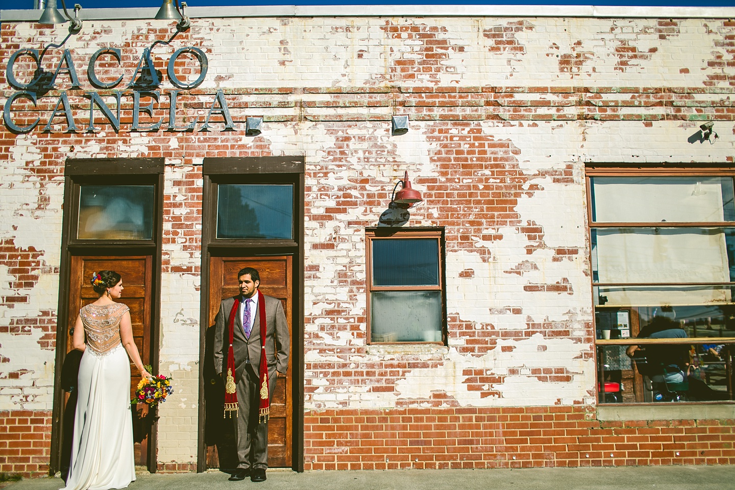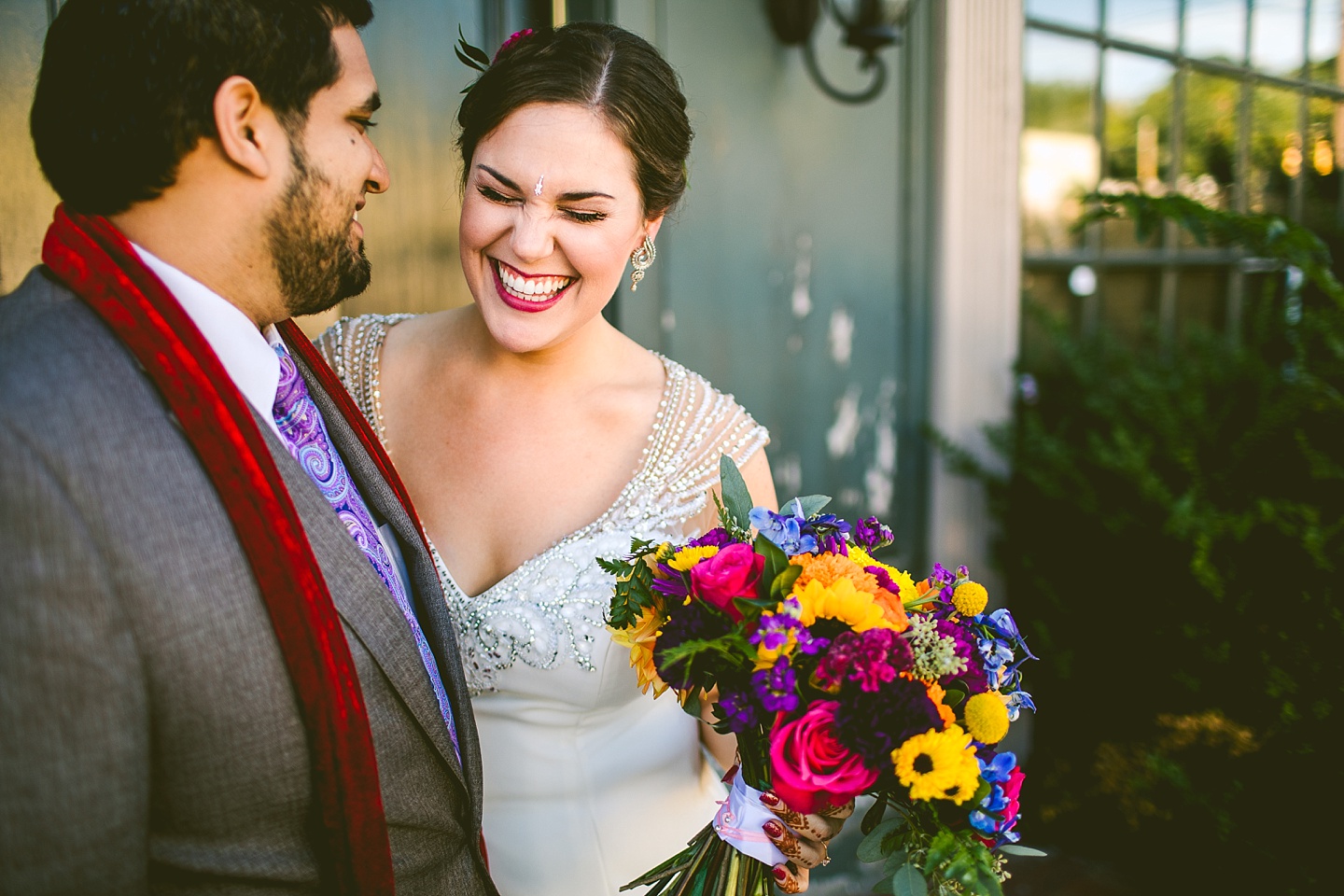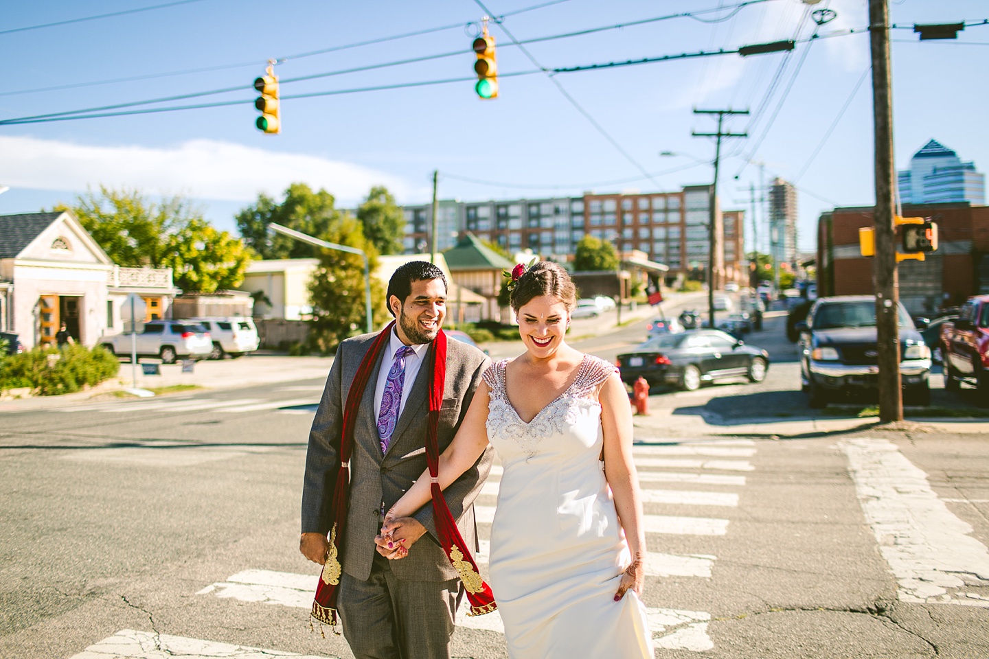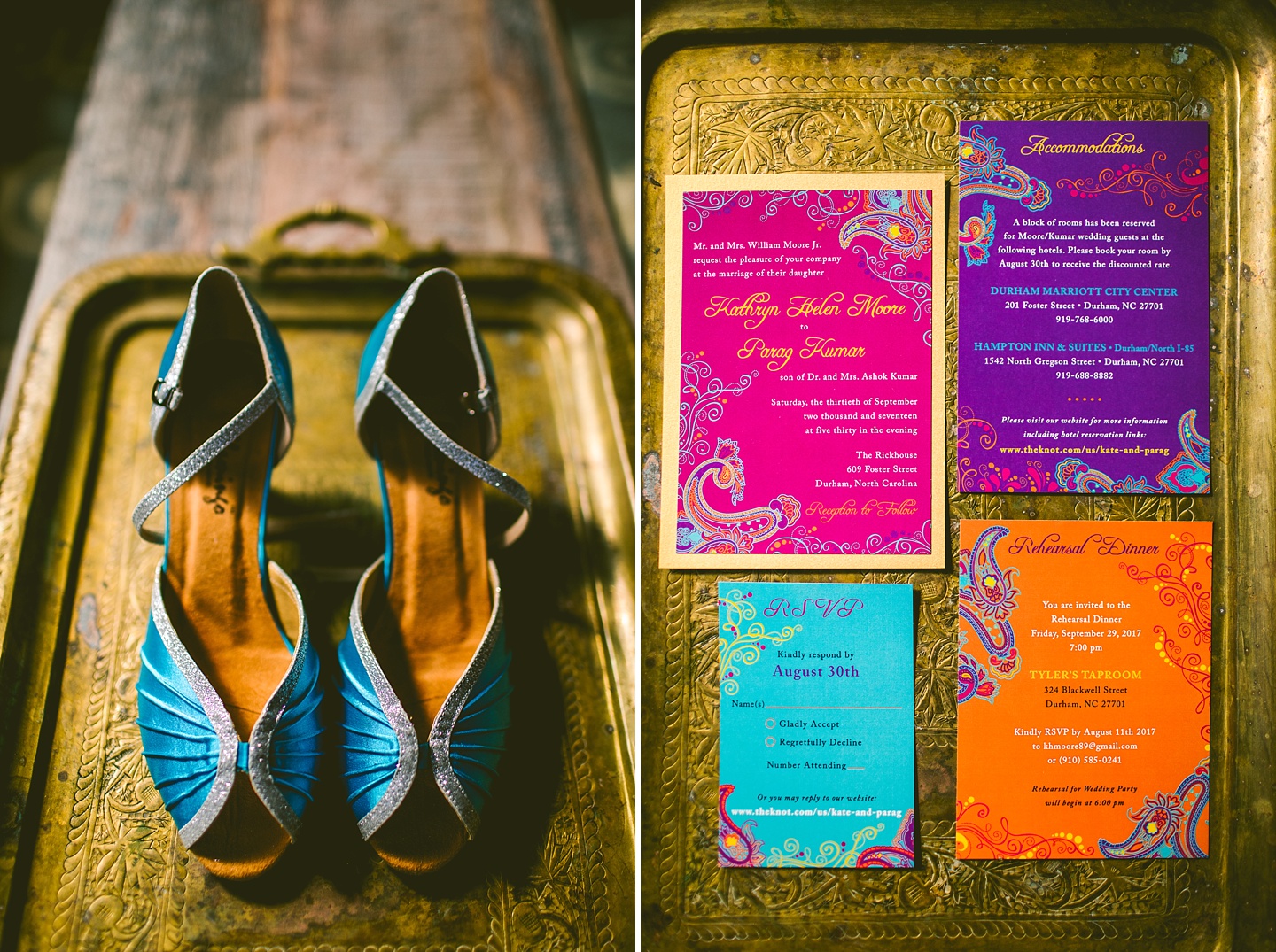 – Interesting Fact: This is our second wedding! We had a traditional Hindu wedding ceremony this past June – Kate wore an enormous clip-on hoop nose ring. Parag wore Aladdin shoes. It was baller.