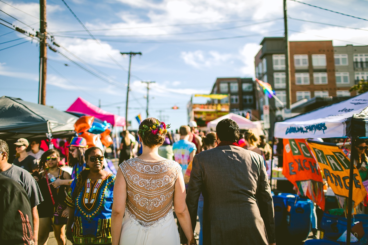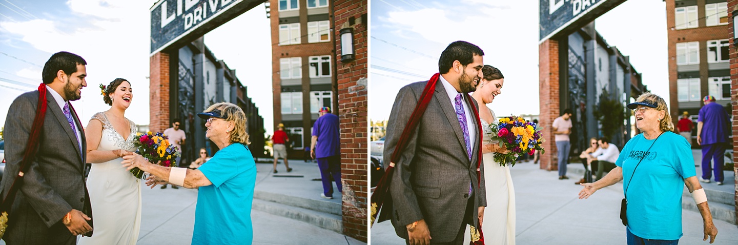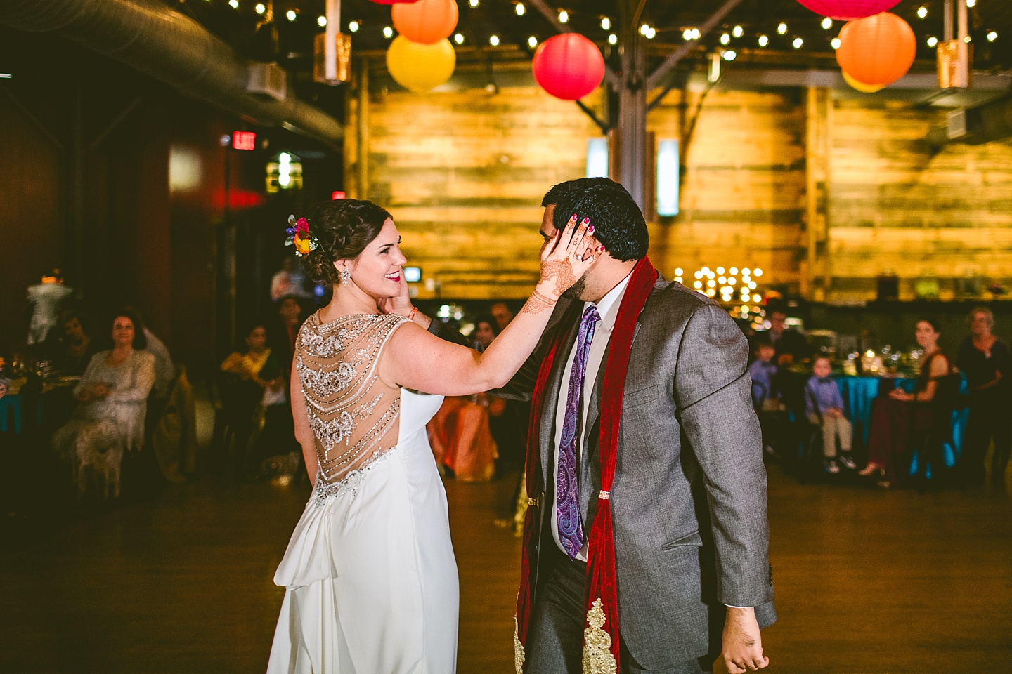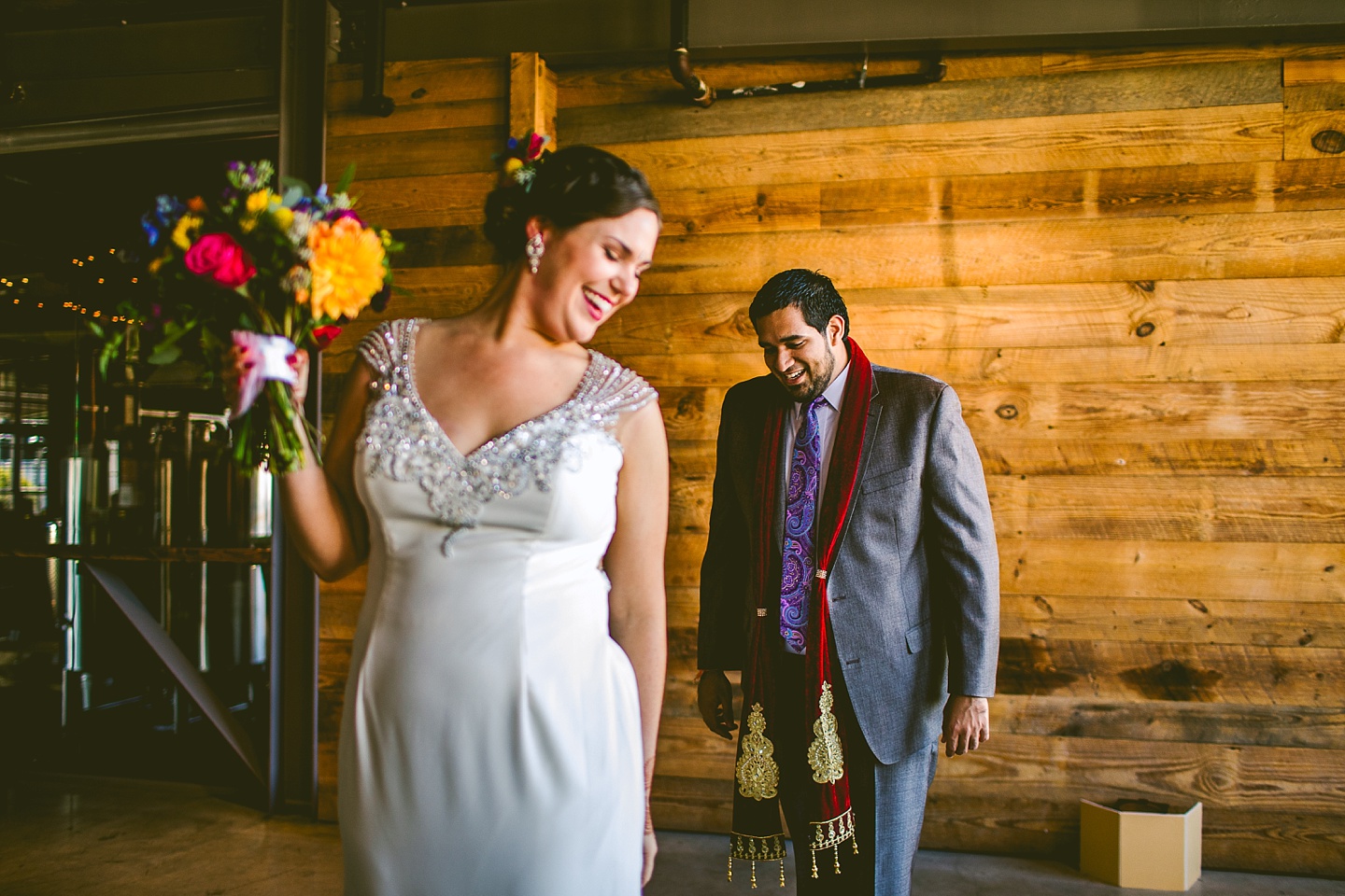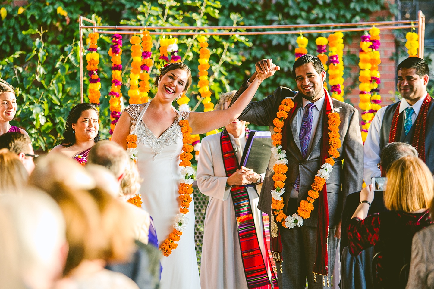 – Interesting Fact: This is our second wedding! We had a traditional Hindu wedding ceremony this past June – Kate wore an enormous clip-on hoop nose ring. Parag wore Aladdin shoes. It was baller.