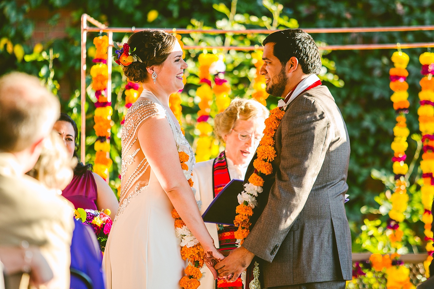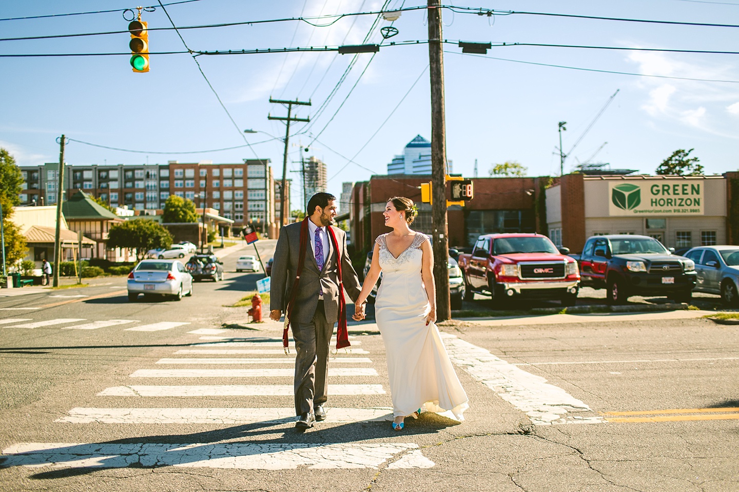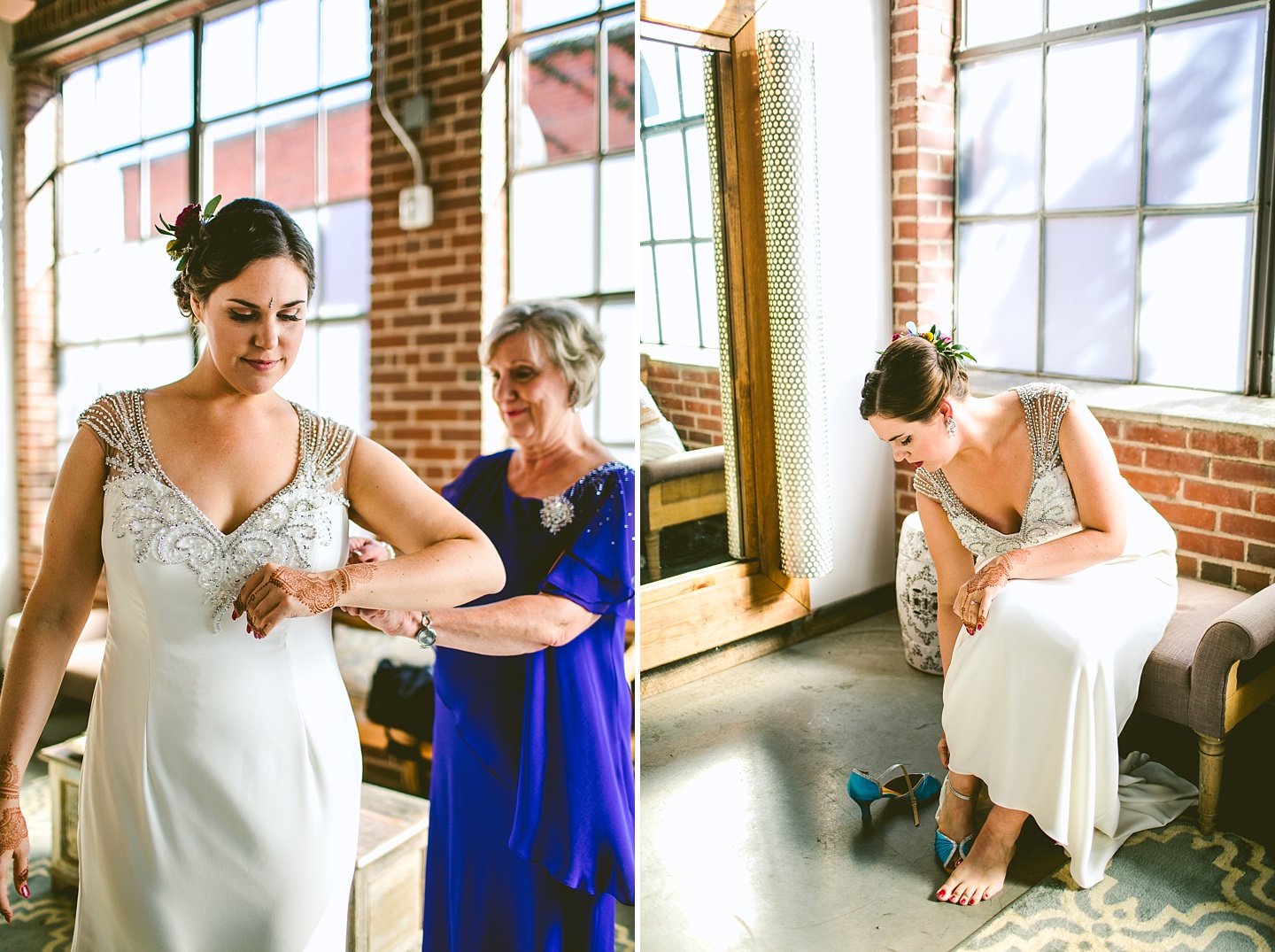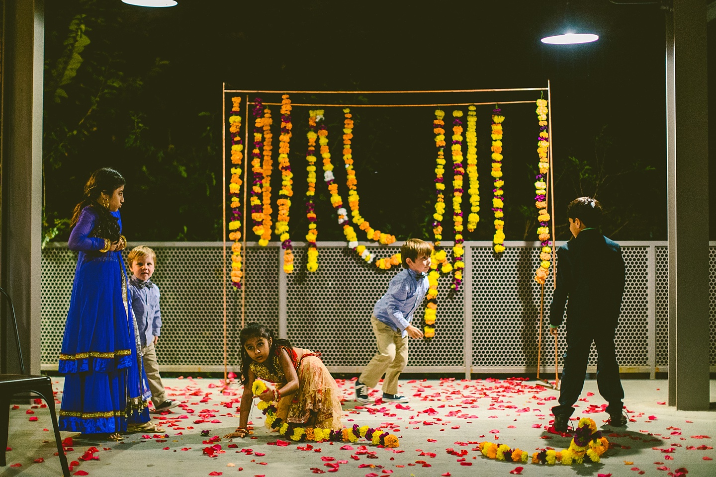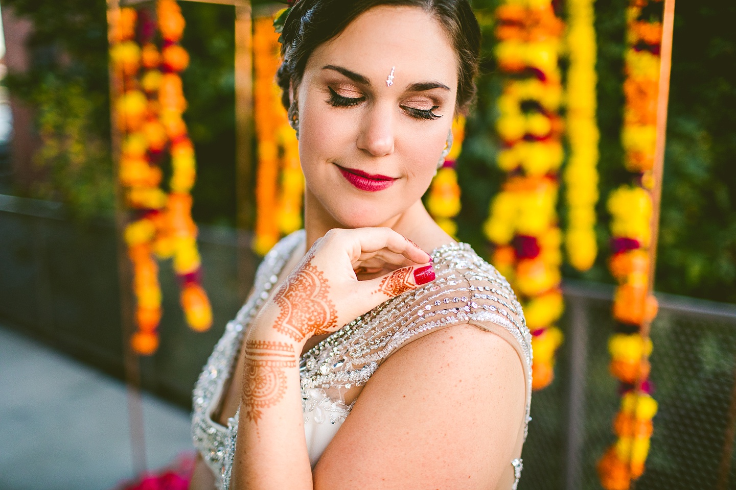 And Kate and Parag are also SO GOOD. They are perfect for each other and make each other laugh often. Kate has a wonderful set of perfect teeth so it’s good that Parag keeps her laughing so we can admire them. This was their second wedding to each other. Their first was a traditional Hindu ceremony, and this was their American and Indian fusion wedding. Kate sent me the pictures from their first one which were amazing, and Kate wore a really incredible nose ring that was so large it defied the laws of gravity. Their Indian-fusion wedding was lacking in the nose ring department, but it made up for it with amazing henna designs in the shape of little elephants and brilliant colors sprinkled all over their ceremony and reception. There were traditional Indian dances and American popcorn next to the Durham Bull’s old baseball field. The little kids dismantled their incredible floral altar during the reception and threw repeatedly threw the flowers down Parag’s suit jacket, and they danced away the night with their fabulous family and friends. We are thrilled to have been part of Kate and Parag’s awesome fusion wedding, and so glad they came down from DC to celebrate in Durham!
