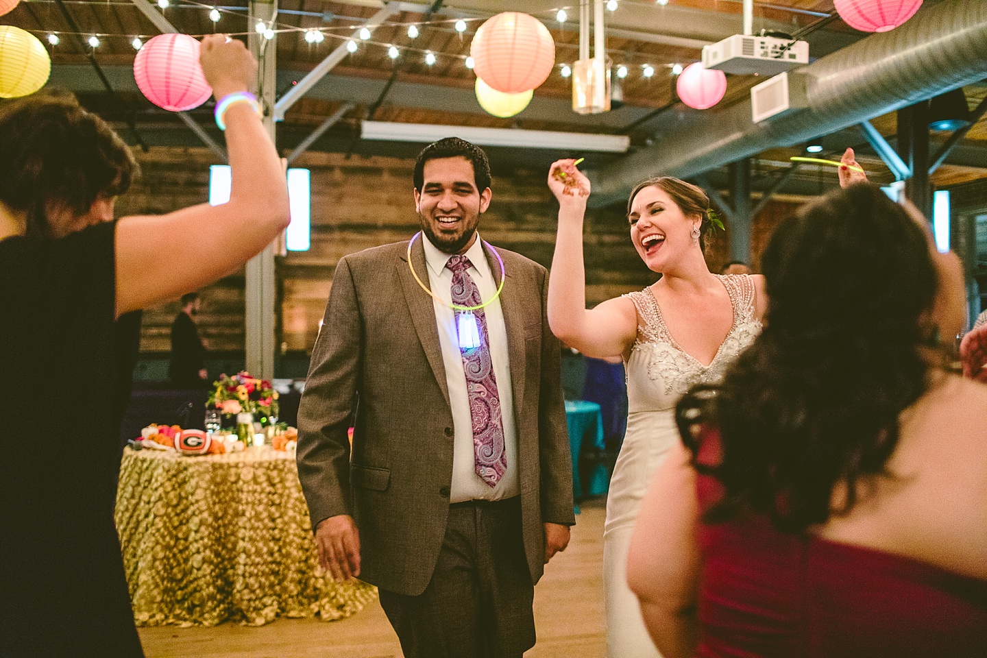 – Vendor Credits: Officiant – Rev. Sue Hudson. DJ – Alex from Vox DJ Company. Florist – Tre Bella Florist. Cake – Edible Art Bakery. Caterer – Southern Harvest Catering Company and Raaga. Hair/Makeup – Bella Trio Studio. Videographer – Elegant Imagez. Coordinator – Kelli from The Perfect Plan. Lighting – Get Lit. Photobooth – ZimZoom.