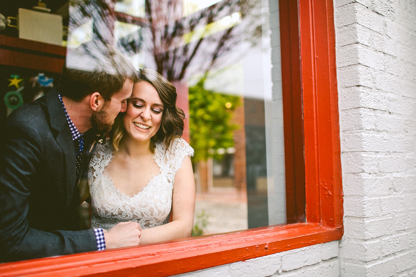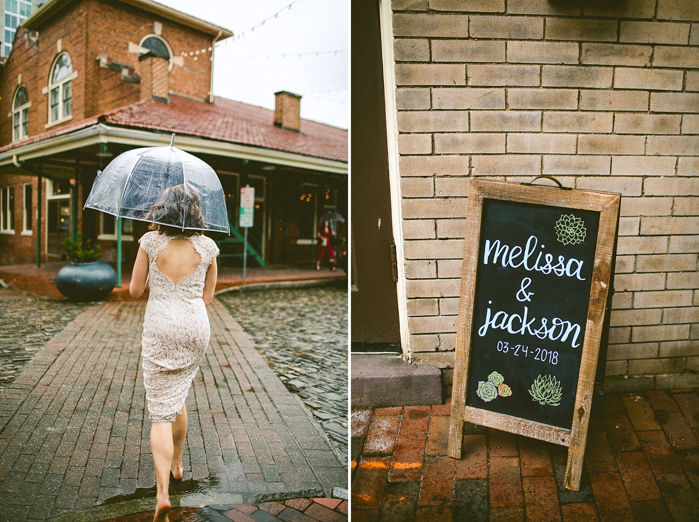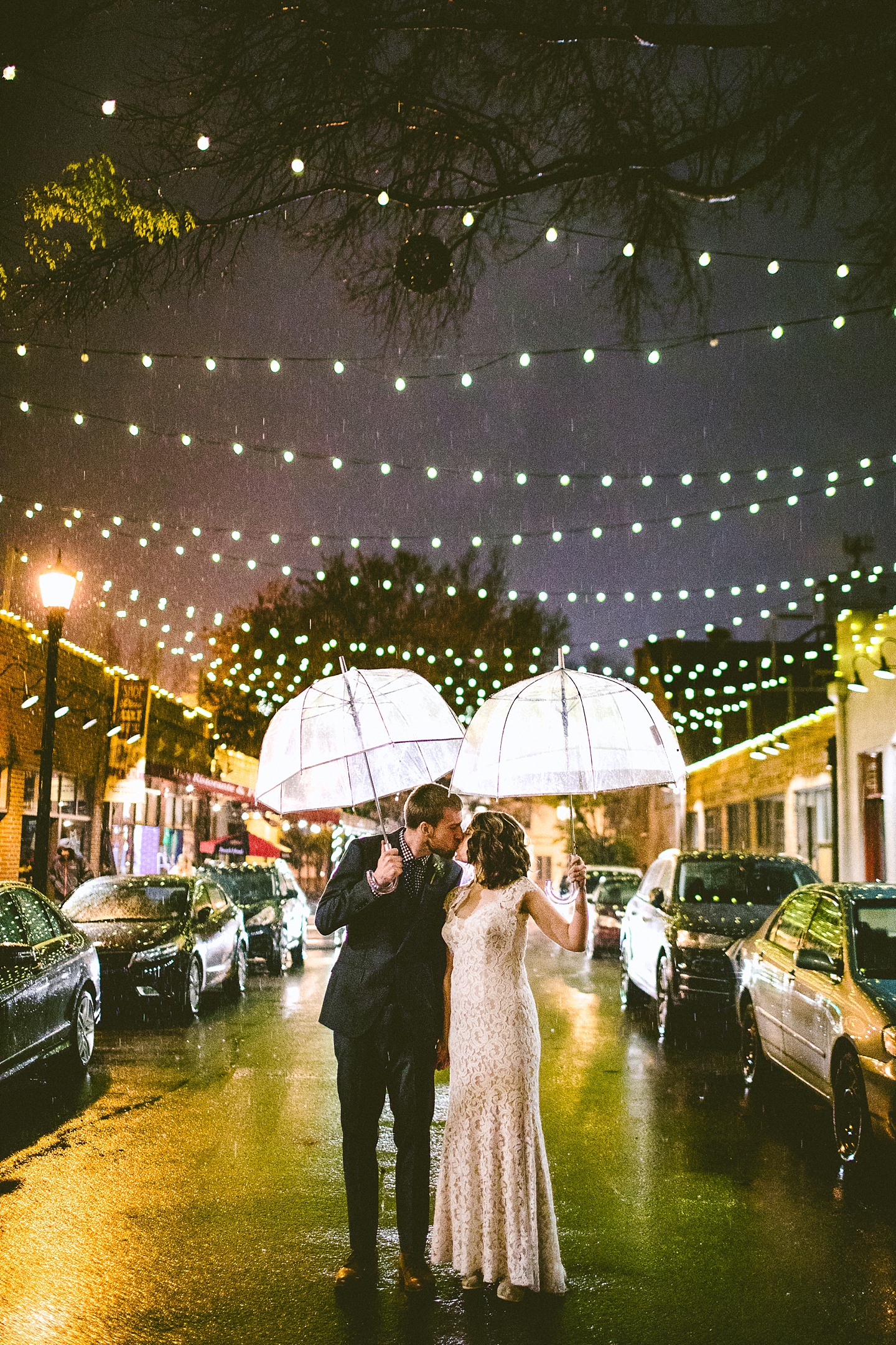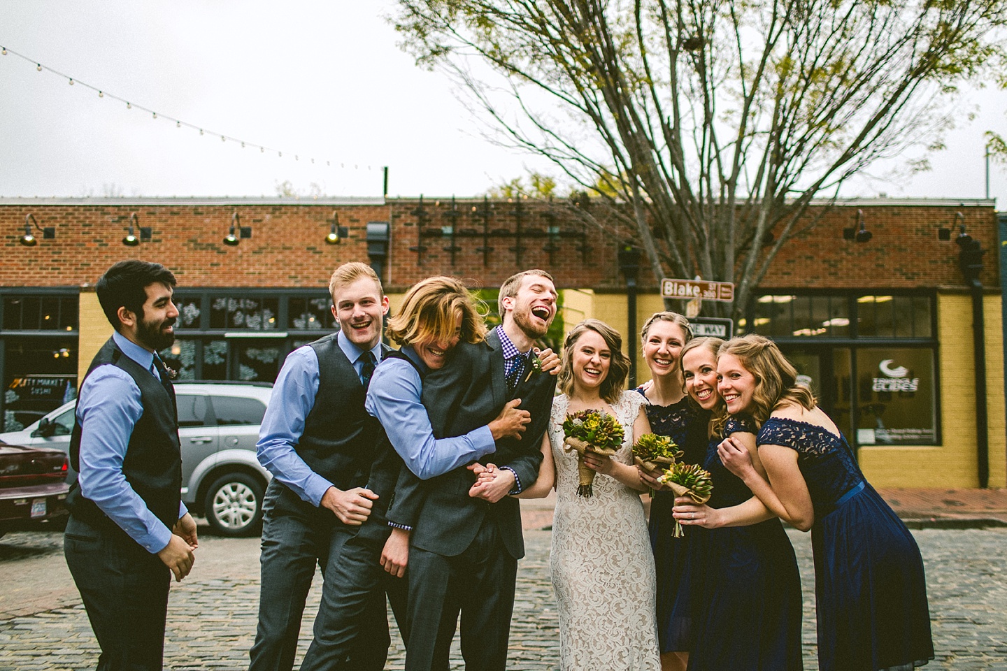 Because Melissa and Jackson are so badass, they stayed super positive and super wonderful and super friendly despite all of this! And so did their bridal party! And it was cold! And wet! And YET WE MARCHED ON. Equipped with nothing but clear umbrellas and a will of steel, we blocked traffic in City Market and did what we came there to do. We took pictures in that plain yellow alley that used to have the fish! BOOM! Then a car moved and we were able to shoot in front of the weird veggie faces wall! BAM! And Melissa’s dress was absolutely soaked afterward and so were her shoes, so we called in a favor to the wonderful ladies we just photographed at the Design Gallery Salon just recently, and they were so kind as to throw Melissa’s Toms in a dryer for a few minutes while they used several blow dryers on the bottom of her dress. :) TA-DA!