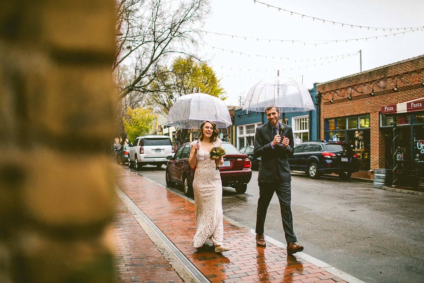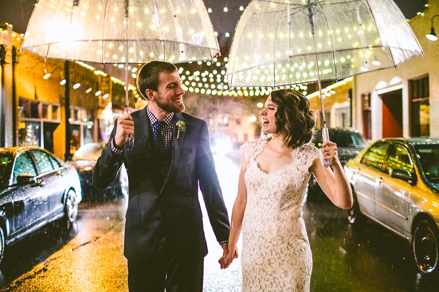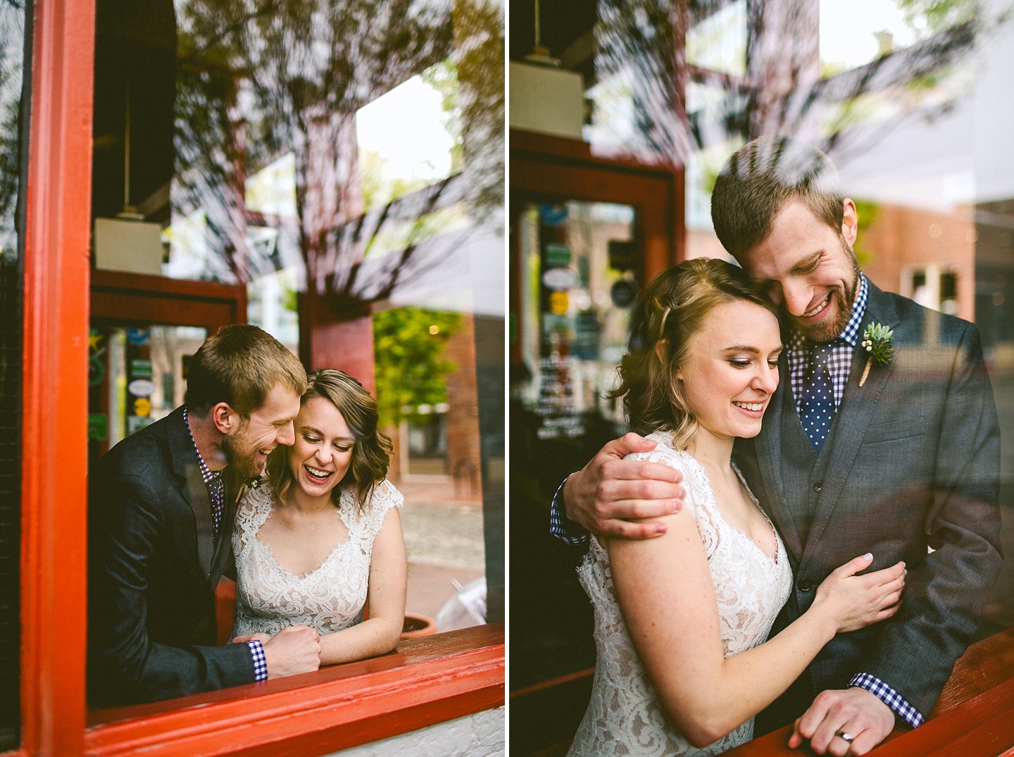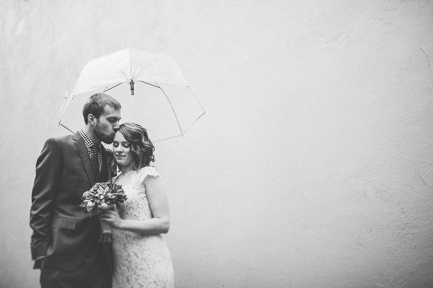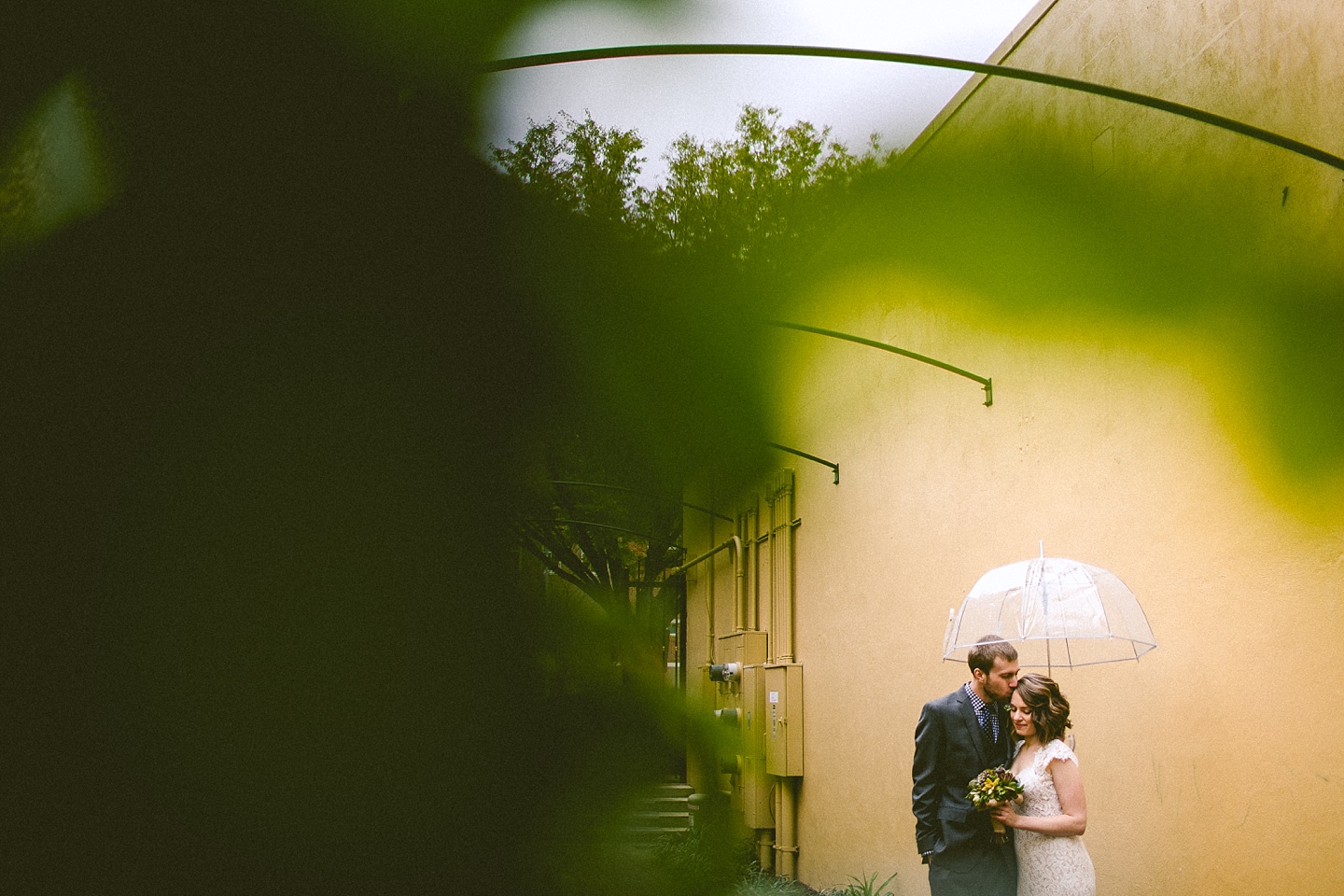 Because Melissa and Jackson are so badass, they stayed super positive and super wonderful and super friendly despite all of this! And so did their bridal party! And it was cold! And wet! And YET WE MARCHED ON. Equipped with nothing but clear umbrellas and a will of steel, we blocked traffic in City Market and did what we came there to do. We took pictures in that plain yellow alley that used to have the fish! BOOM! Then a car moved and we were able to shoot in front of the weird veggie faces wall! BAM! And Melissa’s dress was absolutely soaked afterward and so were her shoes, so we called in a favor to the wonderful ladies we just photographed at the Design Gallery Salon just recently, and they were so kind as to throw Melissa’s Toms in a dryer for a few minutes while they used several blow dryers on the bottom of her dress. :) TA-DA!