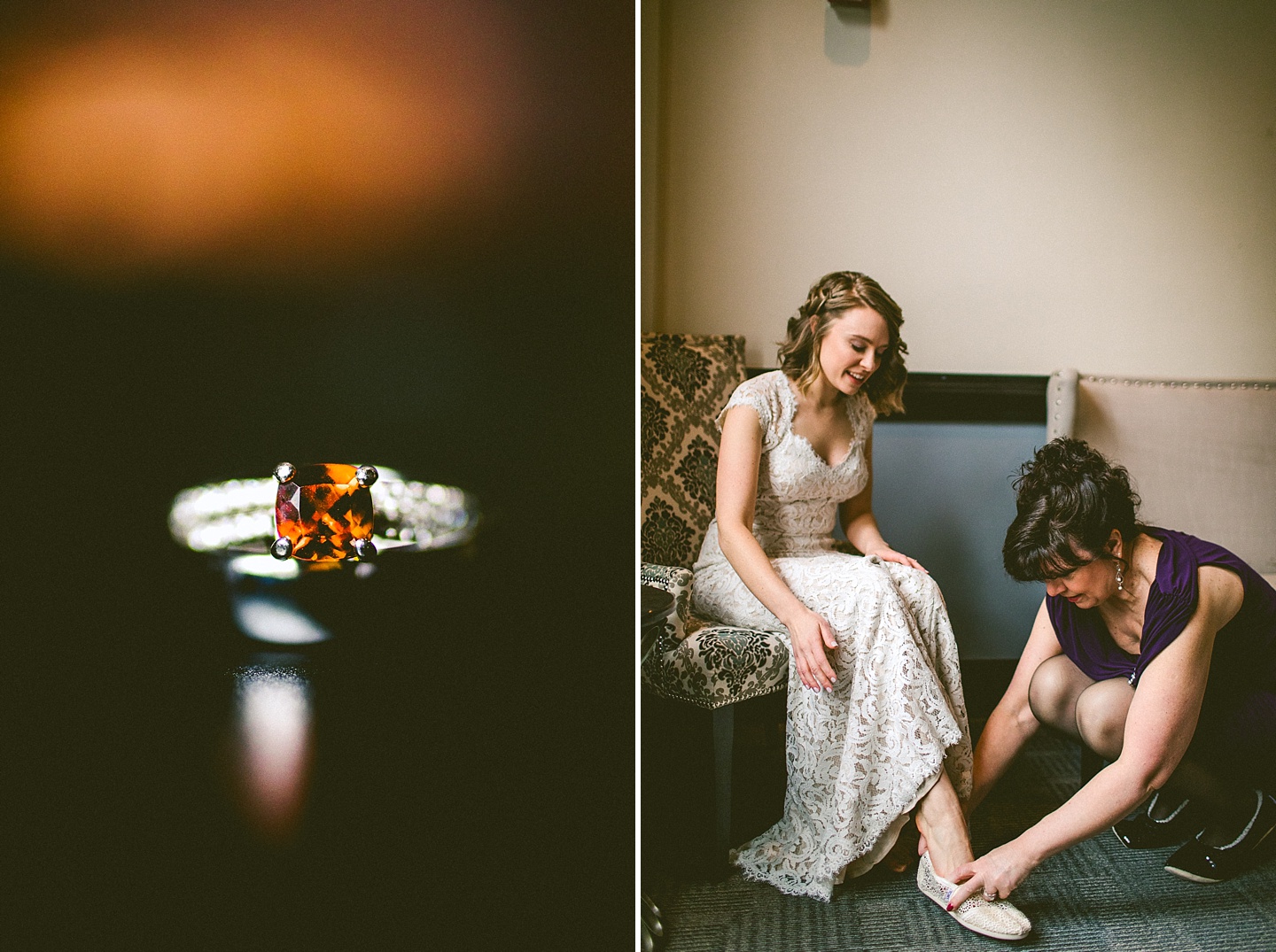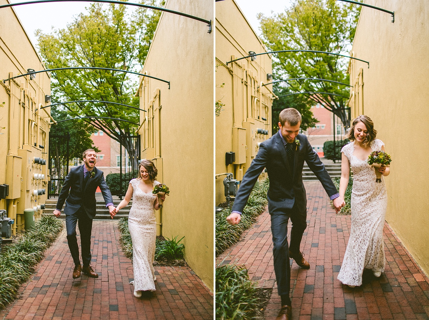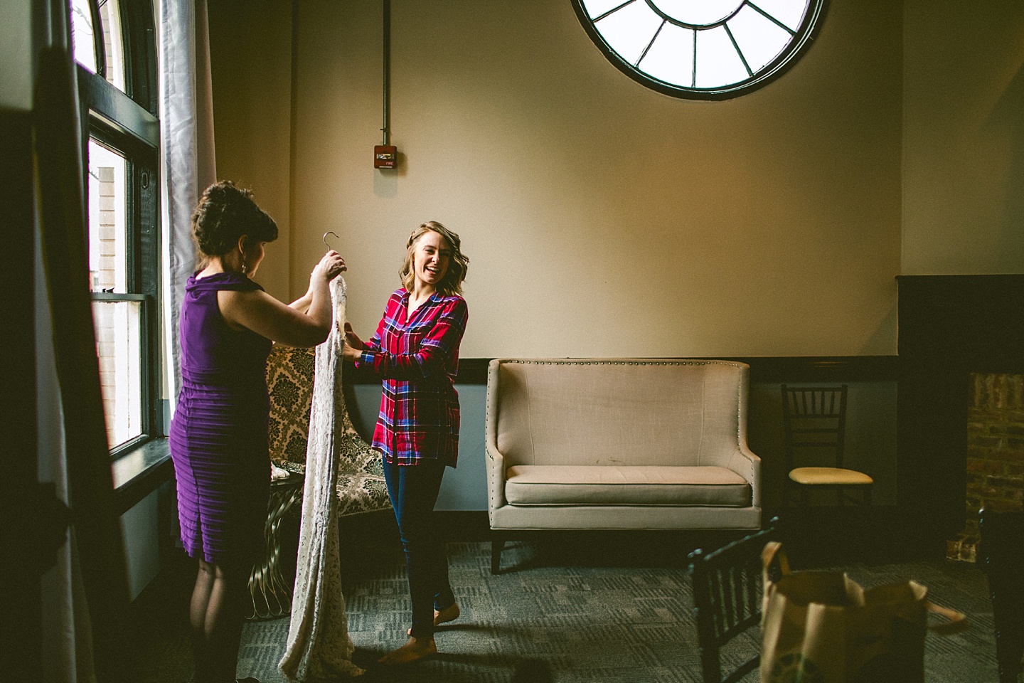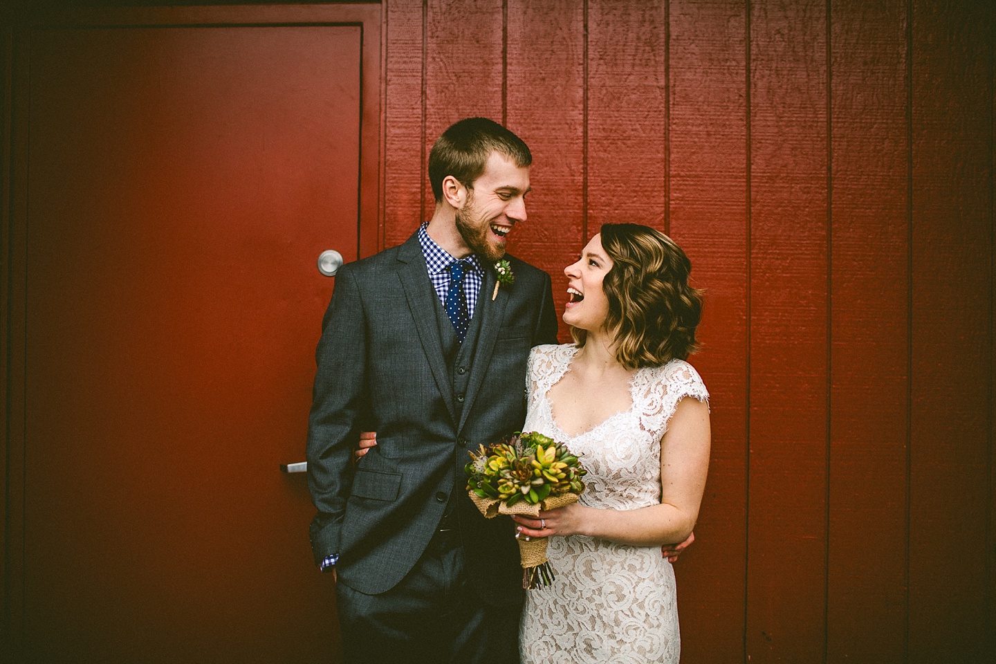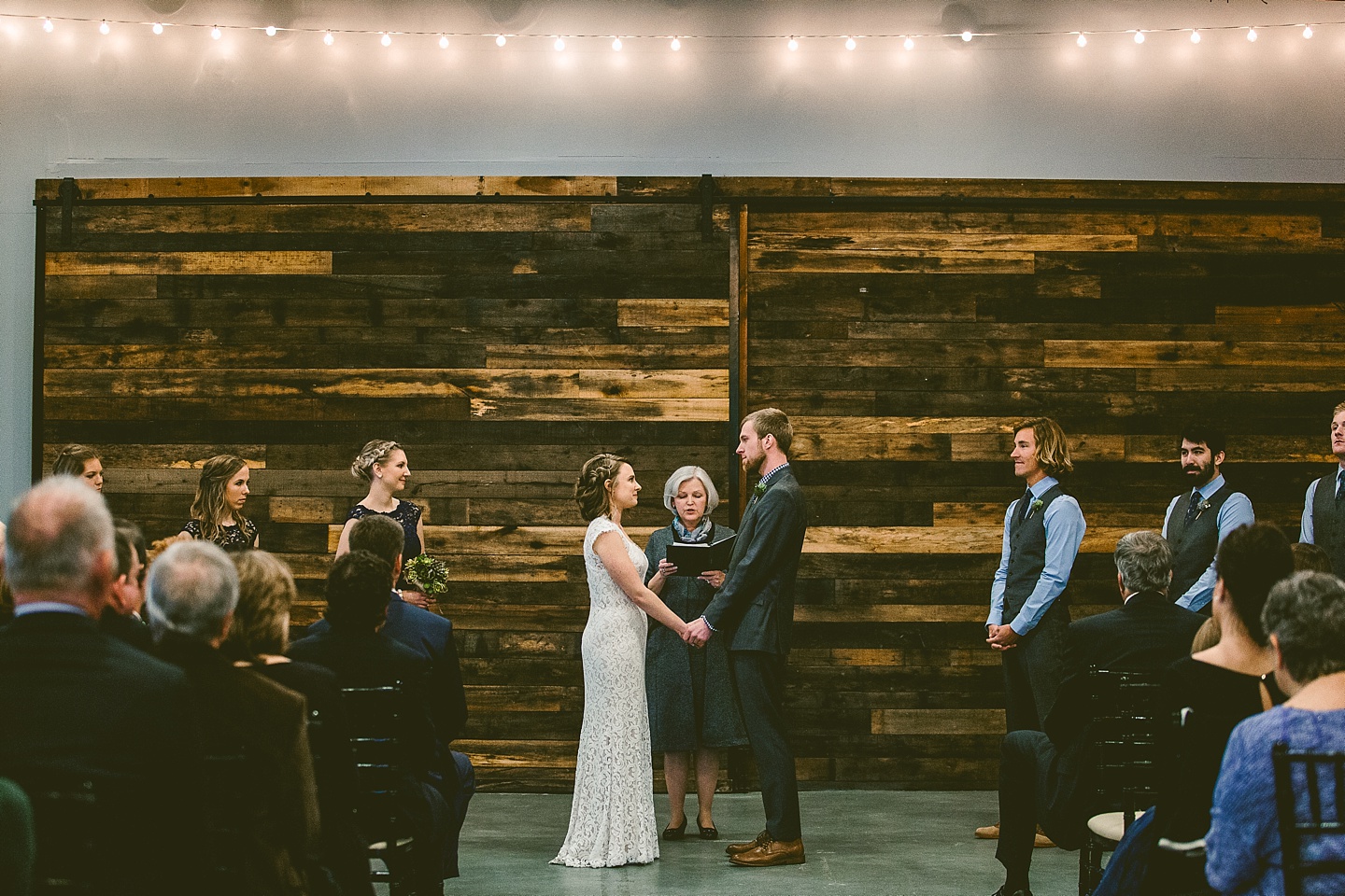 Because Melissa and Jackson are so badass, they stayed super positive and super wonderful and super friendly despite all of this! And so did their bridal party! And it was cold! And wet! And YET WE MARCHED ON. Equipped with nothing but clear umbrellas and a will of steel, we blocked traffic in City Market and did what we came there to do. We took pictures in that plain yellow alley that used to have the fish! BOOM! Then a car moved and we were able to shoot in front of the weird veggie faces wall! BAM! And Melissa’s dress was absolutely soaked afterward and so were her shoes, so we called in a favor to the wonderful ladies we just photographed at the Design Gallery Salon just recently, and they were so kind as to throw Melissa’s Toms in a dryer for a few minutes while they used several blow dryers on the bottom of her dress. :) TA-DA!