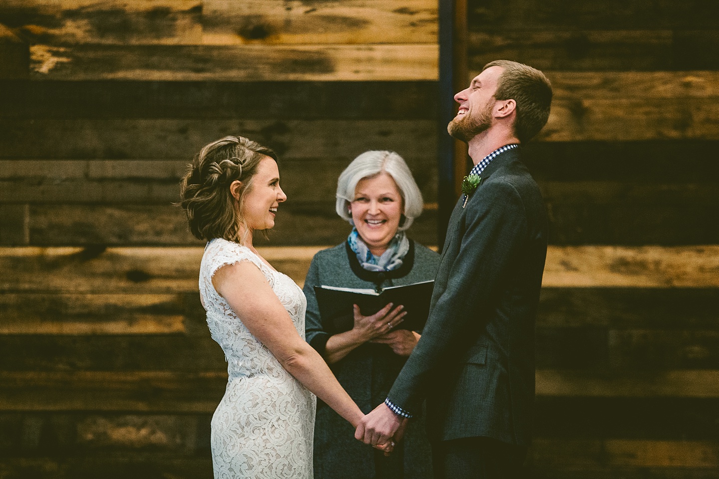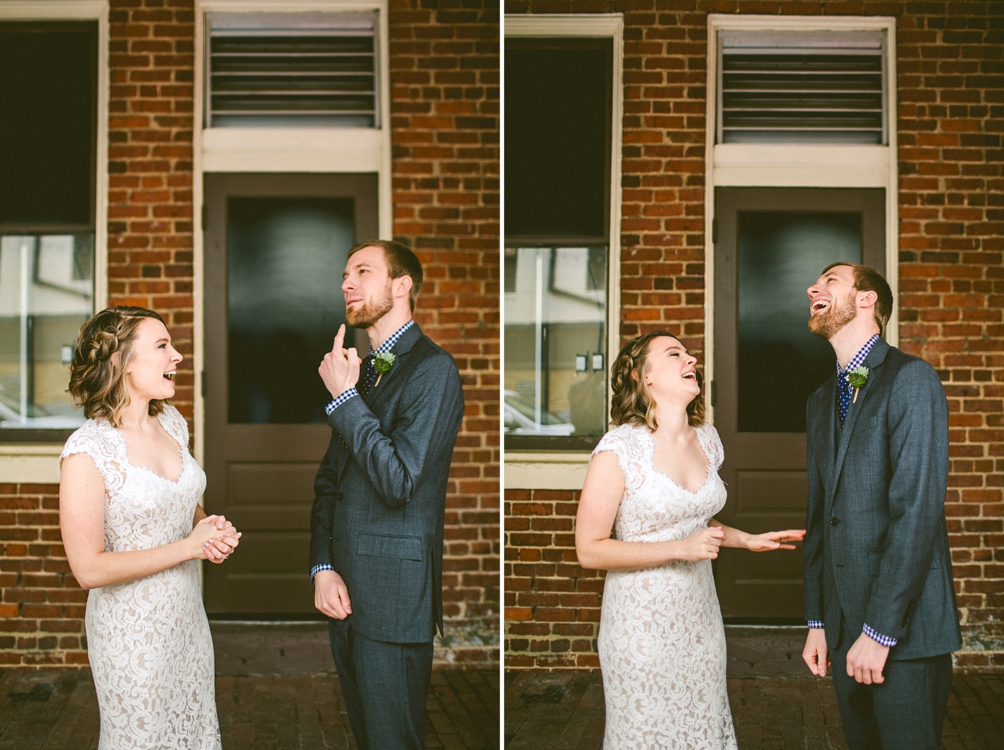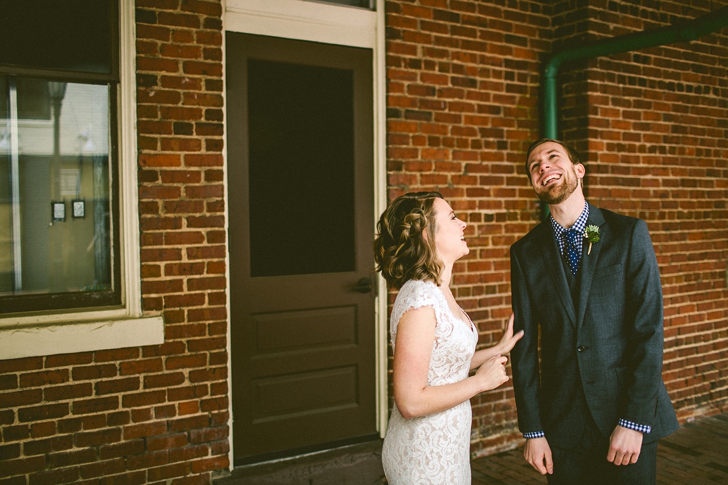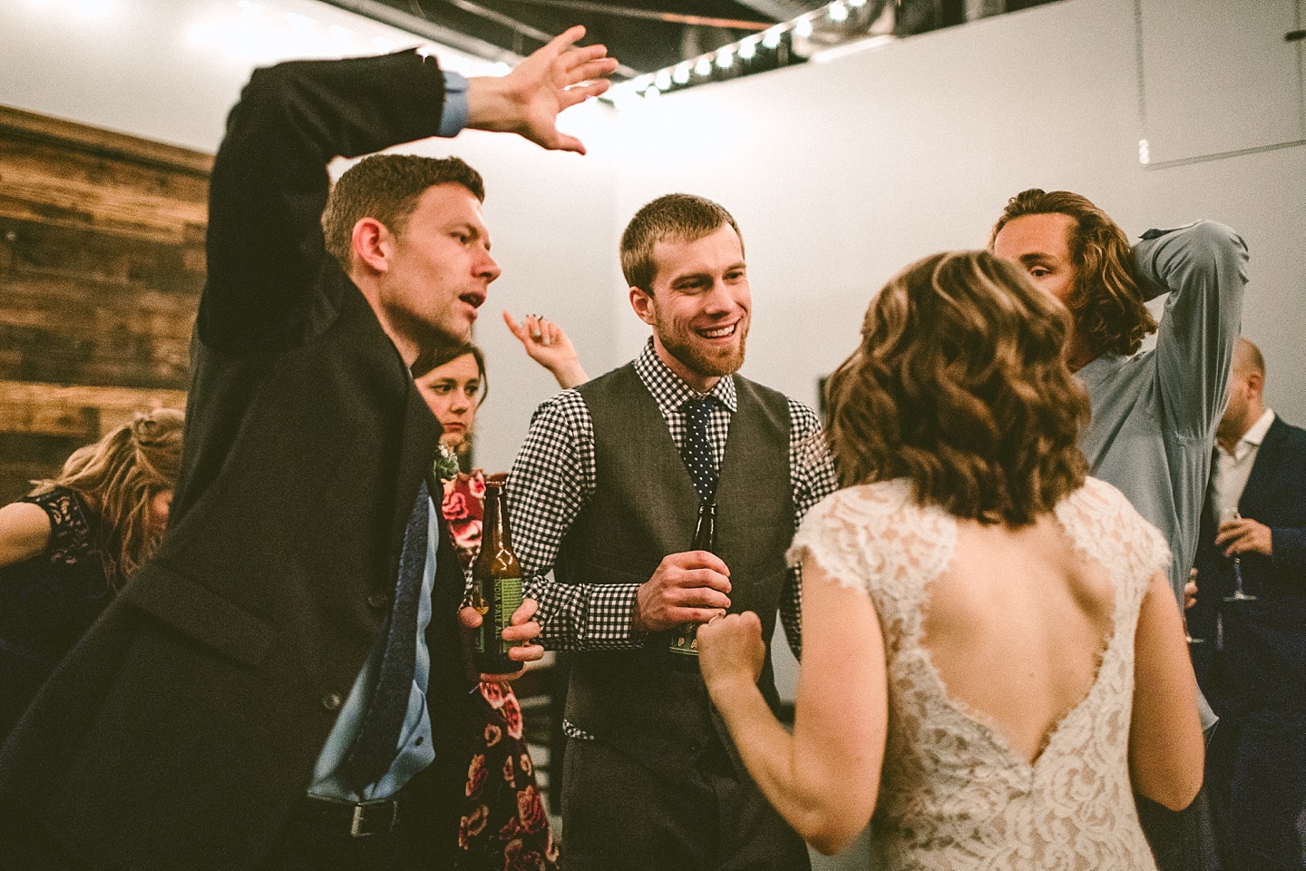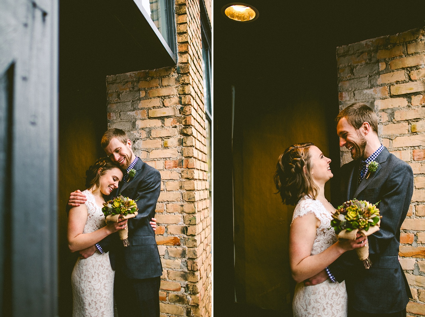 Because Melissa and Jackson are so badass, they stayed super positive and super wonderful and super friendly despite all of this! And so did their bridal party! And it was cold! And wet! And YET WE MARCHED ON. Equipped with nothing but clear umbrellas and a will of steel, we blocked traffic in City Market and did what we came there to do. We took pictures in that plain yellow alley that used to have the fish! BOOM! Then a car moved and we were able to shoot in front of the weird veggie faces wall! BAM! And Melissa’s dress was absolutely soaked afterward and so were her shoes, so we called in a favor to the wonderful ladies we just photographed at the Design Gallery Salon just recently, and they were so kind as to throw Melissa’s Toms in a dryer for a few minutes while they used several blow dryers on the bottom of her dress. :) TA-DA!