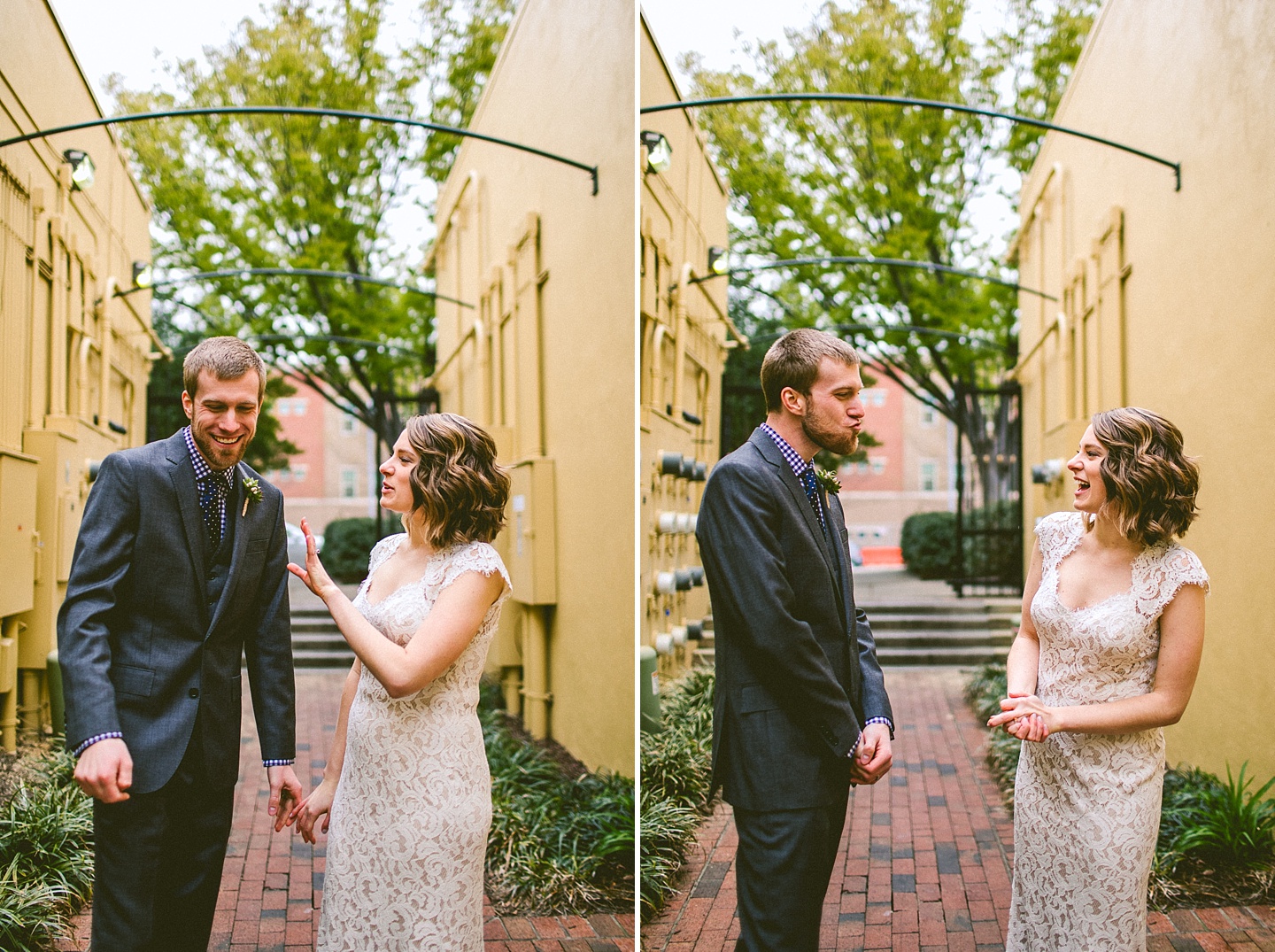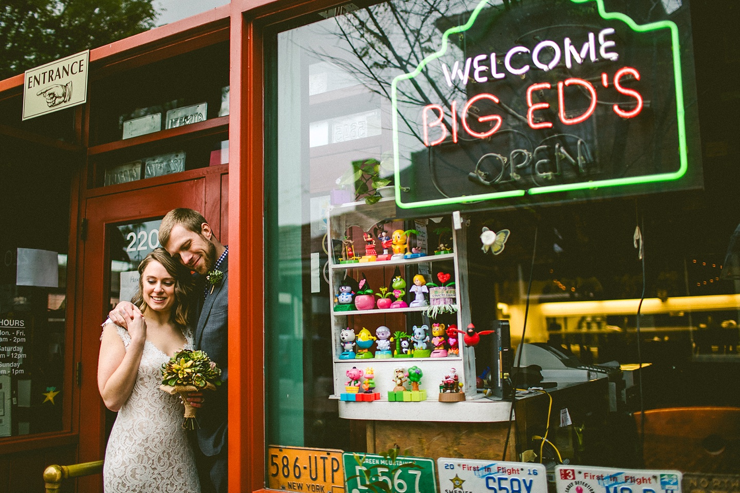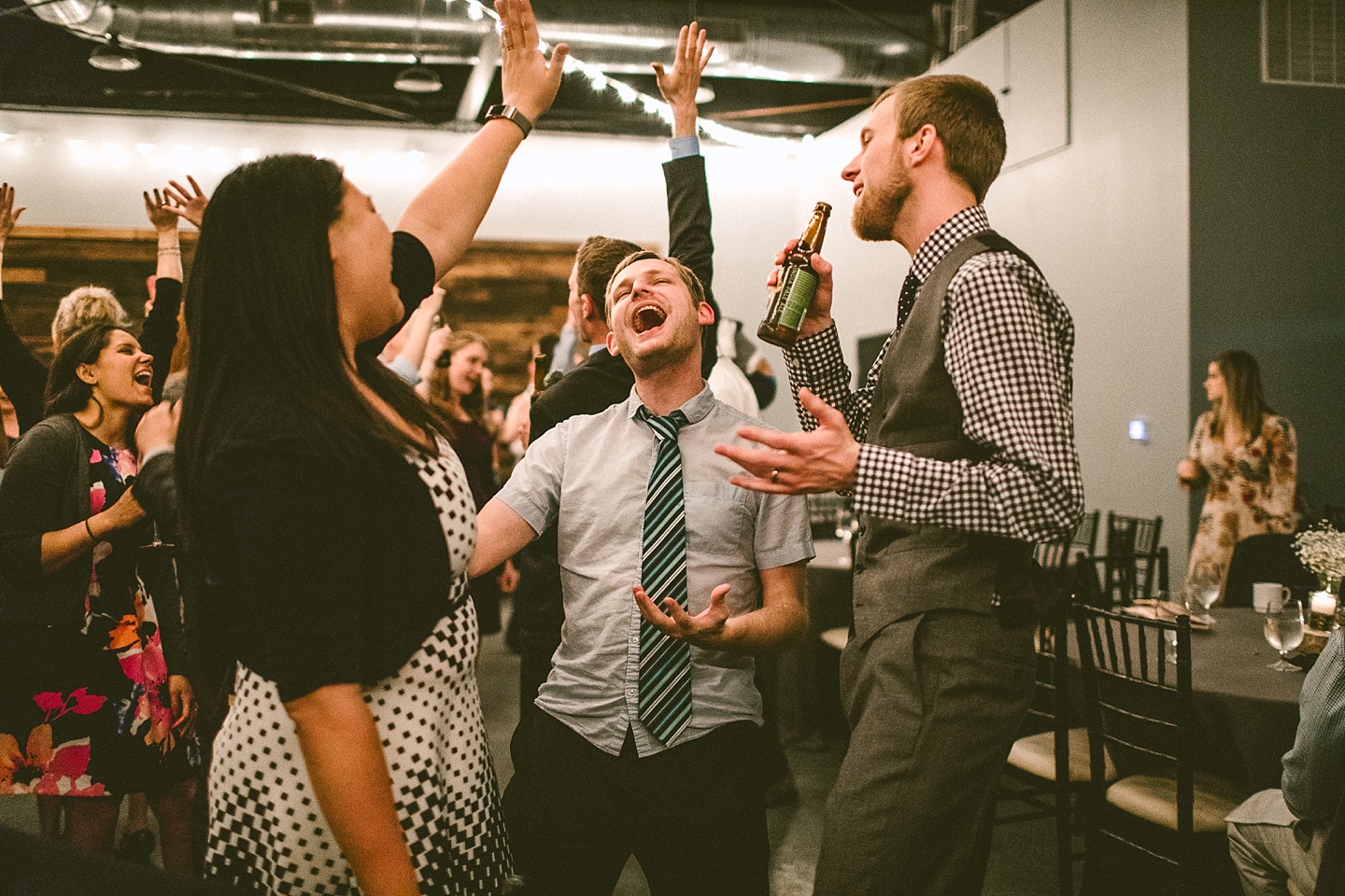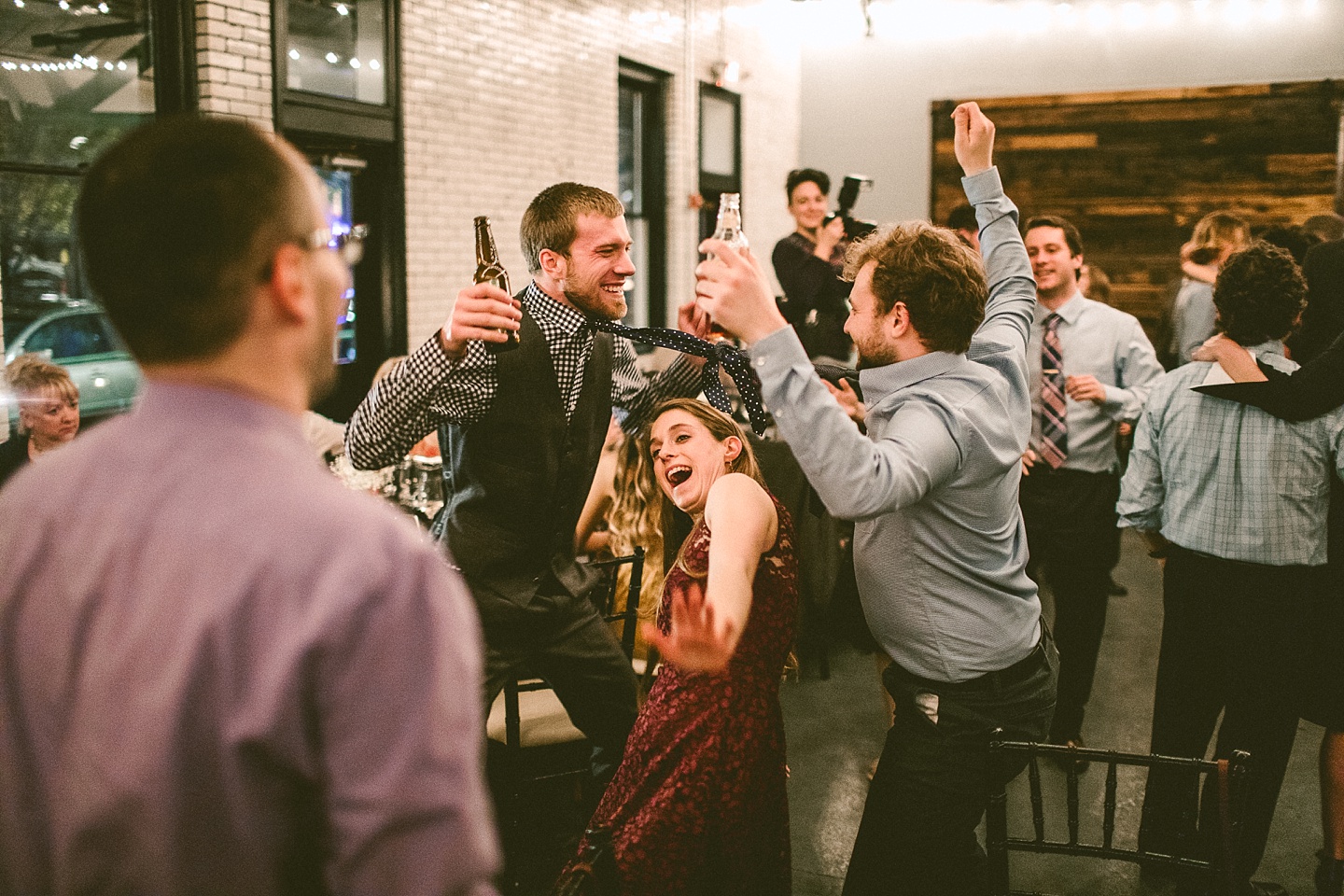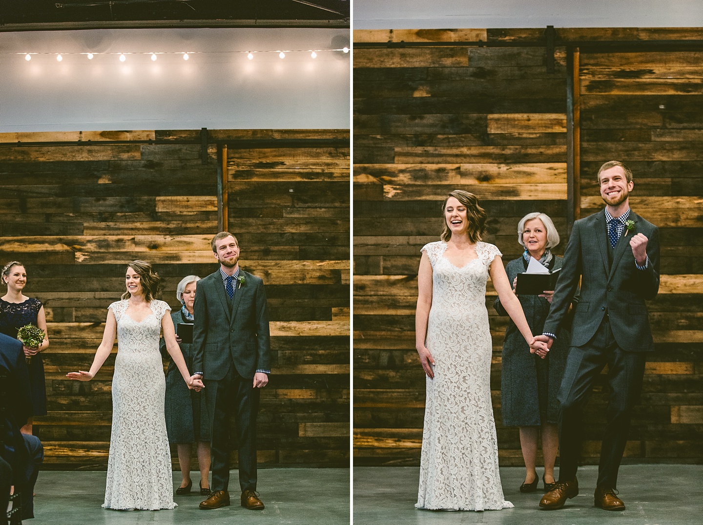 Because Melissa and Jackson are so badass, they stayed super positive and super wonderful and super friendly despite all of this! And so did their bridal party! And it was cold! And wet! And YET WE MARCHED ON. Equipped with nothing but clear umbrellas and a will of steel, we blocked traffic in City Market and did what we came there to do. We took pictures in that plain yellow alley that used to have the fish! BOOM! Then a car moved and we were able to shoot in front of the weird veggie faces wall! BAM! And Melissa’s dress was absolutely soaked afterward and so were her shoes, so we called in a favor to the wonderful ladies we just photographed at the Design Gallery Salon just recently, and they were so kind as to throw Melissa’s Toms in a dryer for a few minutes while they used several blow dryers on the bottom of her dress. :) TA-DA!