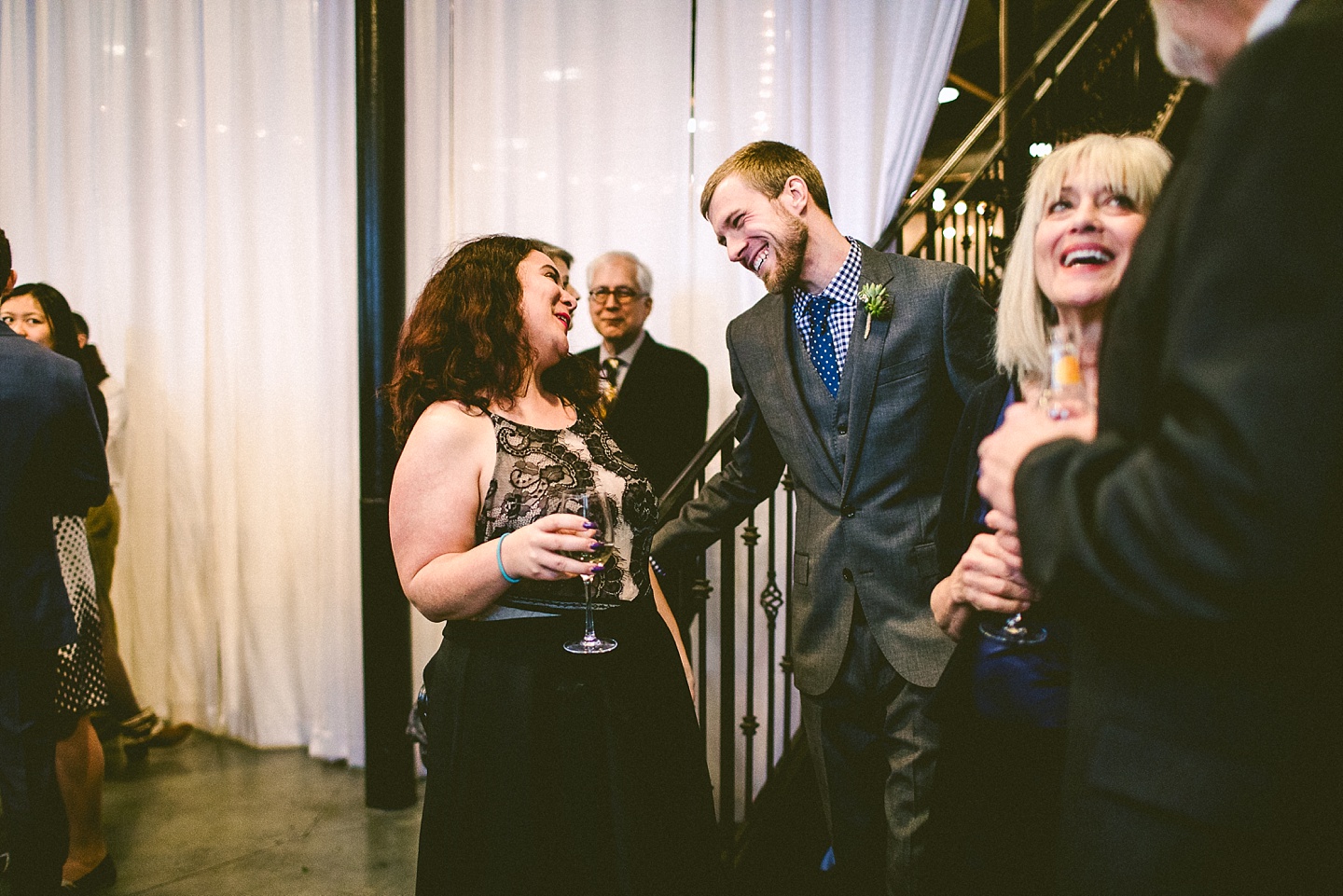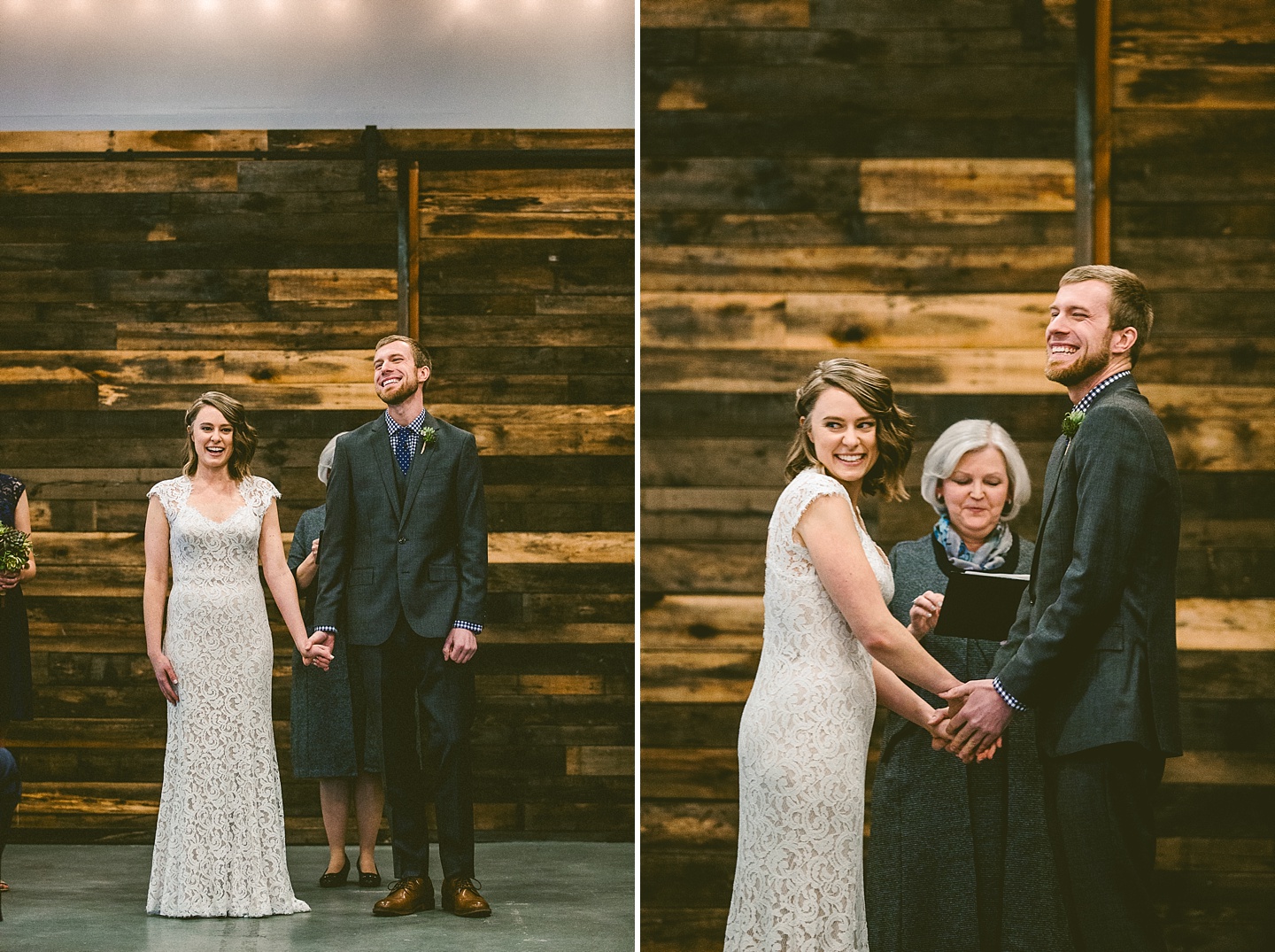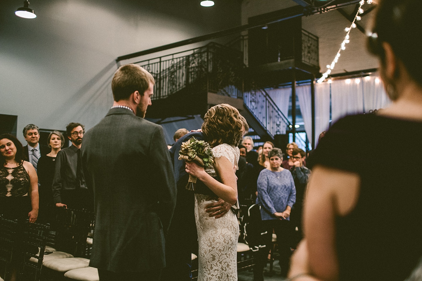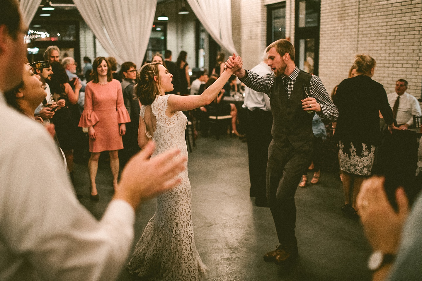 Because Melissa and Jackson are so badass, they stayed super positive and super wonderful and super friendly despite all of this! And so did their bridal party! And it was cold! And wet! And YET WE MARCHED ON. Equipped with nothing but clear umbrellas and a will of steel, we blocked traffic in City Market and did what we came there to do. We took pictures in that plain yellow alley that used to have the fish! BOOM! Then a car moved and we were able to shoot in front of the weird veggie faces wall! BAM! And Melissa’s dress was absolutely soaked afterward and so were her shoes, so we called in a favor to the wonderful ladies we just photographed at the Design Gallery Salon just recently, and they were so kind as to throw Melissa’s Toms in a dryer for a few minutes while they used several blow dryers on the bottom of her dress. :) TA-DA!