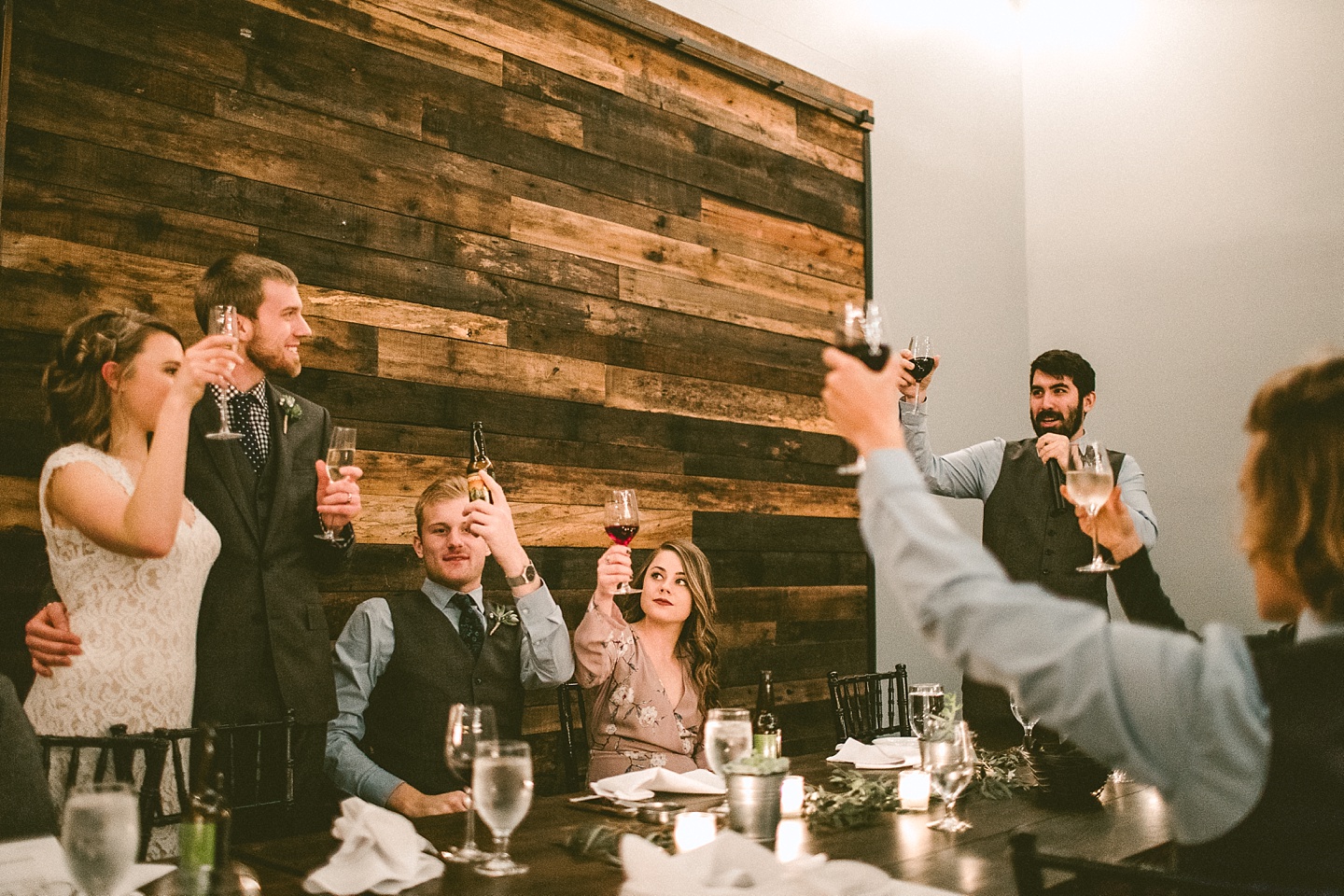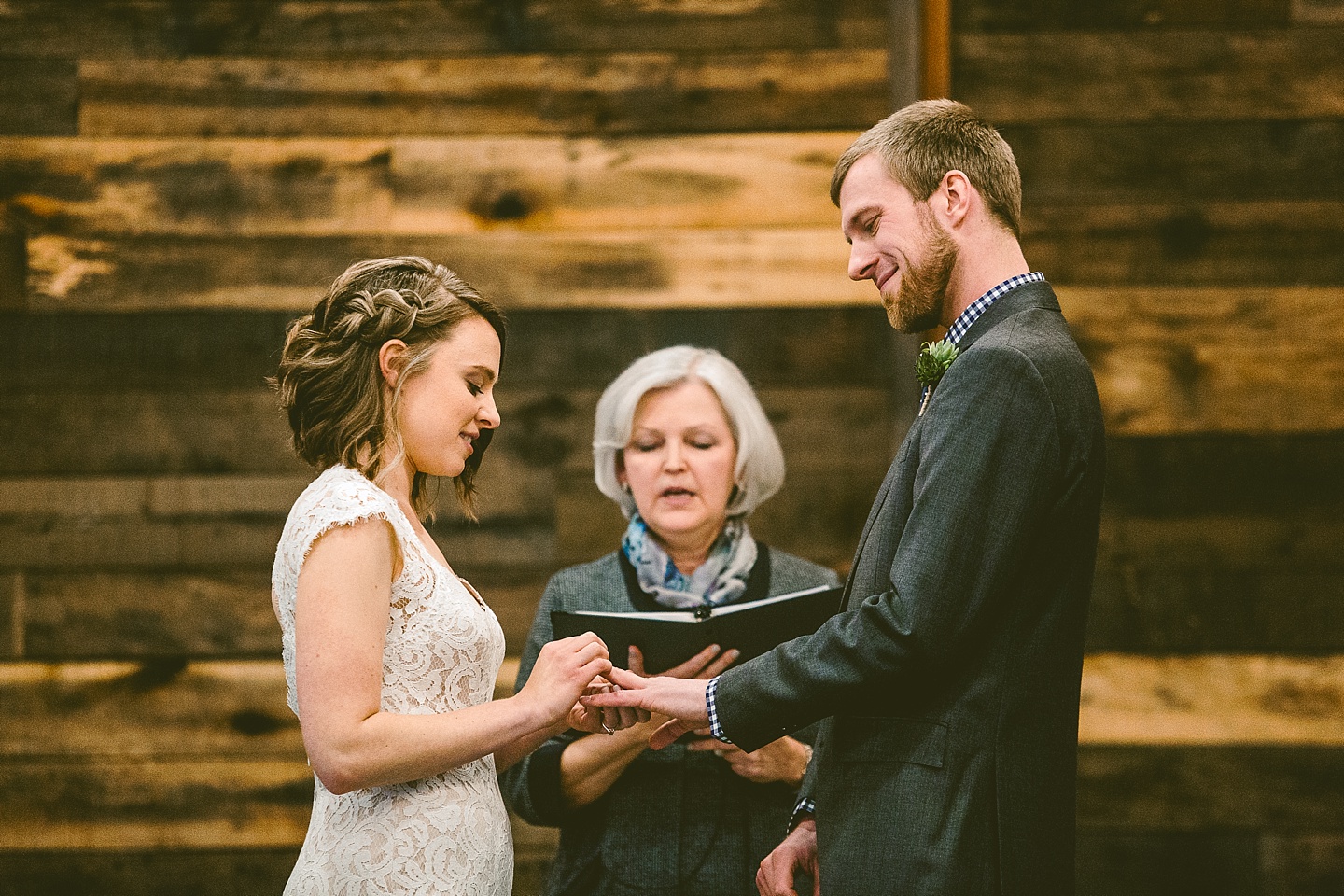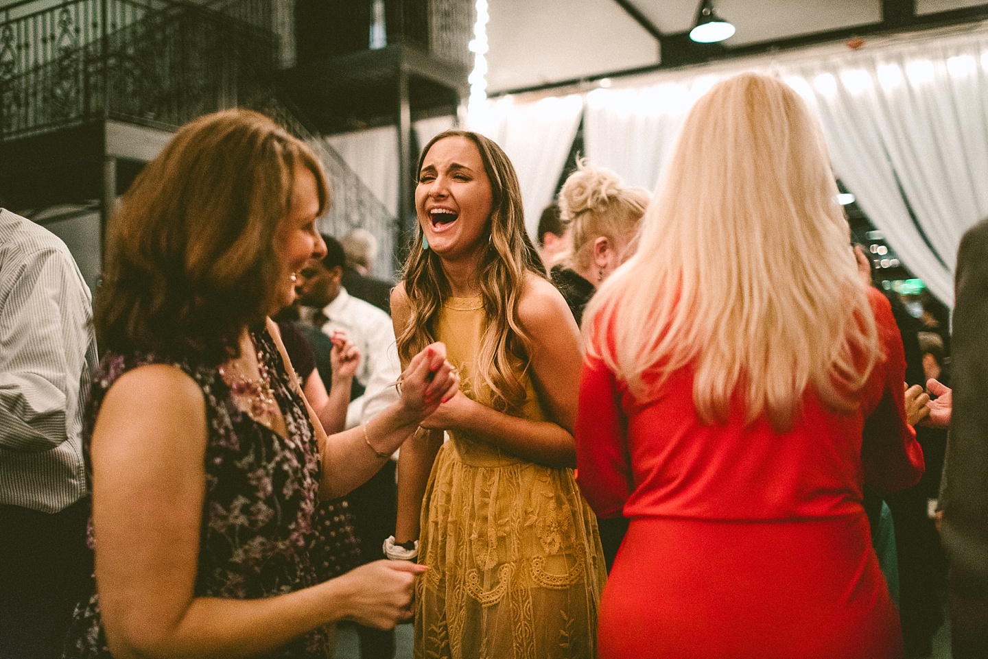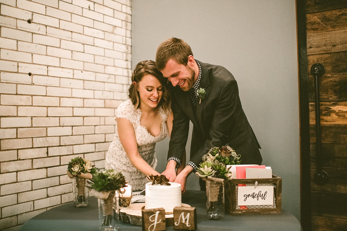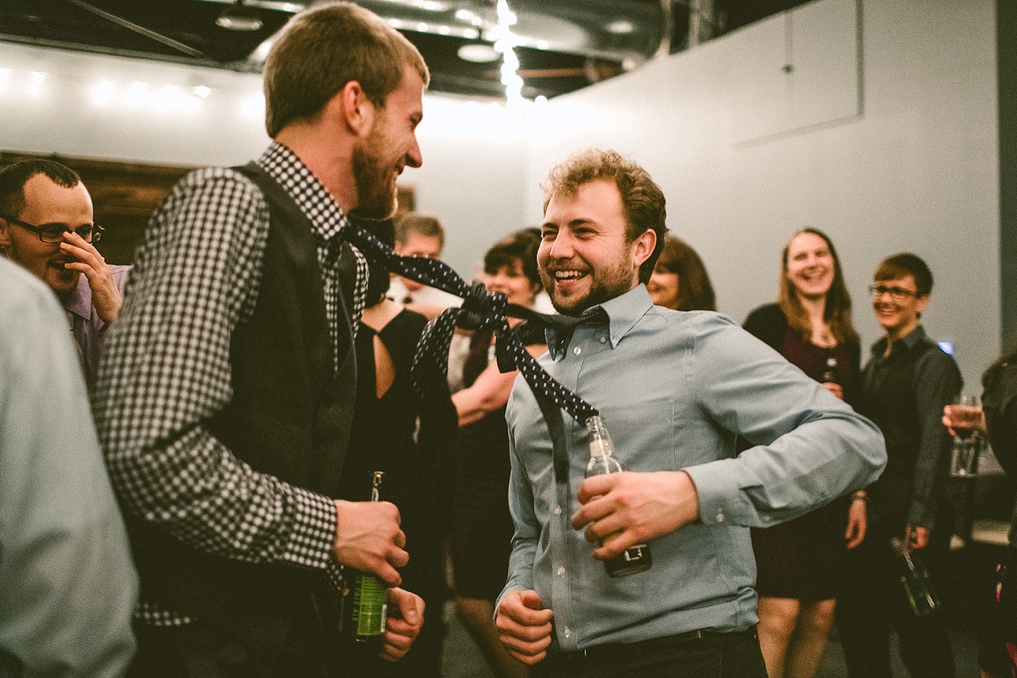 Because Melissa and Jackson are so badass, they stayed super positive and super wonderful and super friendly despite all of this! And so did their bridal party! And it was cold! And wet! And YET WE MARCHED ON. Equipped with nothing but clear umbrellas and a will of steel, we blocked traffic in City Market and did what we came there to do. We took pictures in that plain yellow alley that used to have the fish! BOOM! Then a car moved and we were able to shoot in front of the weird veggie faces wall! BAM! And Melissa’s dress was absolutely soaked afterward and so were her shoes, so we called in a favor to the wonderful ladies we just photographed at the Design Gallery Salon just recently, and they were so kind as to throw Melissa’s Toms in a dryer for a few minutes while they used several blow dryers on the bottom of her dress. :) TA-DA!