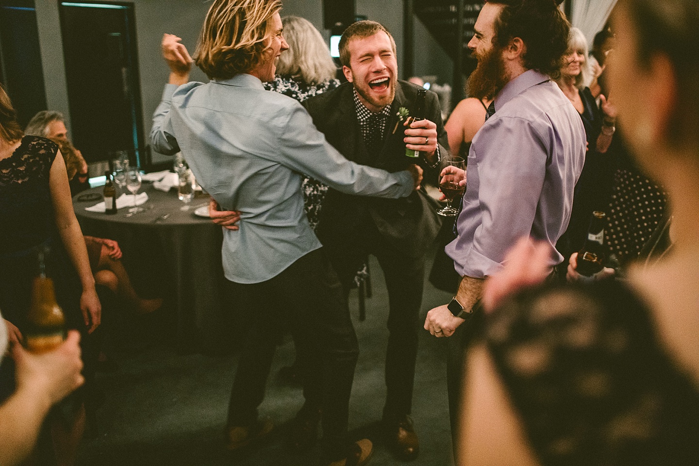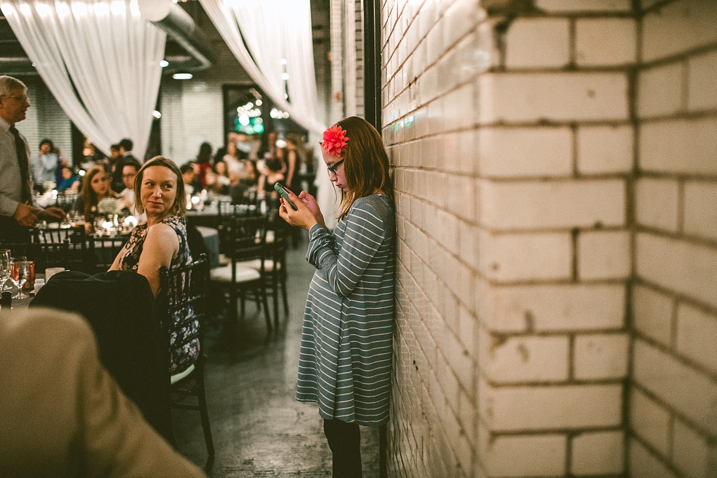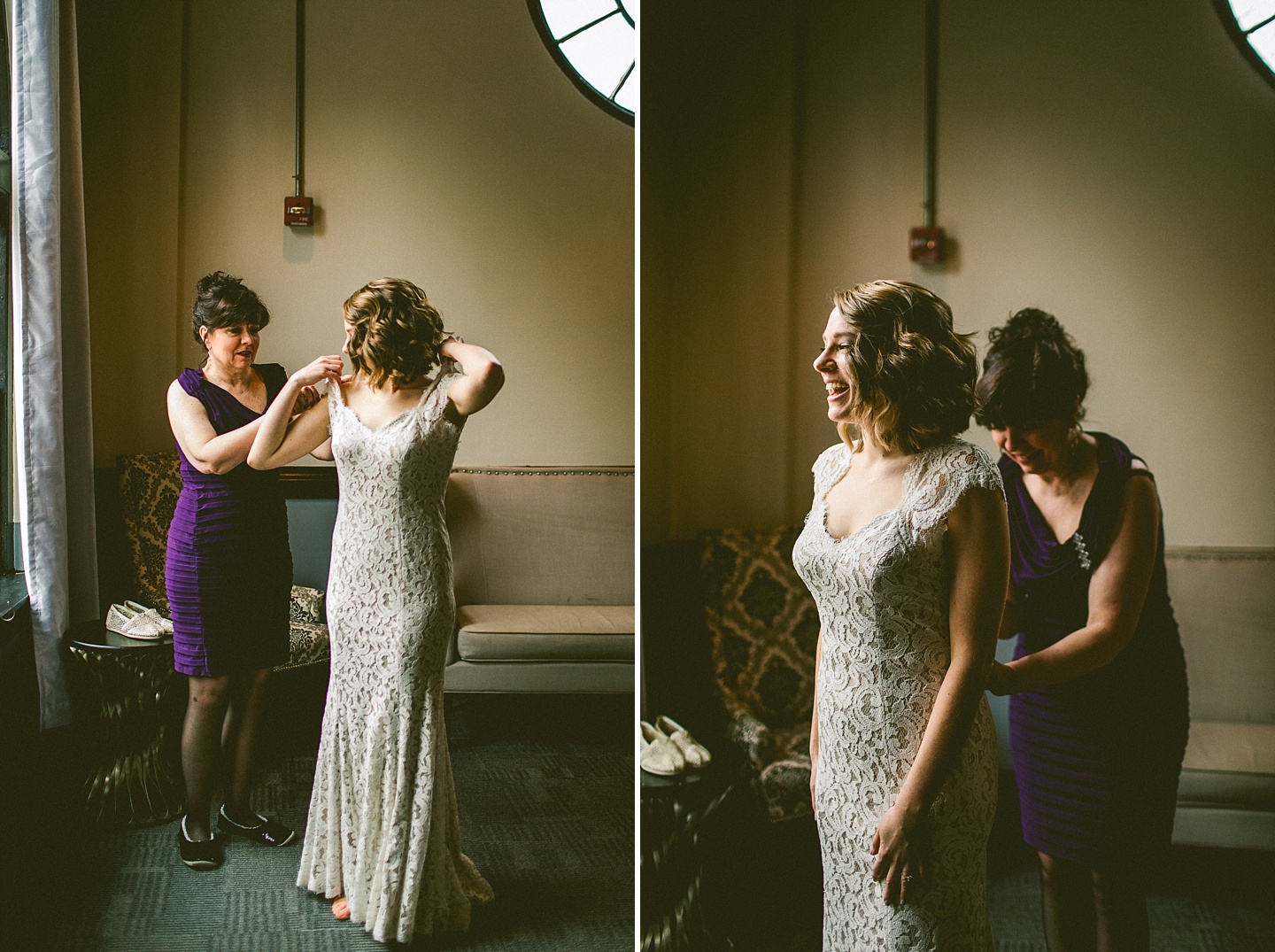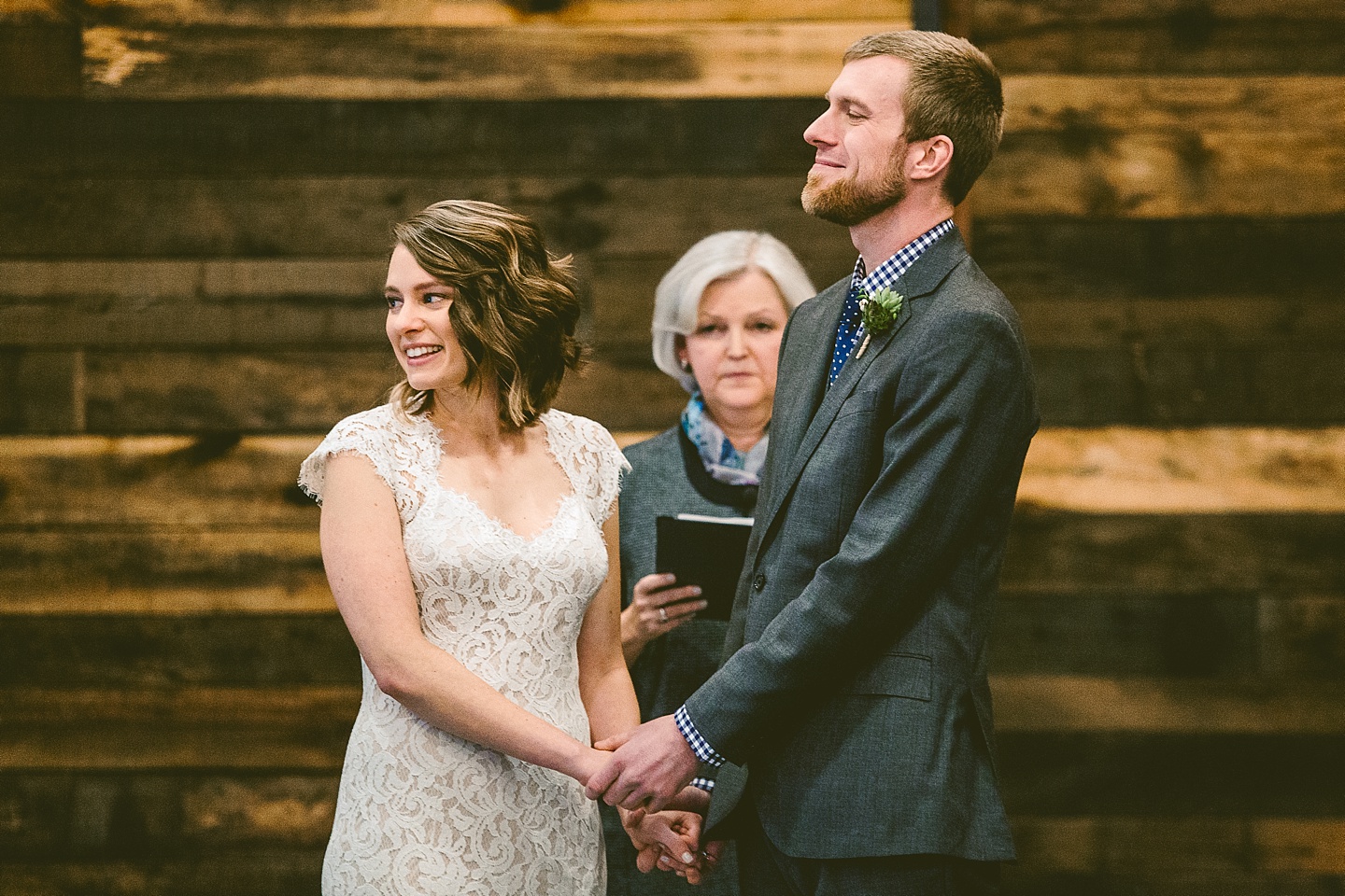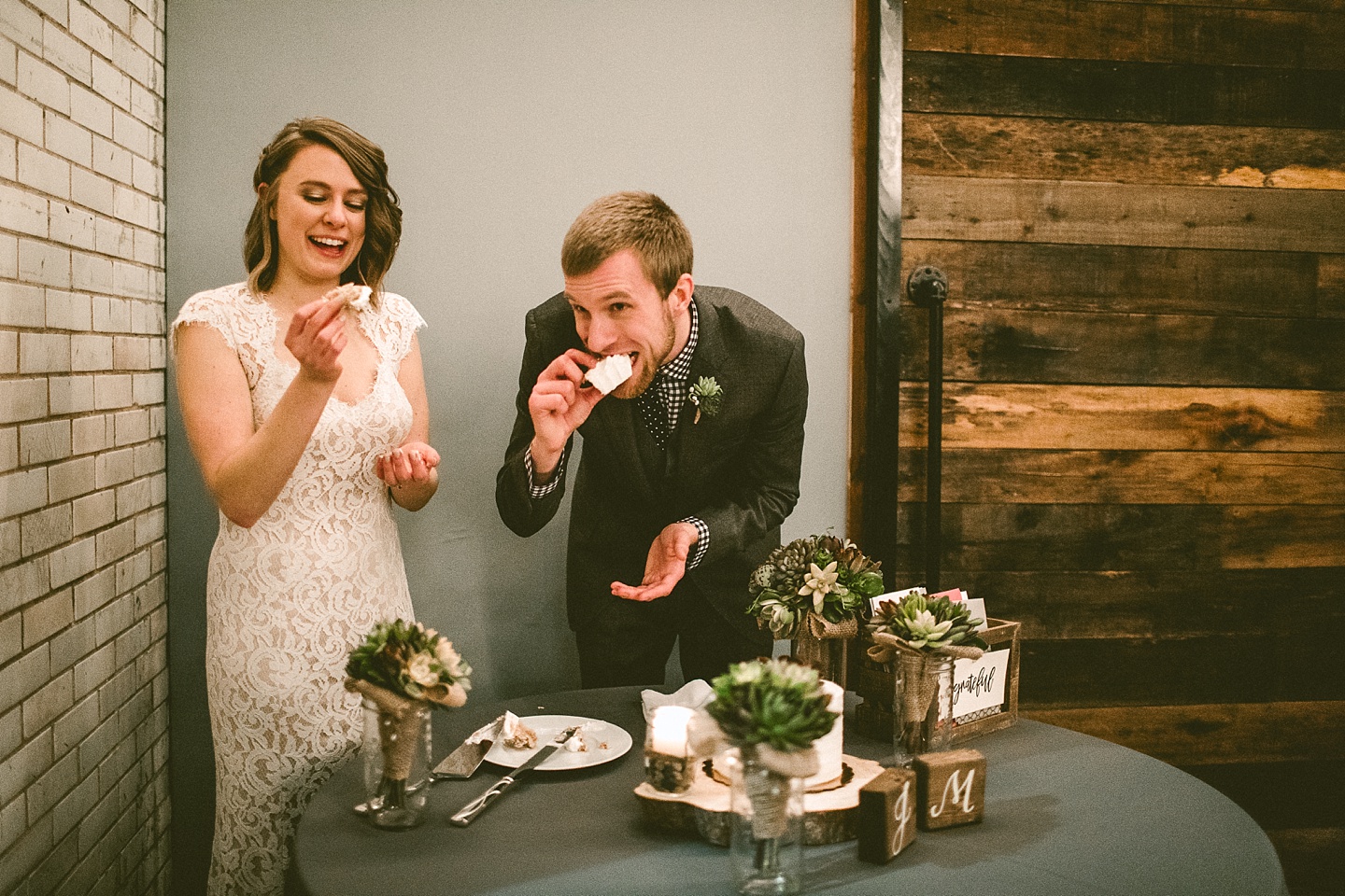 Because Melissa and Jackson are so badass, they stayed super positive and super wonderful and super friendly despite all of this! And so did their bridal party! And it was cold! And wet! And YET WE MARCHED ON. Equipped with nothing but clear umbrellas and a will of steel, we blocked traffic in City Market and did what we came there to do. We took pictures in that plain yellow alley that used to have the fish! BOOM! Then a car moved and we were able to shoot in front of the weird veggie faces wall! BAM! And Melissa’s dress was absolutely soaked afterward and so were her shoes, so we called in a favor to the wonderful ladies we just photographed at the Design Gallery Salon just recently, and they were so kind as to throw Melissa’s Toms in a dryer for a few minutes while they used several blow dryers on the bottom of her dress. :) TA-DA!