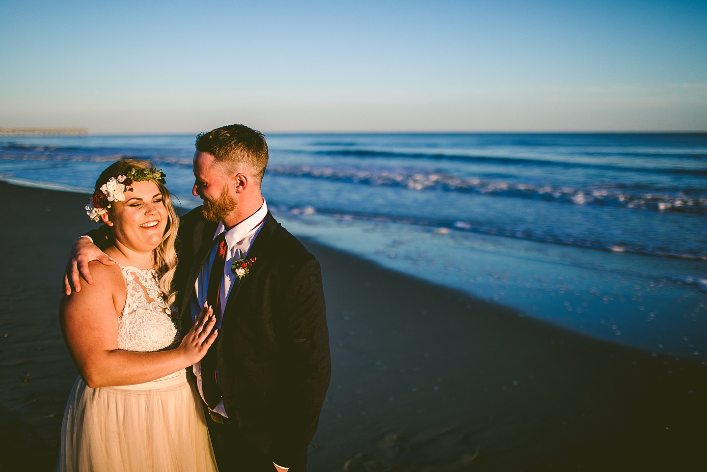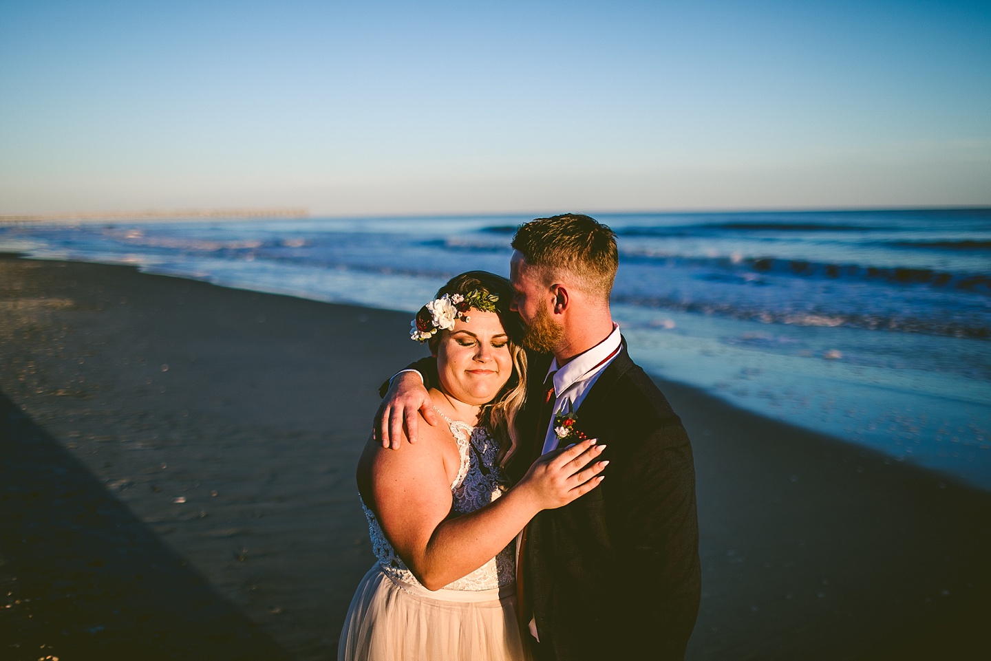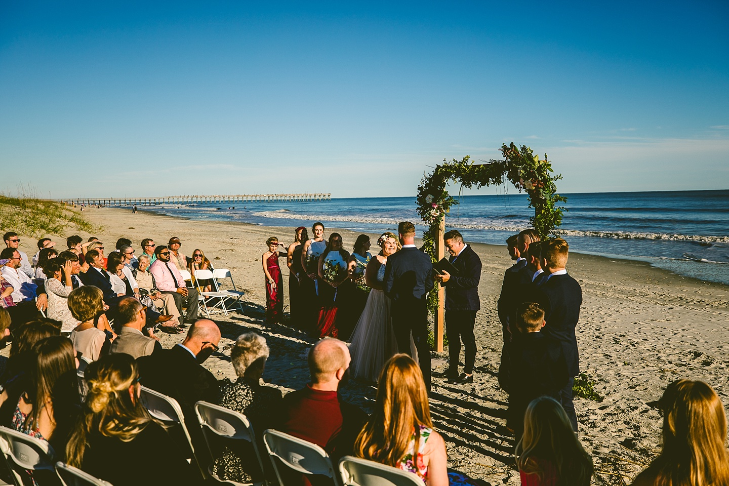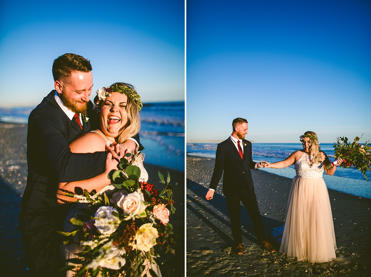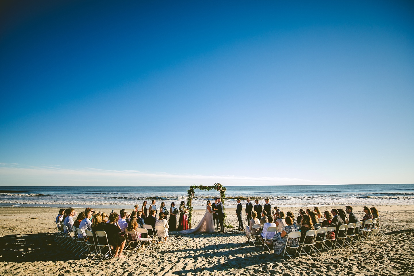Jessica and Andrew hail all the way up from Minnesota! And, like all Minnesota people I’ve encountered in my lifetime, they are exceedingly nice and can also tolerate much colder temperatures than me. These guys are avid travelers, and they wanted to share the joy of traveling with their family and friends, so they decided to hold their wedding in Ocean Isle, NC and have everyone join them. They rented an enormous and gorgeously updated beach house, and had a ceremony out by the ocean. It was a sunny and clear day while Jess and Andrew strolled along the beach in the sunset with me and videographer Matt from Dogwood Media shouting “Dope dope dope” at them… which is, I’m pretty sure, exactly what they pictured their wedding day being like. We had a ridiculous amount of fun with these guys. And look at how pretty they are. Just look at them. SO PRETTY. Jessica’s dress was gorgeous and I had a fun time making her spin around repeatedly and then trying to shake the sand out of the tulle. They then danced the night away with a super fun group of people who love to pretend they’re all jumping rope at the reception. We are so glad that they asked us to join them out in Ocean Isle – we had never been to that part of the NC coast before (we’re originally from Pittsburgh so still have much of this state to explore) and we loved it! It was clear of people and the light is beautiful out there in November, and the beach is pristine in every direction. We’re so happy and grateful these guys chose North Carolina and chose US to be with them for their wedding day. Congratulations to you both! You beautiful people you.