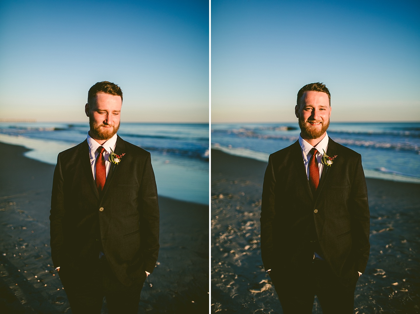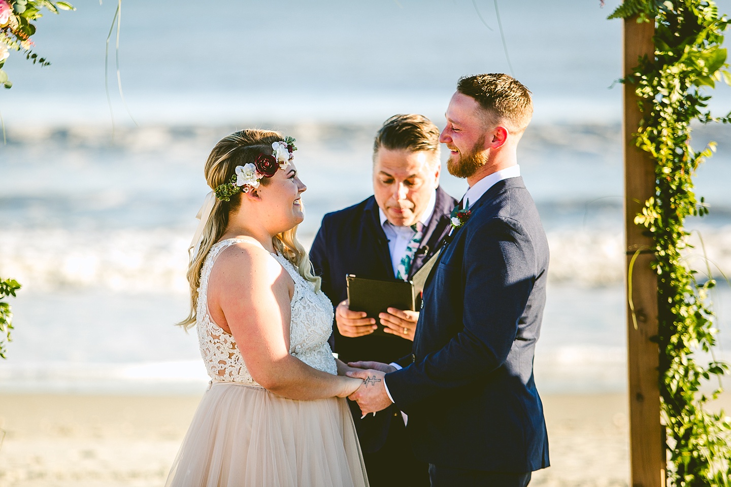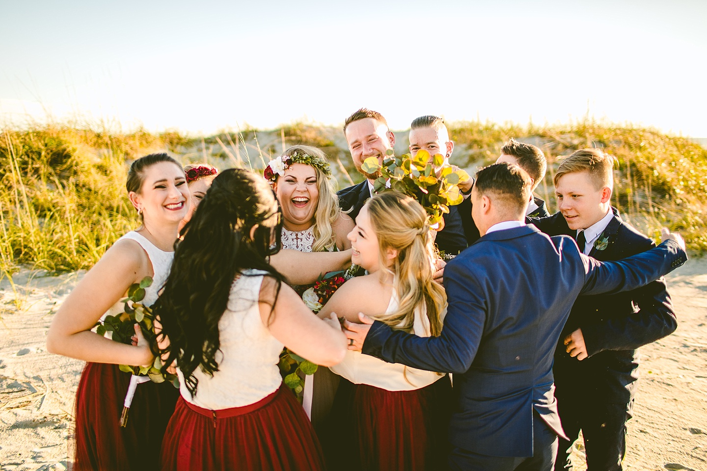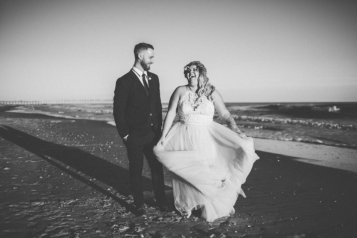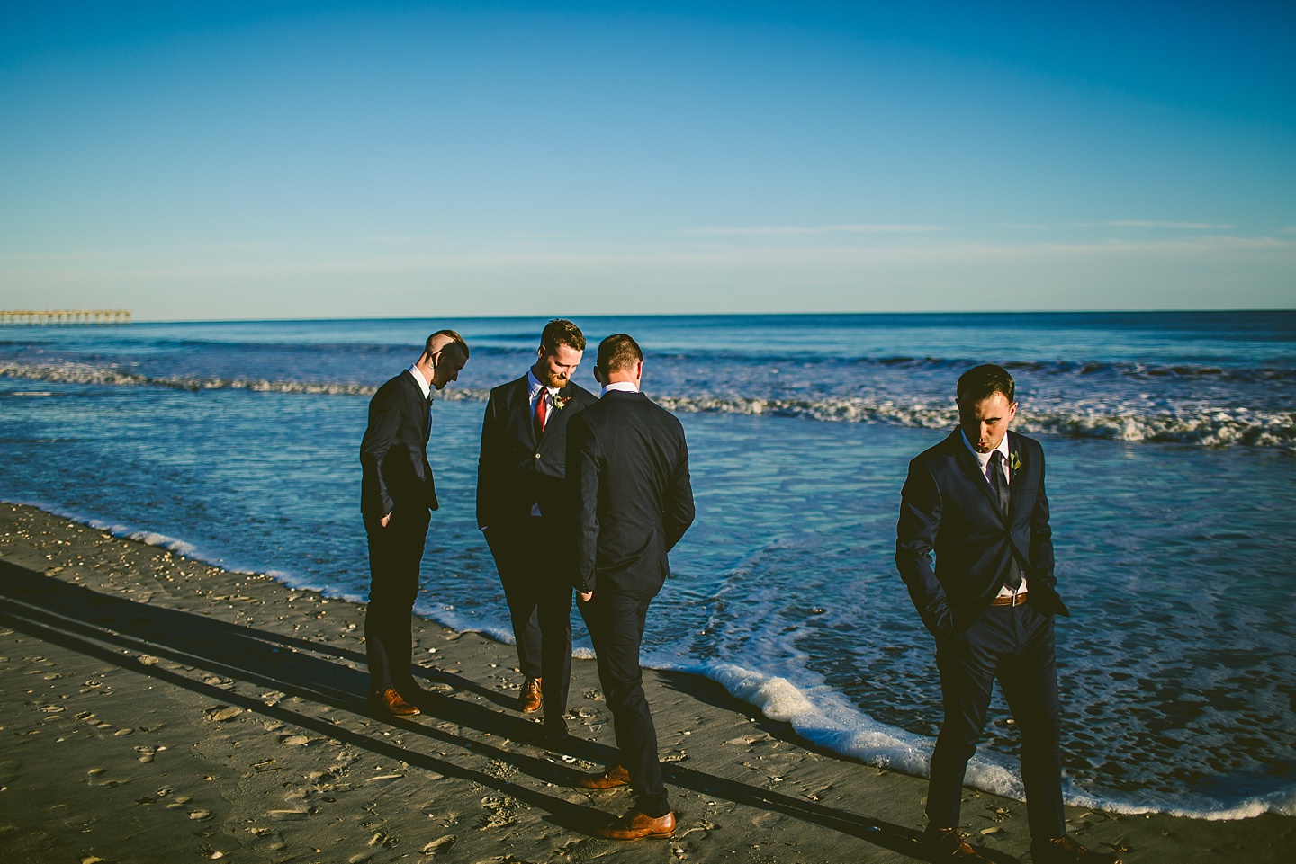 Jessica and Andrew hail all the way up from Minnesota! And, like all Minnesota people I’ve encountered in my lifetime, they are exceedingly nice and can also tolerate much colder temperatures than me. These guys are avid travelers, and they wanted to share the joy of traveling with their family and friends, so they decided to hold their wedding in Ocean Isle, NC and have everyone join them. They rented an enormous and gorgeously updated beach house, and had a ceremony out by the ocean. It was a sunny and clear day while Jess and Andrew strolled along the beach in the sunset with me and videographer Matt from Dogwood Media shouting “Dope dope dope” at them… which is, I’m pretty sure, exactly what they pictured their wedding day being like. We had a ridiculous amount of fun with these guys. And look at how pretty they are. Just look at them. SO PRETTY. Jessica’s dress was gorgeous and I had a fun time making her spin around repeatedly and then trying to shake the sand out of the tulle. They then danced the night away with a super fun group of people who love to pretend they’re all jumping rope at the reception. We are so glad that they asked us to join them out in Ocean Isle – we had never been to that part of the NC coast before (we’re originally from Pittsburgh so still have much of this state to explore) and we loved it! It was clear of people and the light is beautiful out there in November, and the beach is pristine in every direction. We’re so happy and grateful these guys chose North Carolina and chose US to be with them for their wedding day. Congratulations to you both! You beautiful people you.